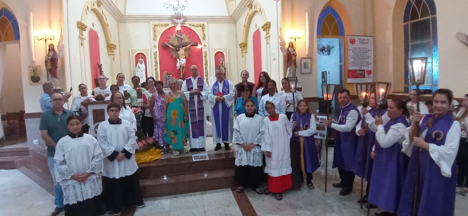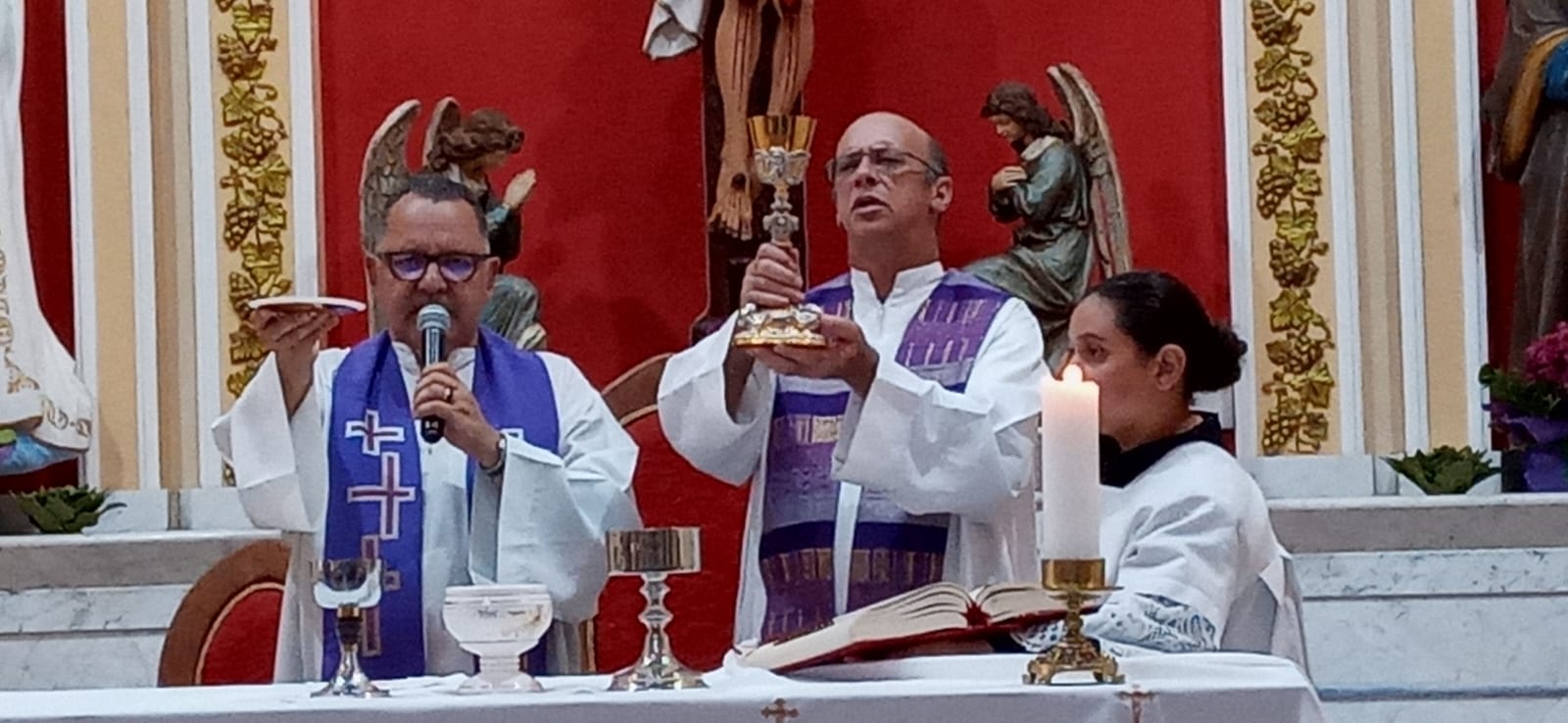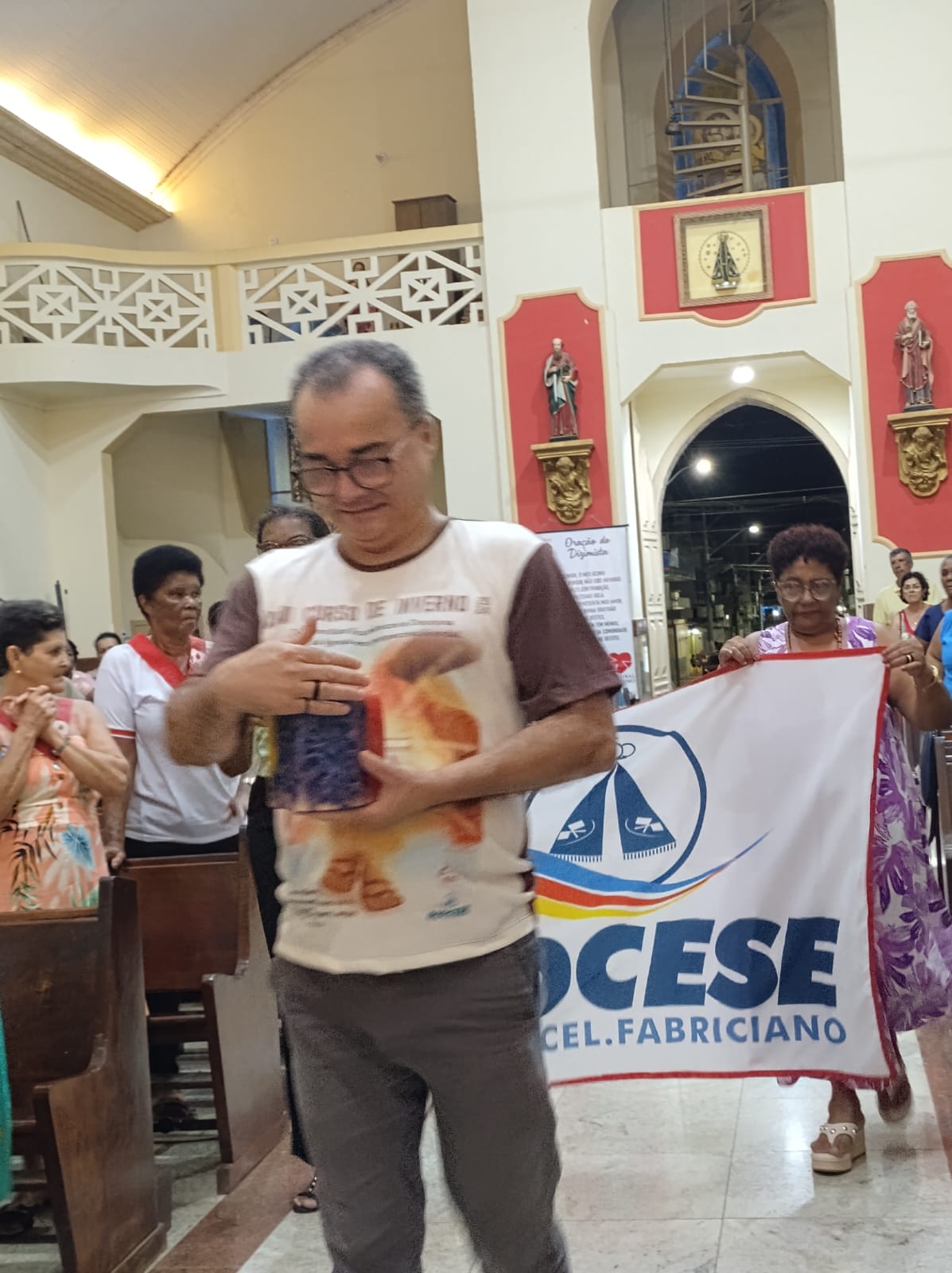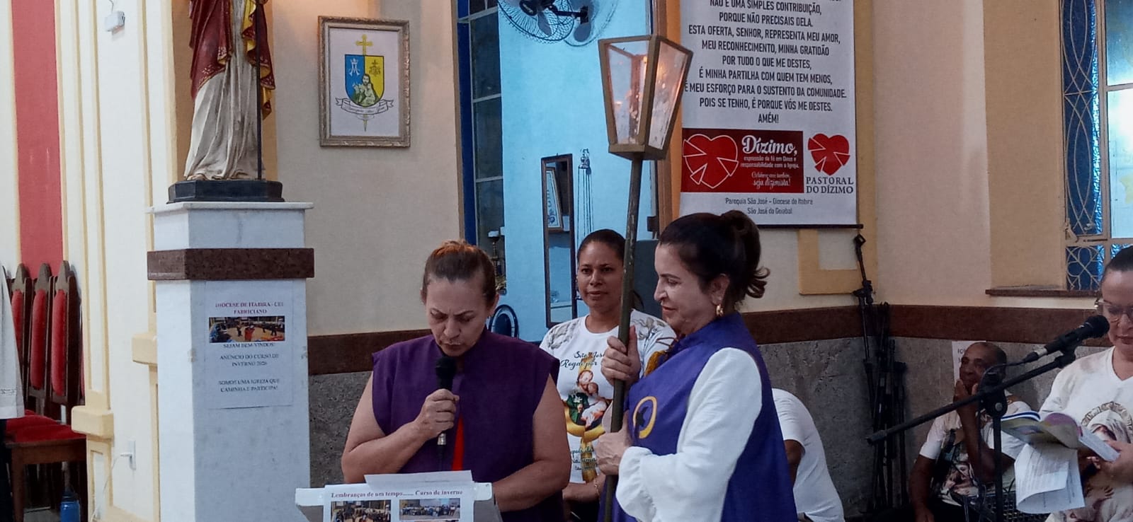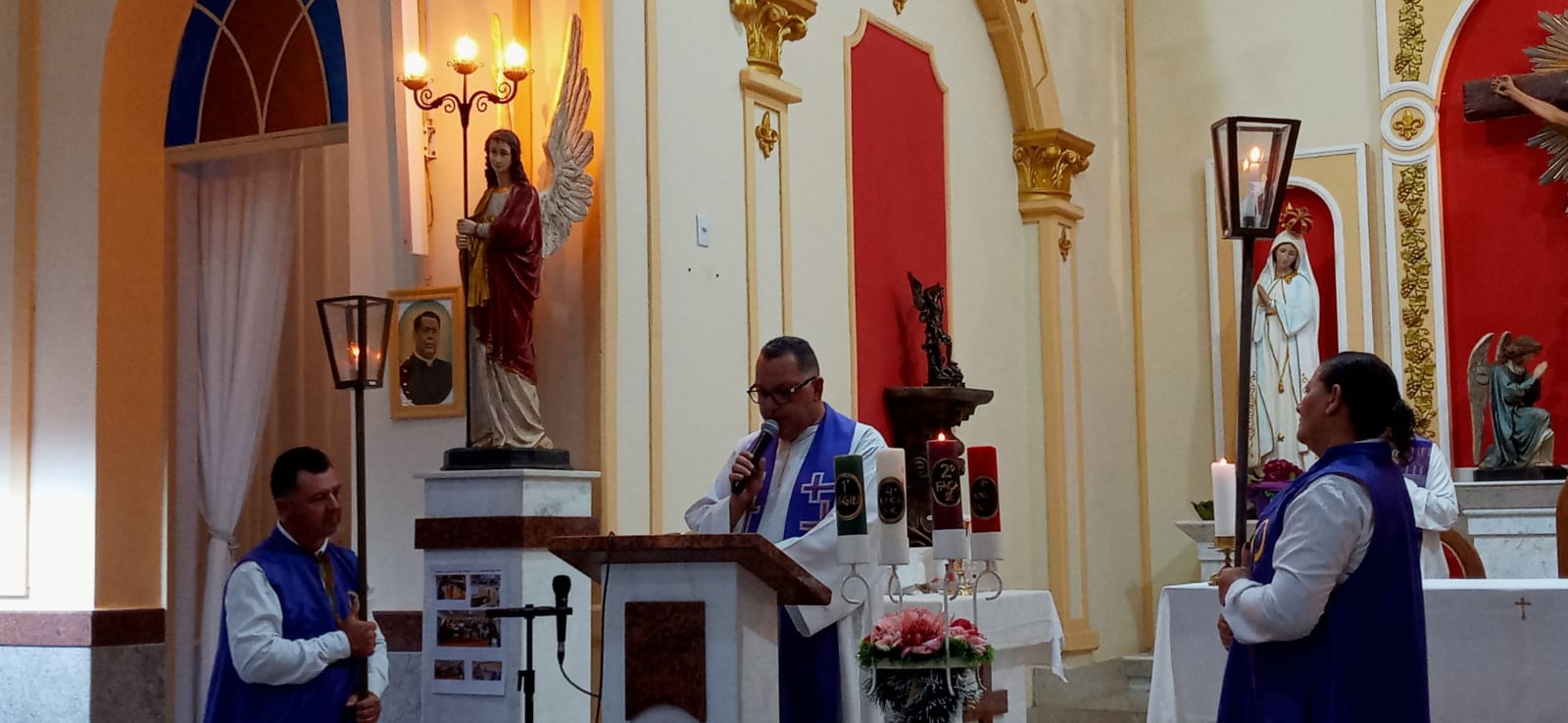 Com a participação de representantes dos três regionais que compõem a coordenação diocesana do curso, a Santa Missa foi presidida pelo padre Hideraldo, Assessor da Equipe de elaboração do Material da Reflexão, dos Grupos de Reflexão e das CEBs, e concelebrada pelo pároco local, padre Arlindo. Após a celebração, foi entregue aos representantes da paróquia uma vela — símbolo do Curso de Inverno — e realizada uma motivação inicial para a comunidade.