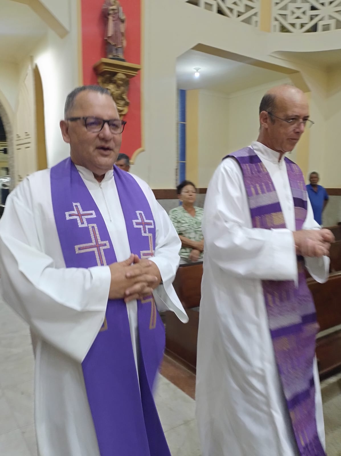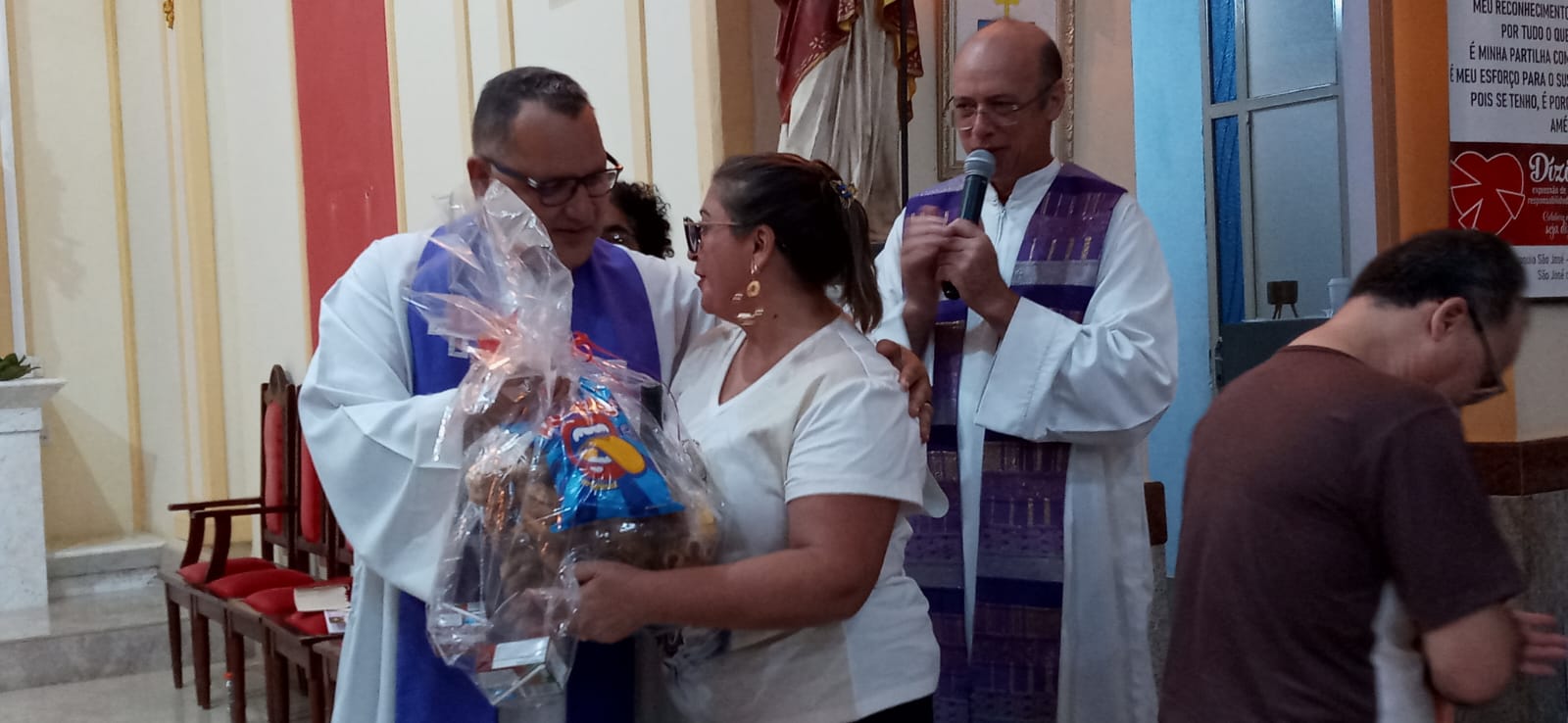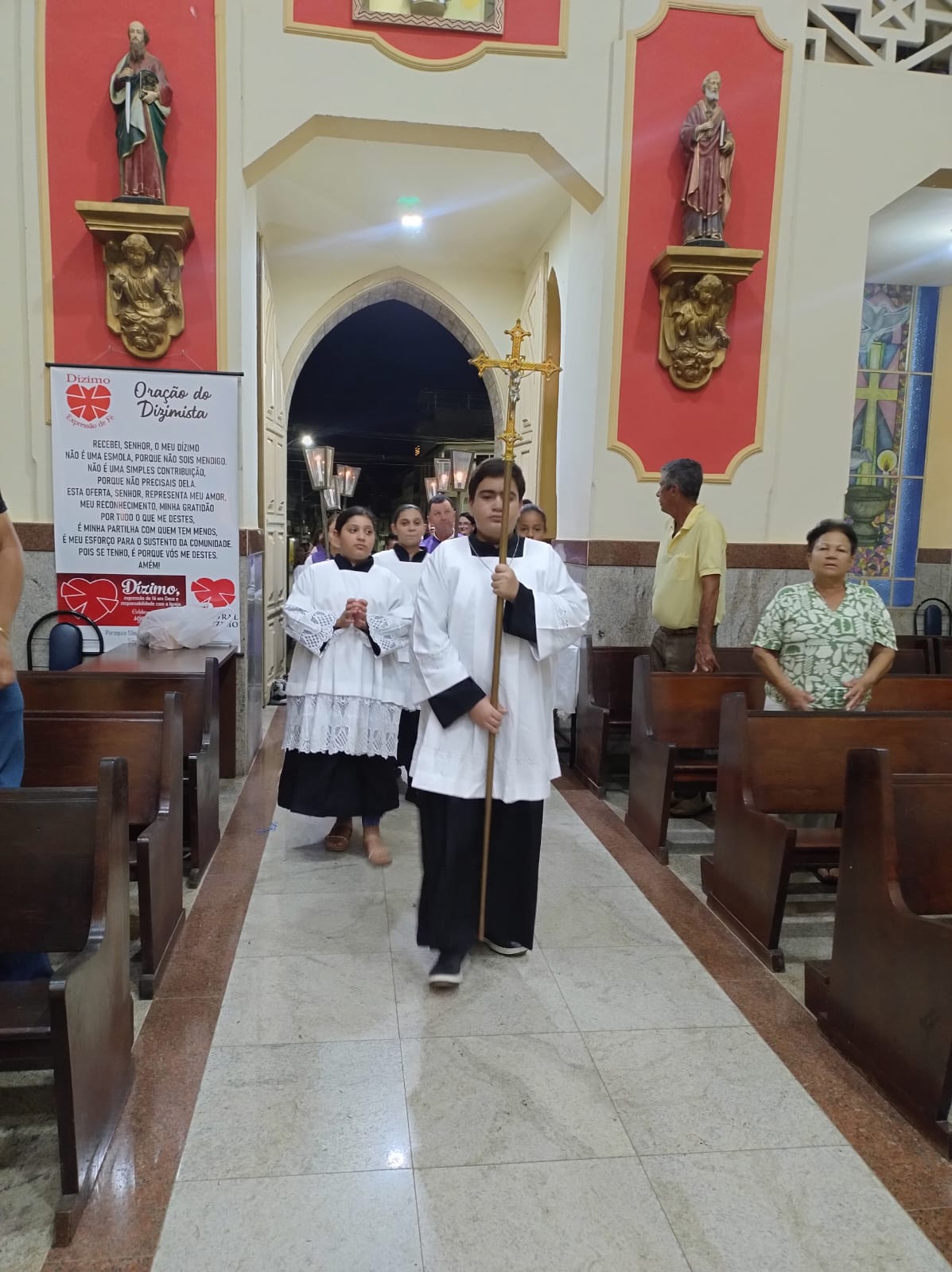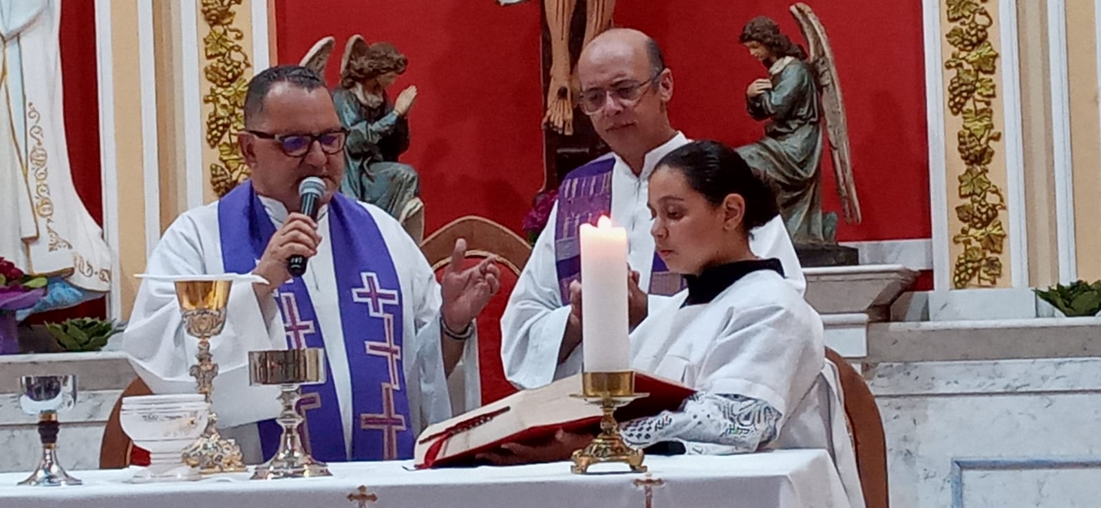 Com a participação de representantes dos três regionais que compõem a coordenação diocesana do curso, a Santa Missa foi presidida pelo padre Hideraldo, Assessor da Equipe de elaboração do Material da Reflexão, dos Grupos de Reflexão e das CEBs, e concelebrada pelo pároco local, padre Arlindo. Após a celebração, foi entregue aos representantes da paróquia uma vela — símbolo do Curso de Inverno — e realizada uma motivação inicial para a comunidade.