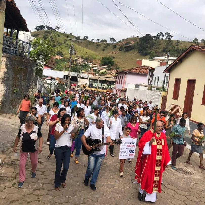 Durante as cinco semanas da Quaresma, preparamos nossos corações pela oração, pela penitência e pela caridade para a celebração da Páscoa de nosso Senhor. Celebrando com fé e piedade, nossa comunidade de se reuniu, às 8h30min, em frente à casa de D. Rosária para a bênção de Ramos e, após a procissão celebramos, na Matriz, a Liturgia do Domingo de Ramos e da Paixão do Senhor, abrindo por excelência a Semana Santa. Relembramos e celebramos a entrada triunfal de Jesus Cristo em Jerusalém, poucos dias antes de sofrer a paixão, morte e ressurreição.