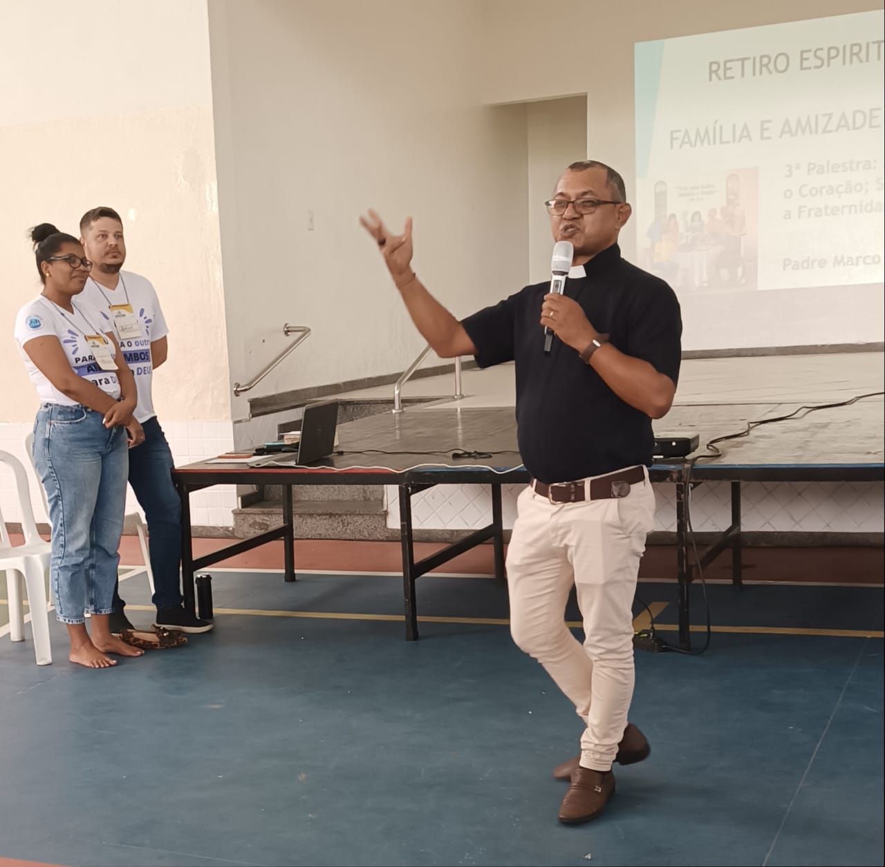 O retiro teve início pela manhã, com credenciamento, café da manhã e música de acolhida, na quadra da Escola Educação Criativa no bairro Cidade Nobre em Ipatinga (local propicio pelo isolamento acústico) com várias palestras de temas diferentes, como: