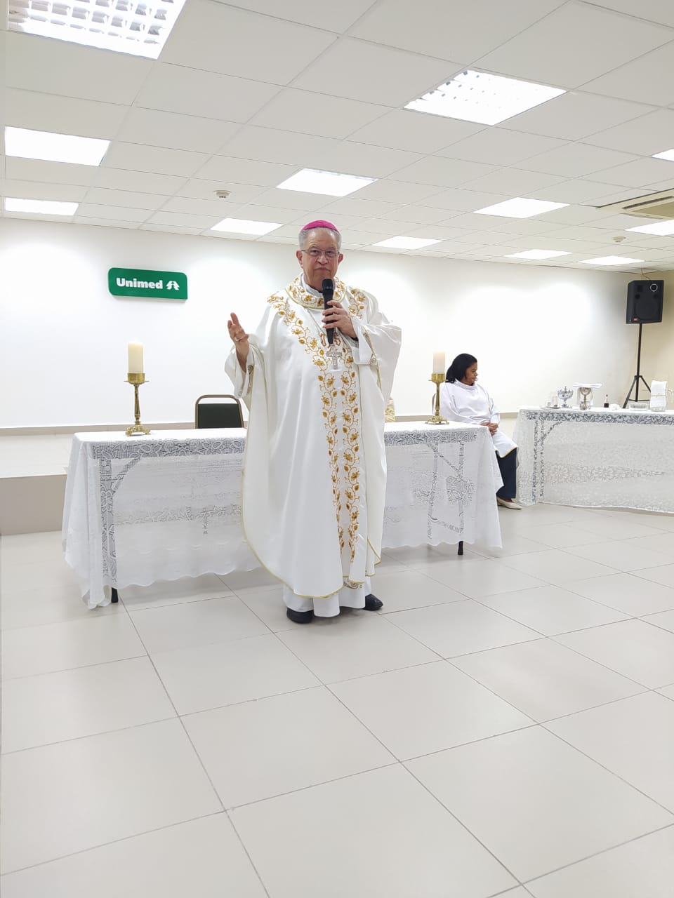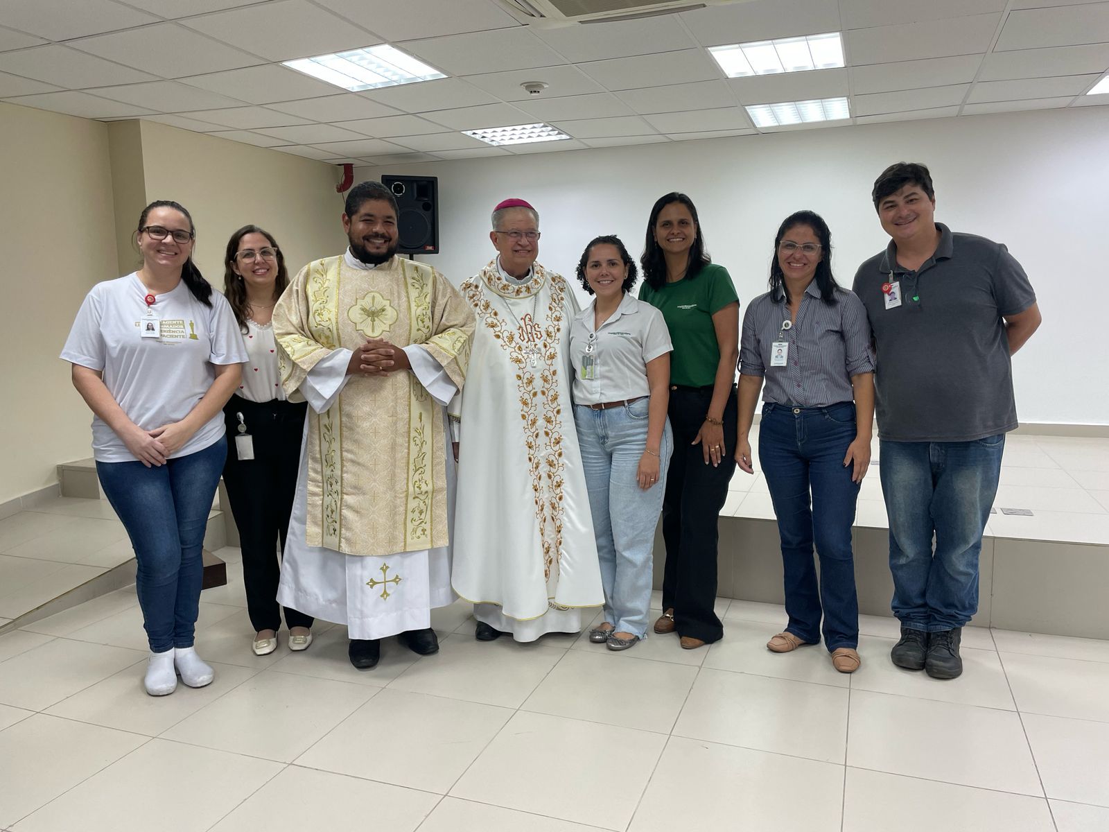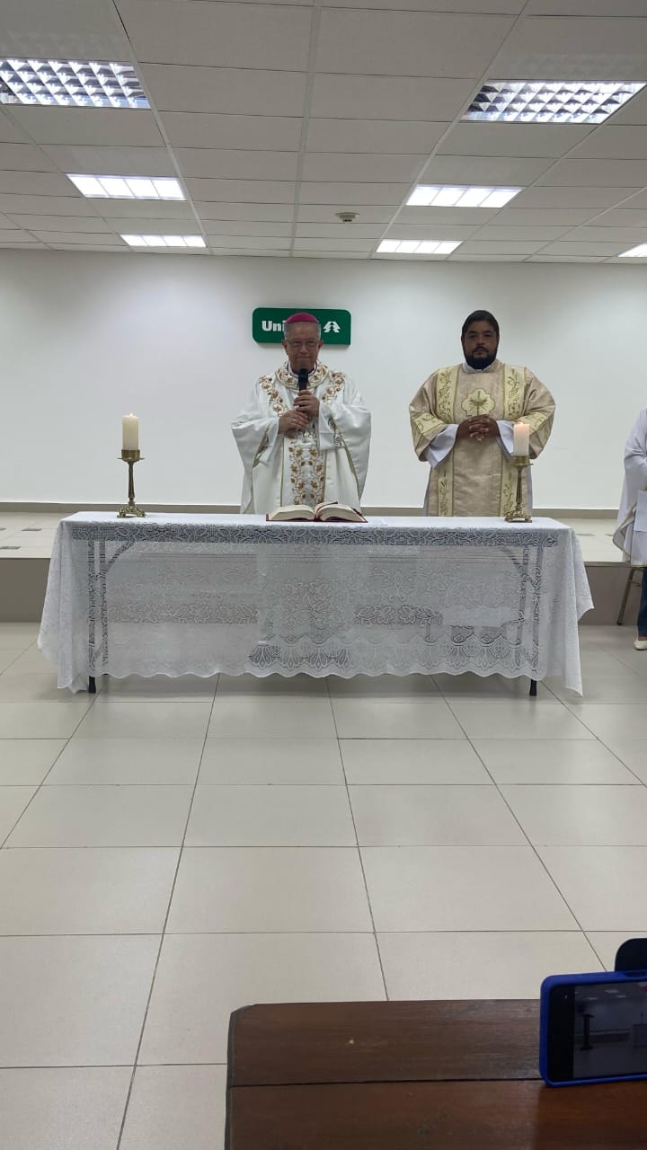 A celebração contou com a presença da diretoria da instituição, funcionários e do diácono Wanderson, que auxiliou no altar e atualmente assessora a Pastoral Hospitalar no hospital Unimed.