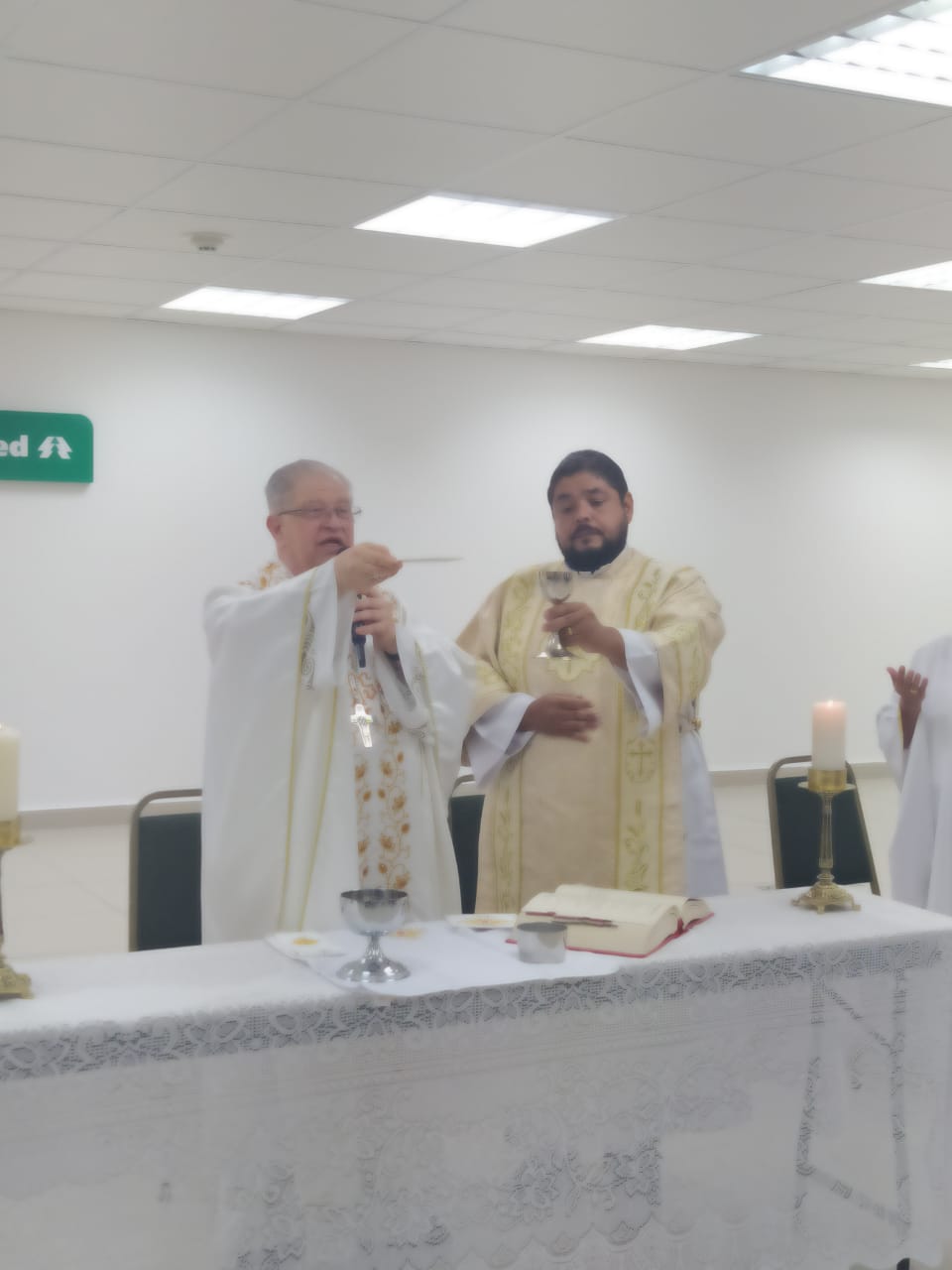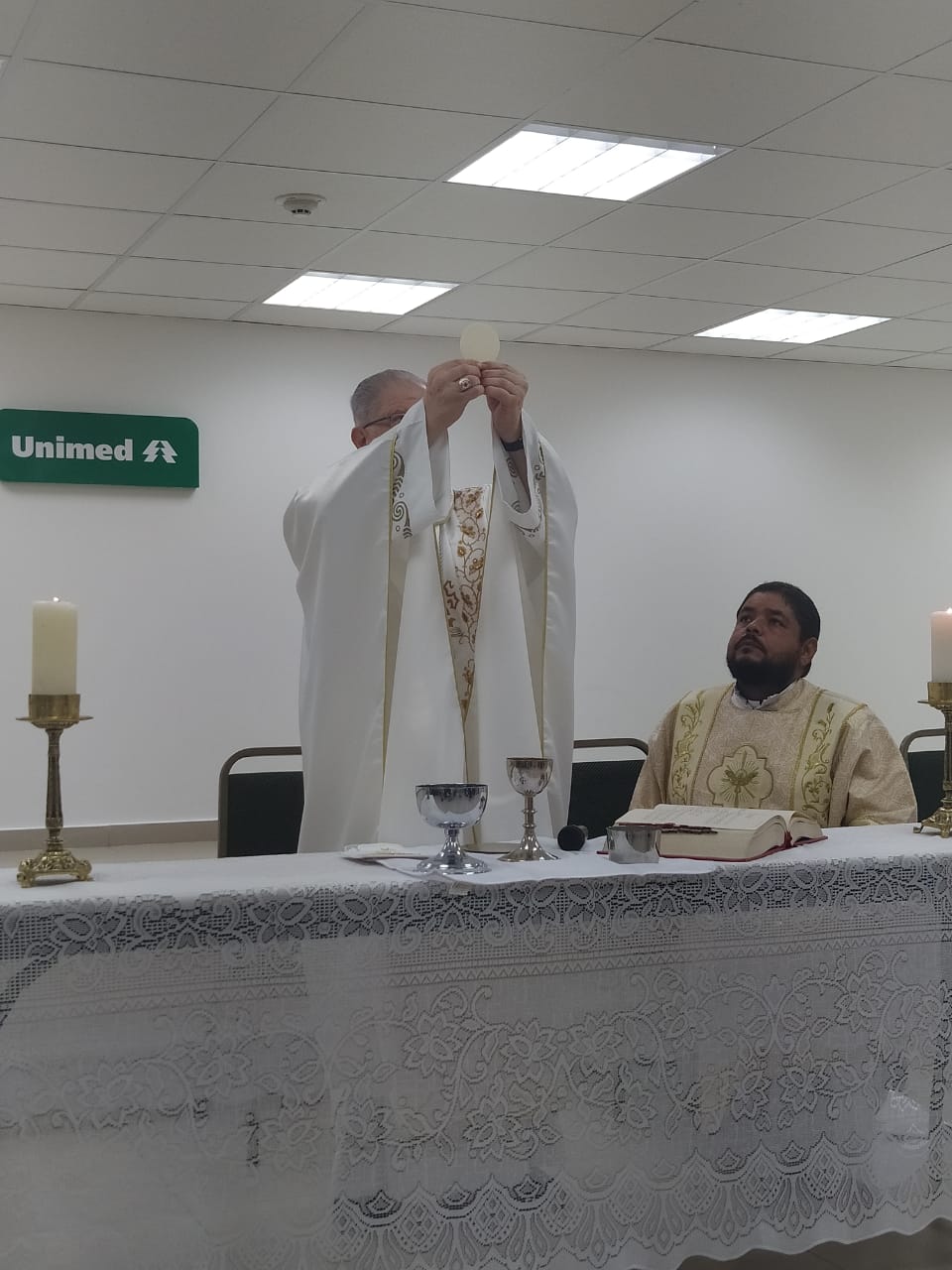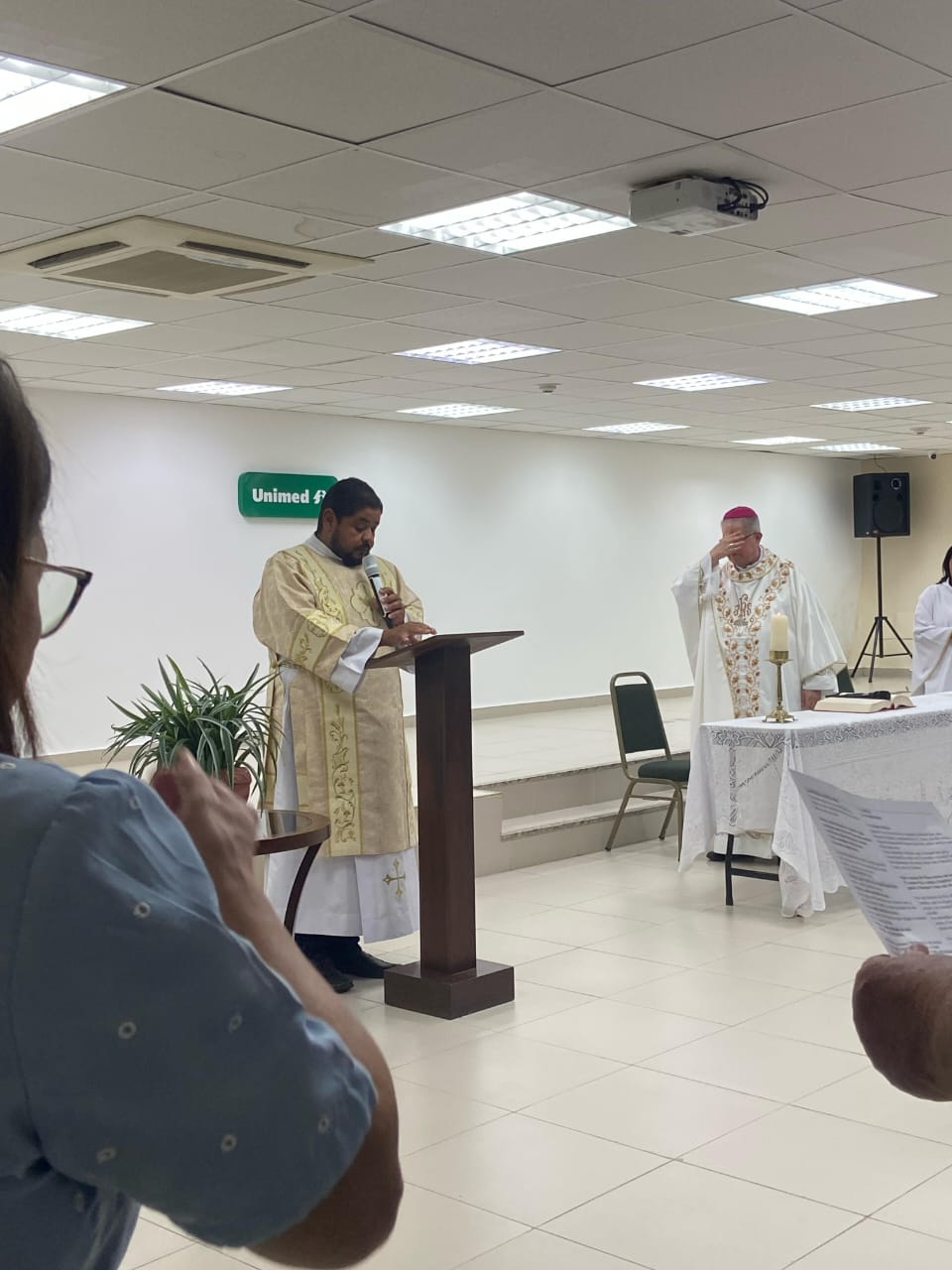 A celebração contou com a presença da diretoria da instituição, funcionários e do diácono Wanderson, que auxiliou no altar e atualmente assessora a Pastoral Hospitalar no hospital Unimed.