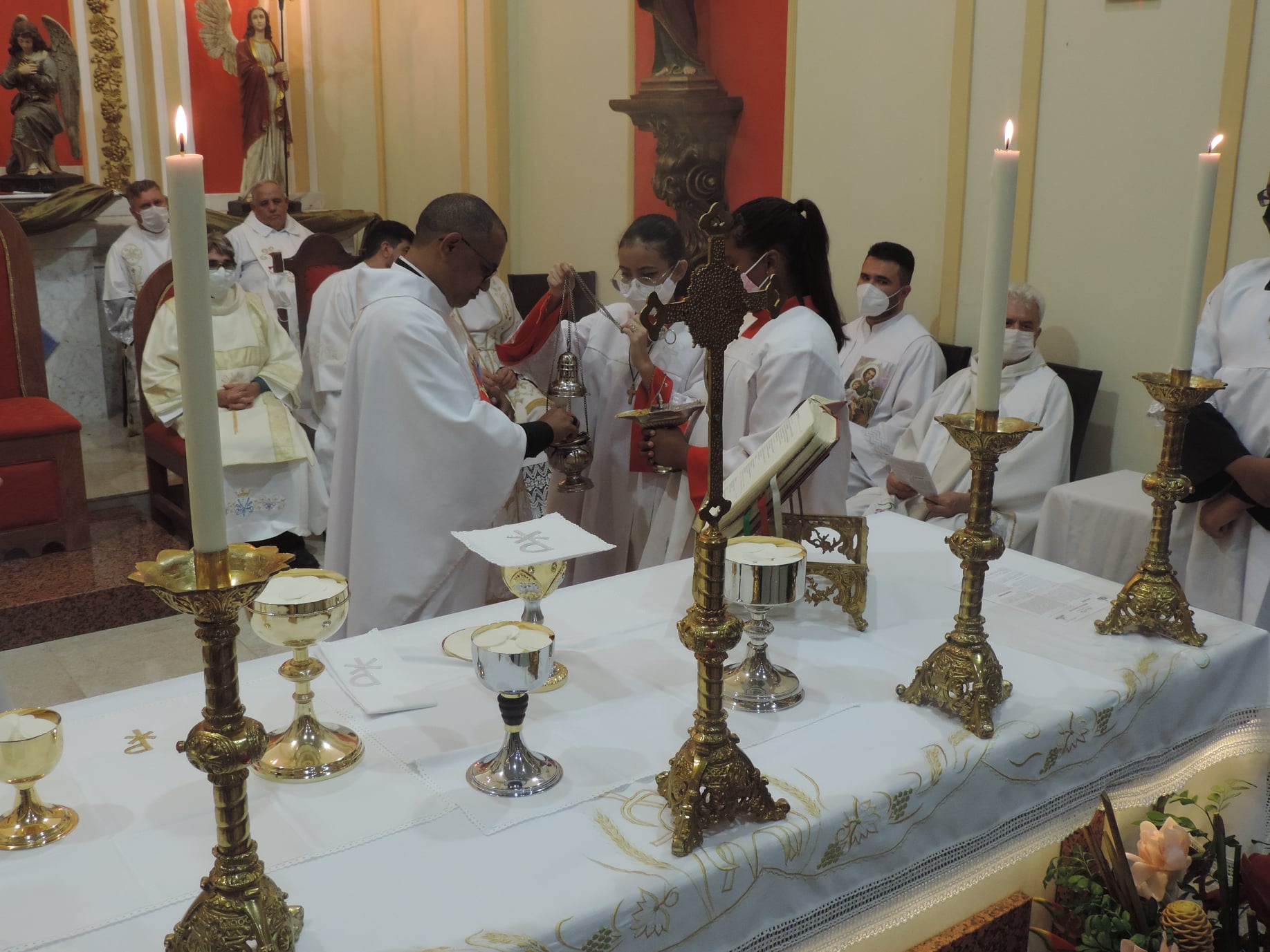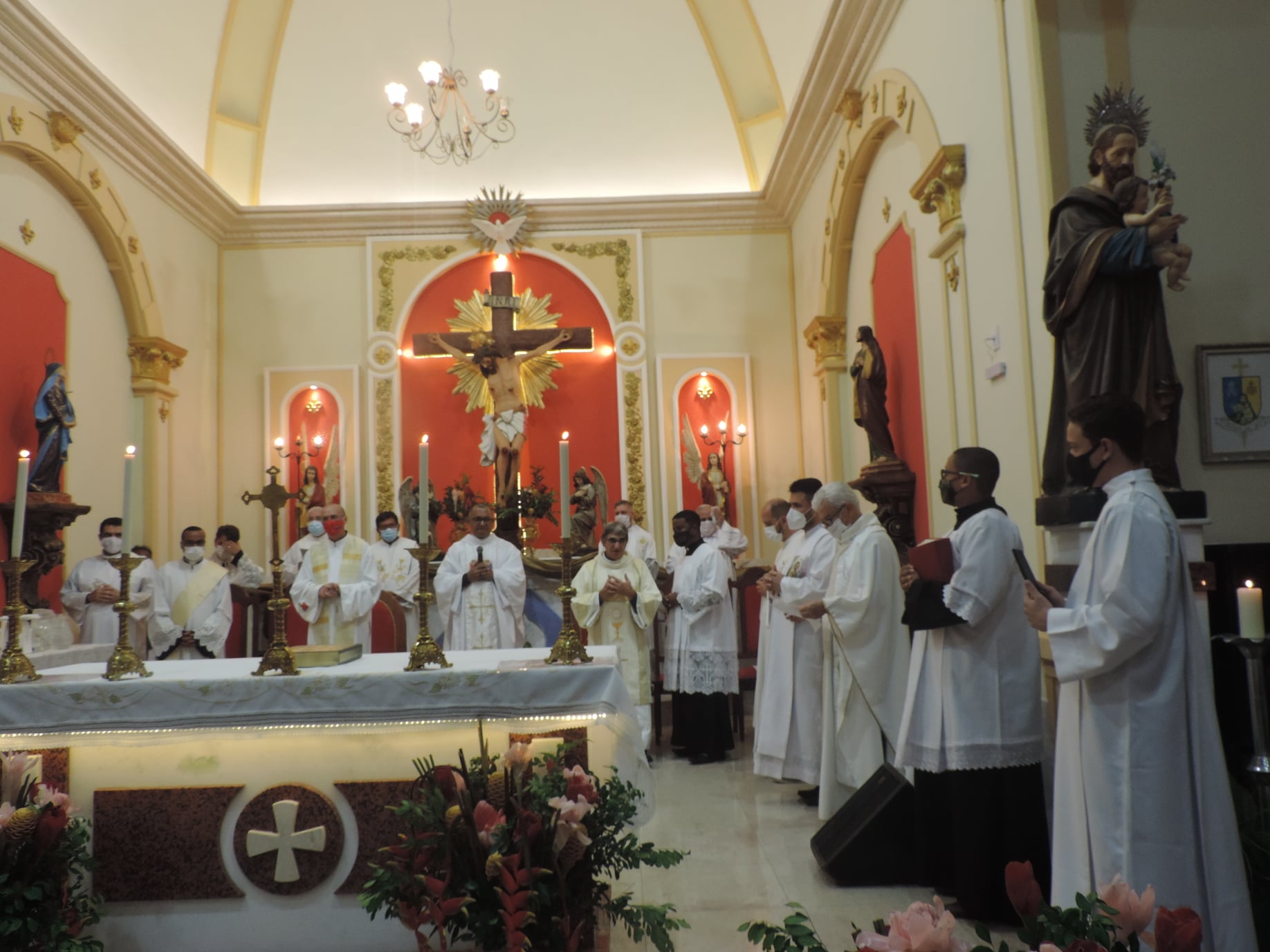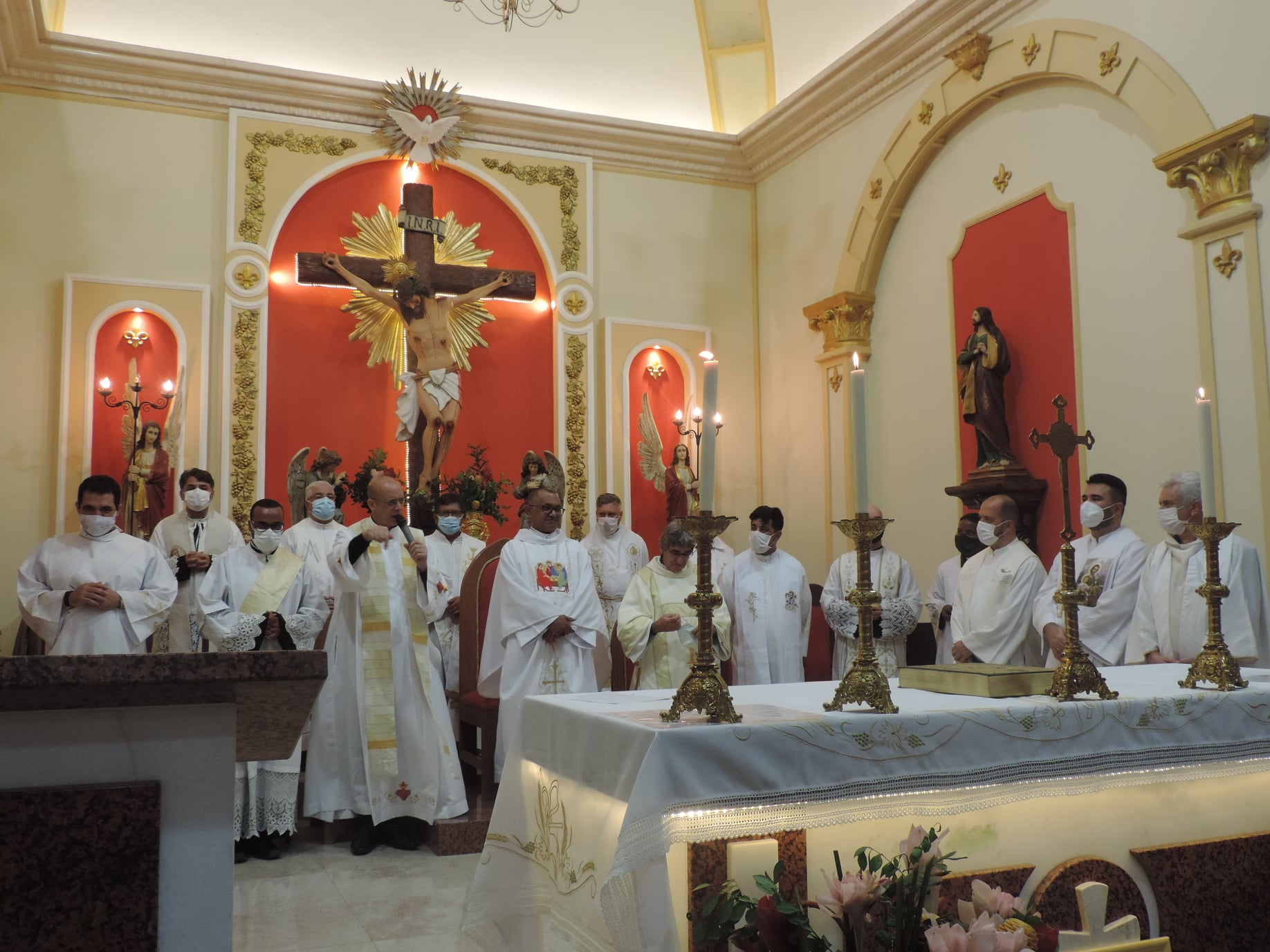 A celebração foi presidida pelo Pe. Marco José de Almeida, Coordenador Regional de Pastoral da Região Pastoral 2 e concelebrada pelos padres Gustavo da Silva Alves, Anderson Ferreira Teixeira, Francisco Guerra Neto, Fernando dos Santos Andrade, Paulo Marcony Duarte Simões, Elson Vital dos Reis, Ricardo José Perdigão Caricati, Roberto Gualberto da Costa, Flávio David Motta, CR, Júlio Martin Abad Seminário e Juliano Ribeiro da Costa (Diocese de Sete Lagoas) e contou com a participação do Diácono Transitório Francis Regis de Almeida e dos Diáconos Permanentes Geraldo Luciano Lima e Geraldo Evangelista de Araújo.