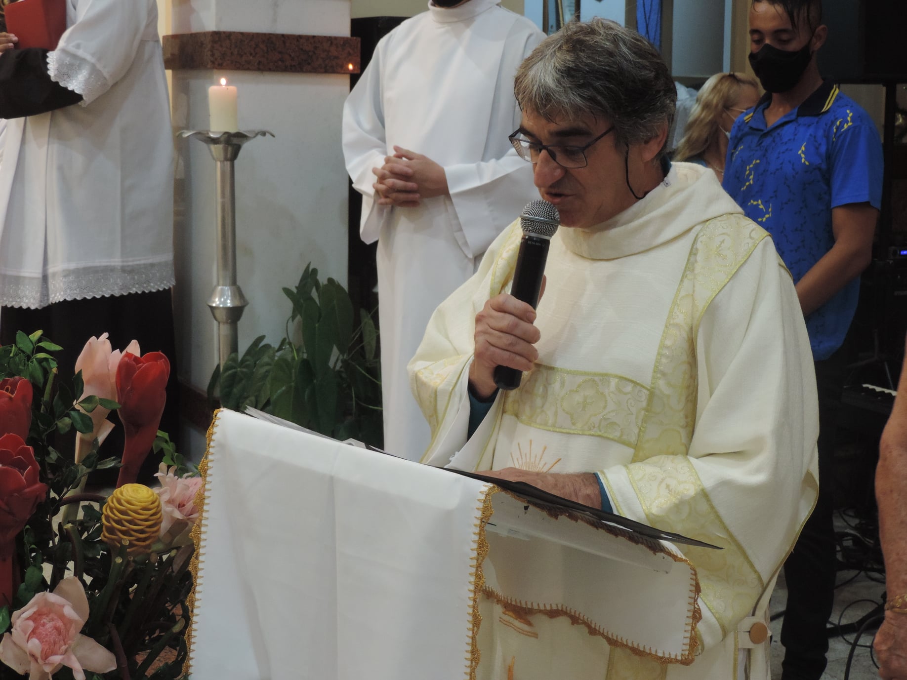 Em sua reflexão, Pe. Marco José agradeceu ao até então pároco, Pe. Geraldo da Silva Reis, pelo trabalho exercido à frente da paróquia durante o último ano. Pediu oração para o novo trabalho pastoral do Pe. Arlindo e exortou para que os paroquianos de São José do Goiabal se disponham a acolher e caminharem juntos ao novo administrador paroquial, com vontade de fazer o milagre da partilha, comunhão e missão.