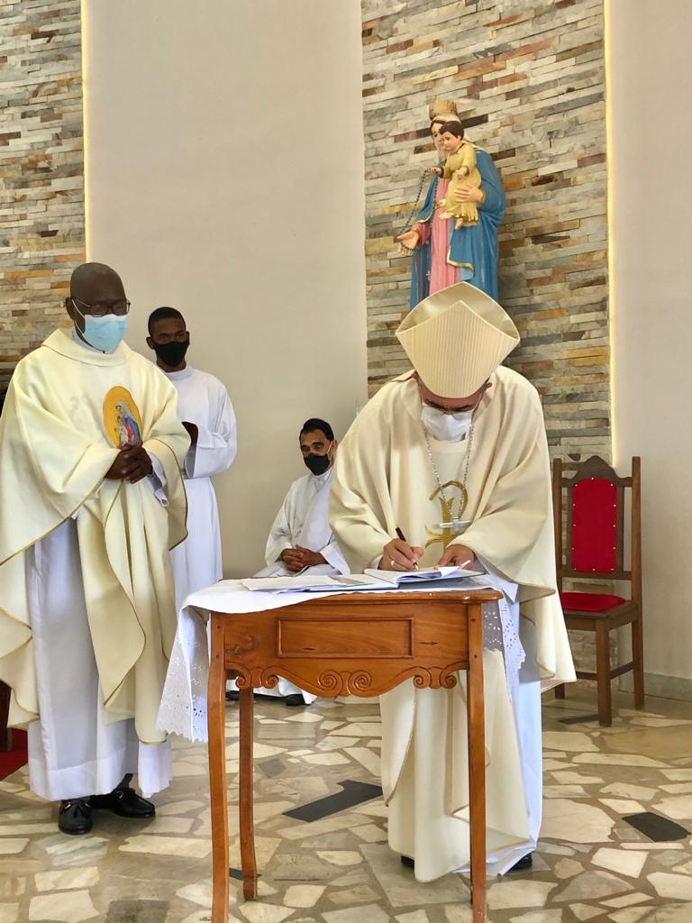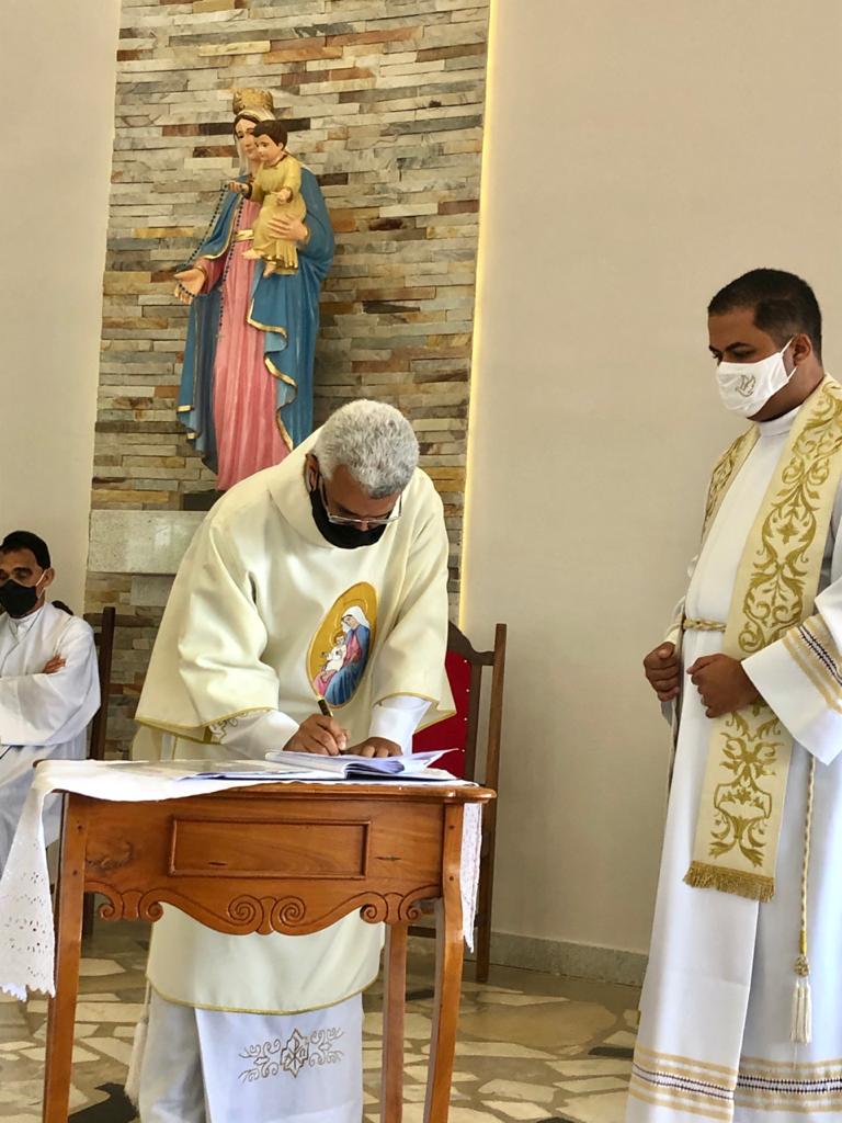 Pe. Adriano Mendes de Pinho, vigário na Paróquia Nossa Senhora do Rosário (Catedral Diocesana), notário da Cúria Diocesana proclamou a leitura da Provisão de Nomeação de pároco do Pe. Wilner Pierre que, em seguida, fez a Profissão de fé e o juramento de fidelidade, segundo a fórmula aprovada pela Santa Sé, conforme determina a disciplina da Igreja.