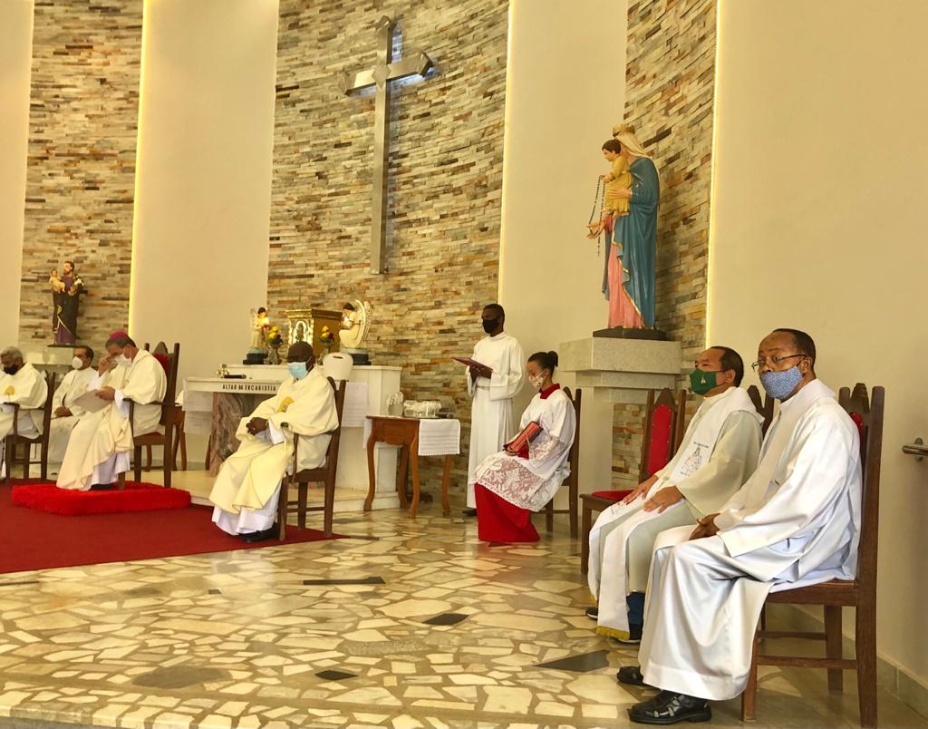 Presidida pelo bispo diocesano, Dom Marco Aurélio Gubiotti, a celebração foi concelebrada pelo Pe. Adriano Mendes de Pinho, Frei Otaviano de Souza e contou também com o Provincial da Congregação do Imaculado Coração de Maria (CICM), Pe. Márcio Flávio Martins, e pelos demais padres da congregação: Pe. Daniel Rillela Orpila, Pe. Dominique Ntenda, Pe. Jean Baptiste, Pe. Cláudio e Pe. Noel, de Nova Iguaçu (RJ). A celebração contou também com a participação dos dos Irmãos Firmino, Patrick, Arman Billi, membros da CICM, do Diácono Permanente Luciano Rodrigues e pelos seminaristas Robson Afonso e Arthur Guilherme.
