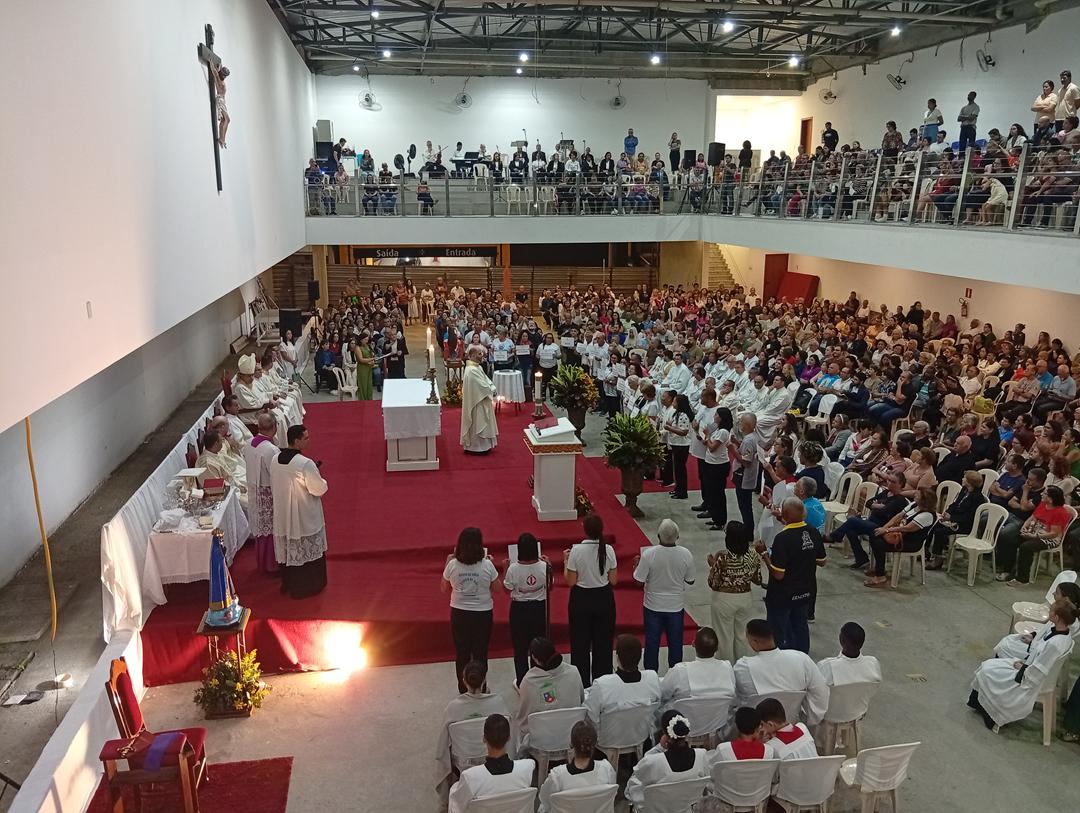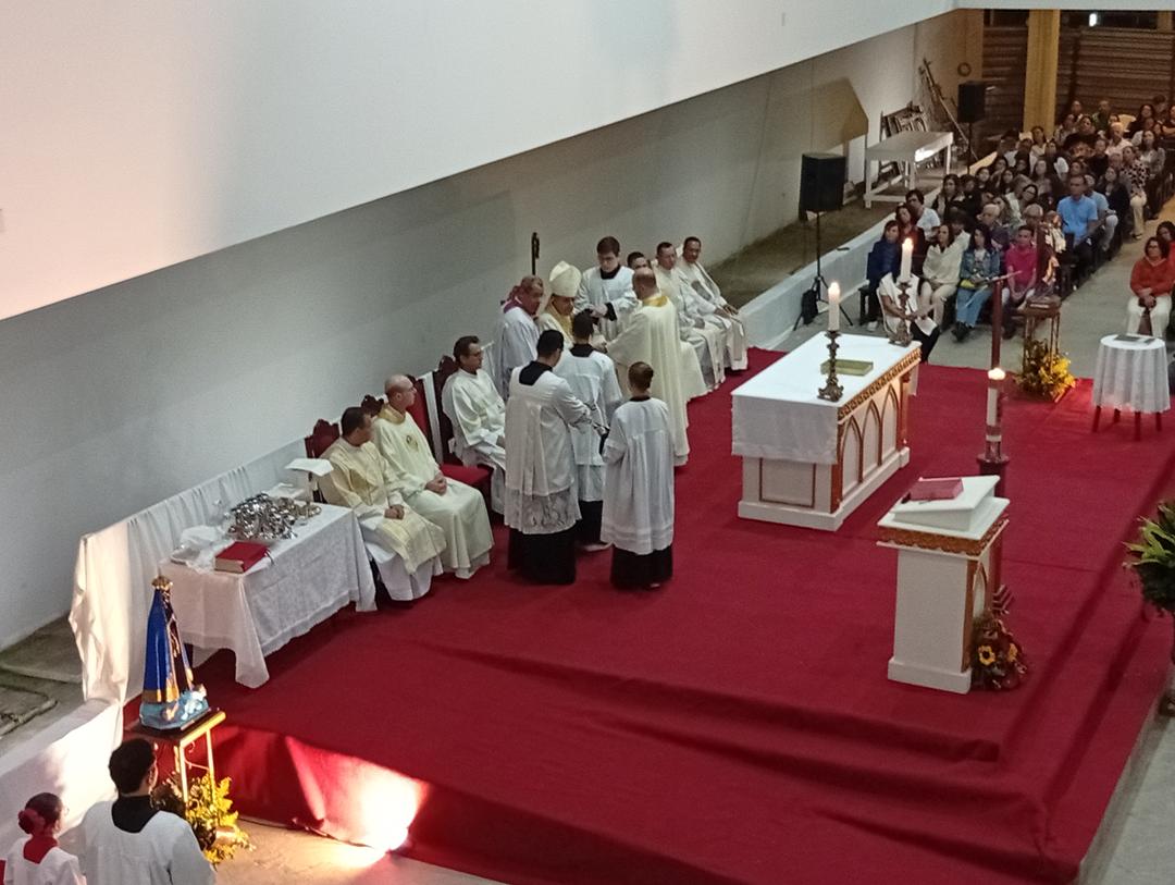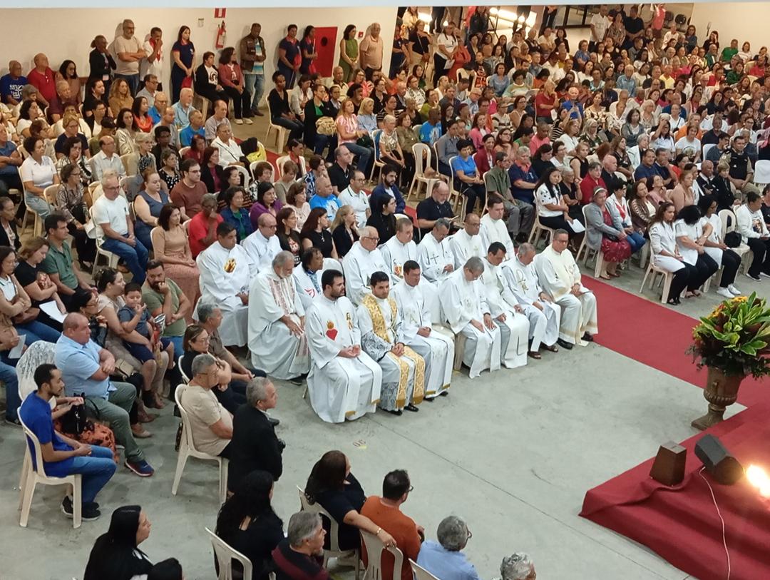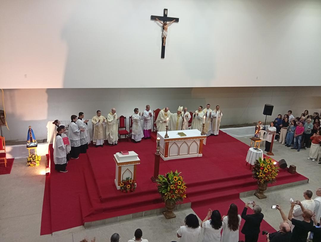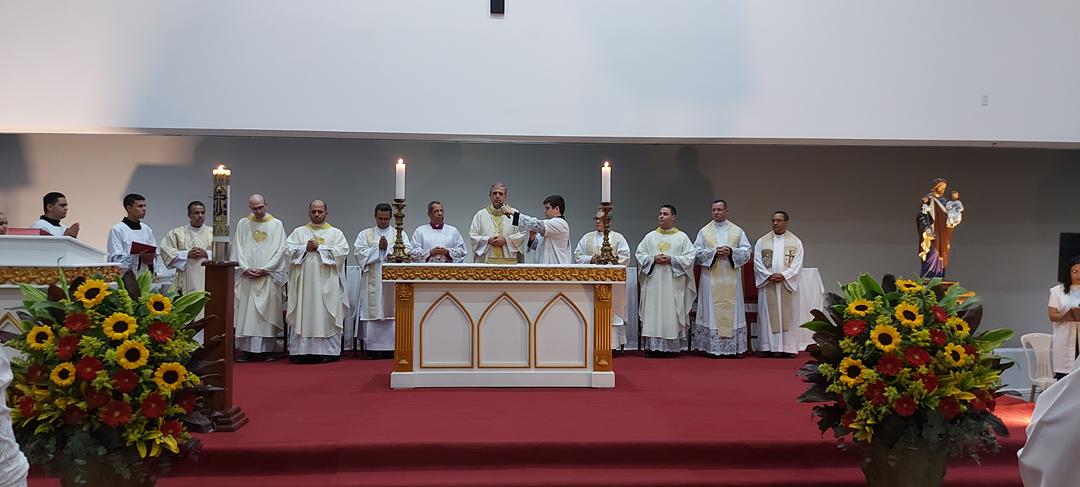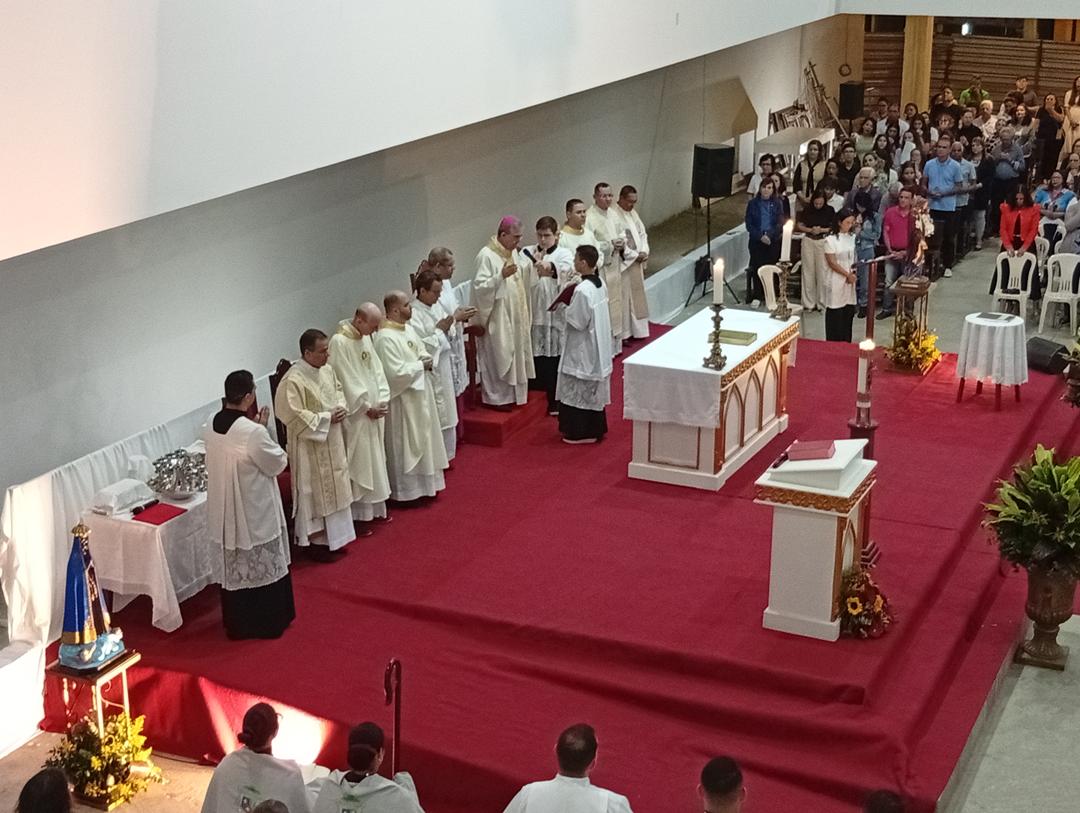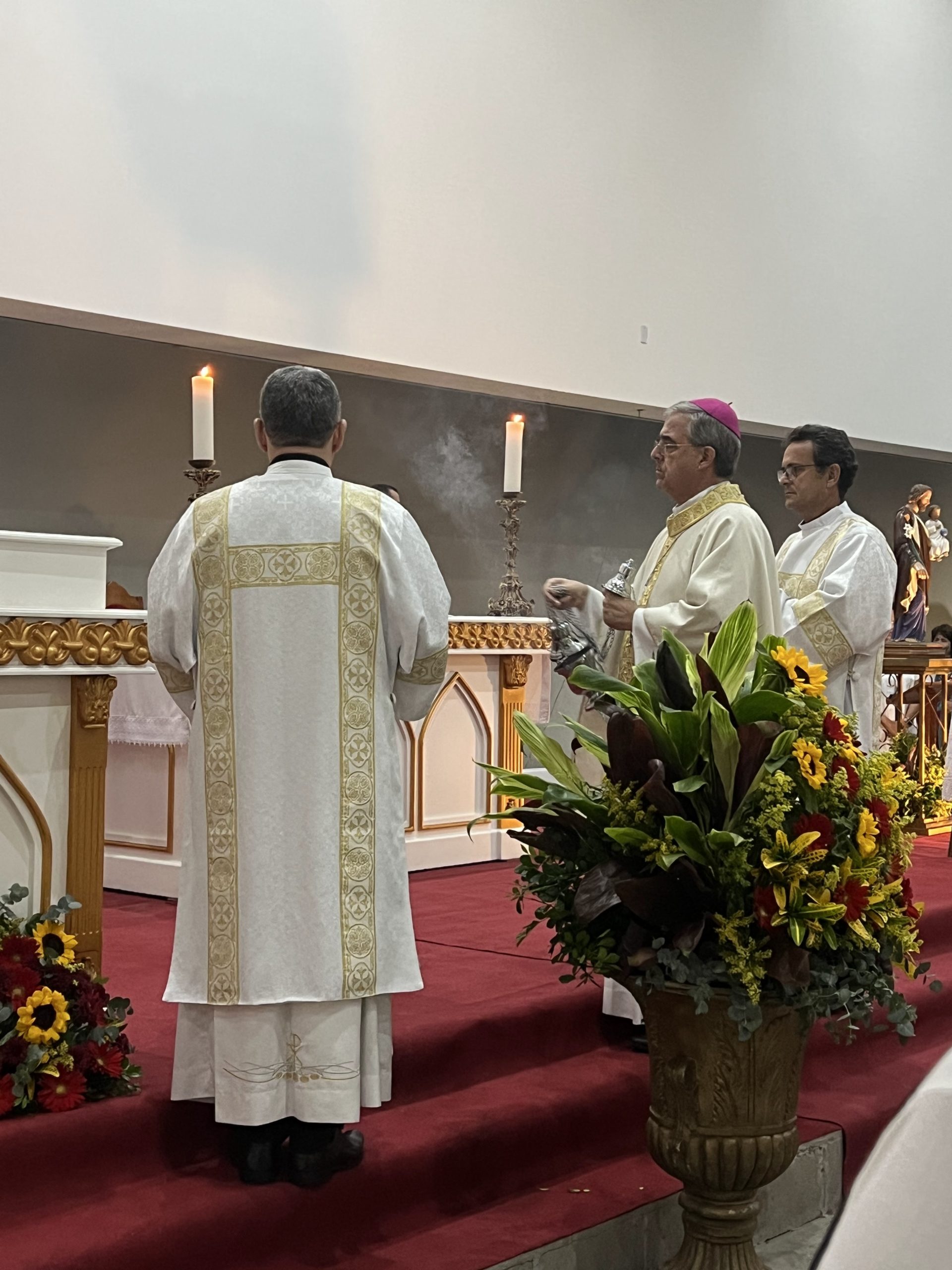 A celebração eucarística contou com a presença de autoridades civis e de uma grande porção do Povo de Deus. Foi concelebrada por diversos padres da Diocese, contando também com a presença de alguns diáconos permanentes e dos seminaristas estagiários de nossa Diocese: André, Marlon e Robson.