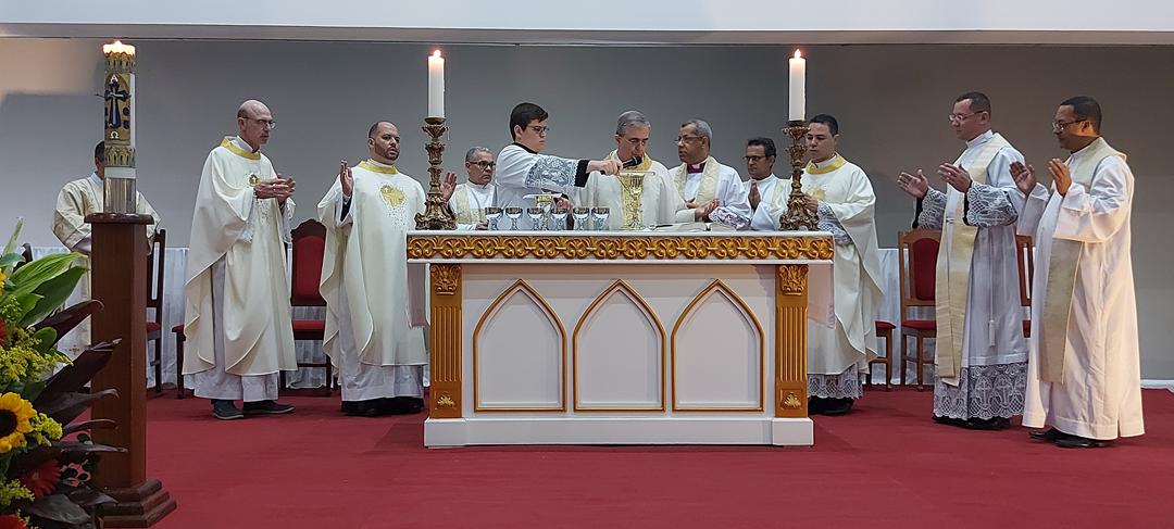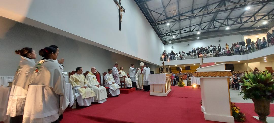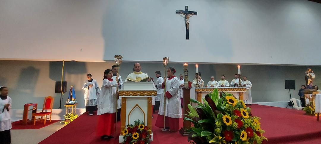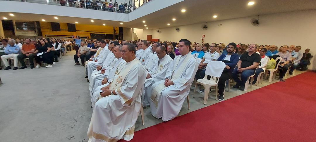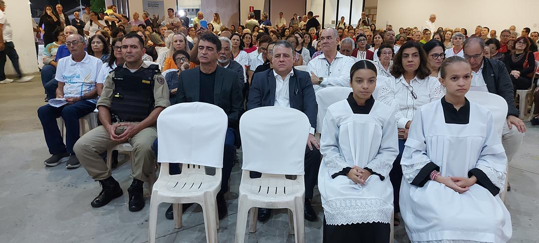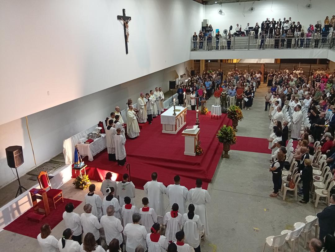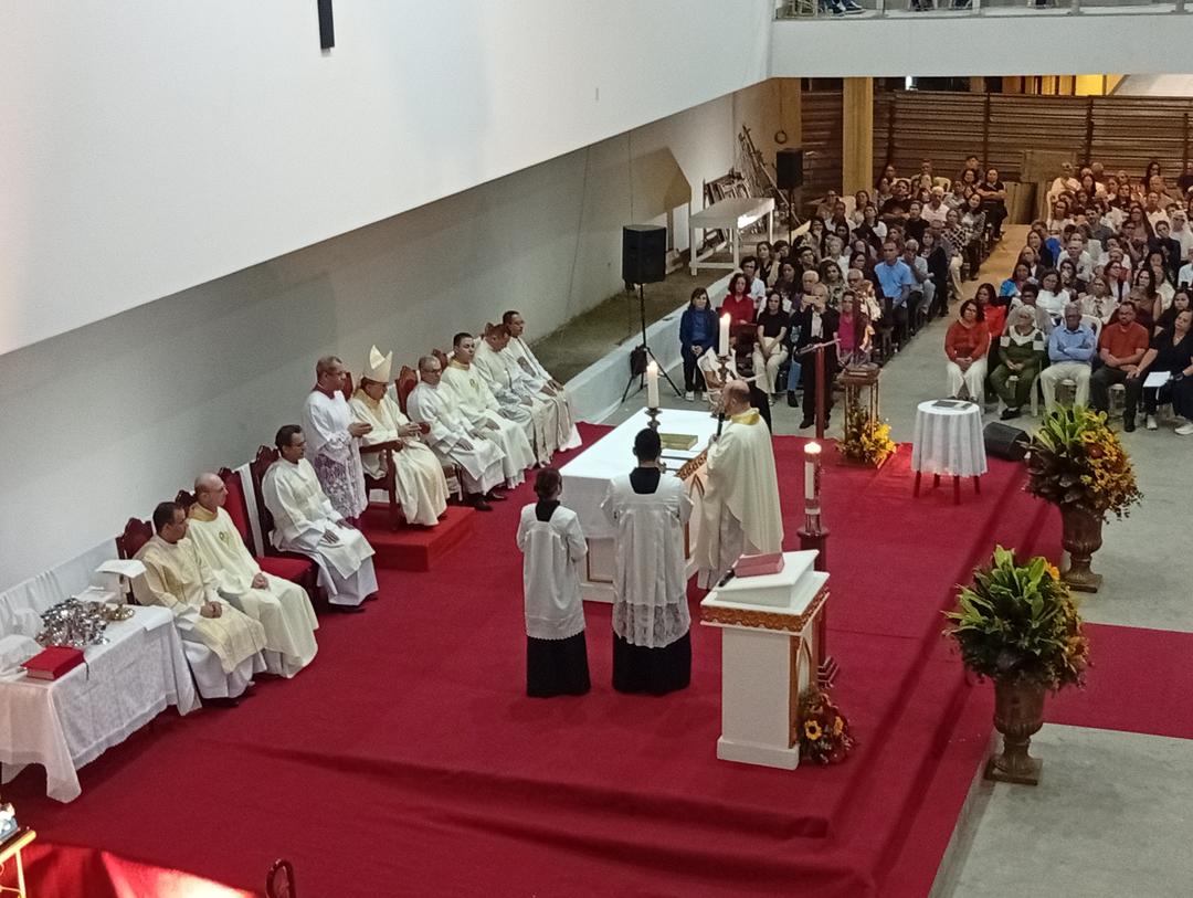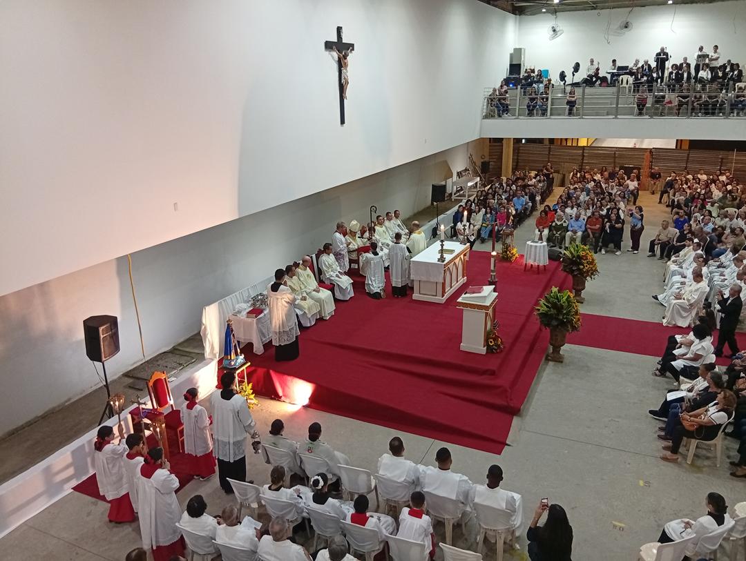 A celebração eucarística contou com a presença de autoridades civis e de uma grande porção do Povo de Deus. Foi concelebrada por diversos padres da Diocese, contando também com a presença de alguns diáconos permanentes e dos seminaristas estagiários de nossa Diocese: André, Marlon e Robson.
