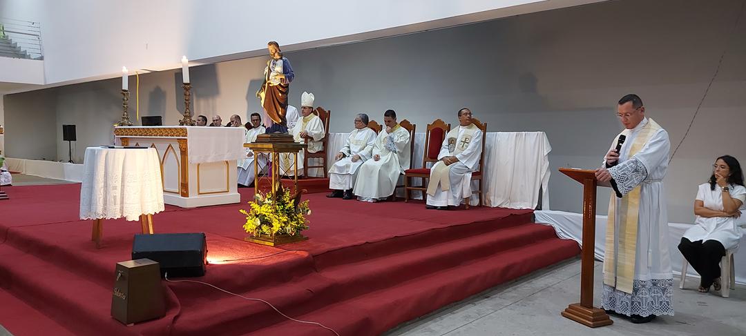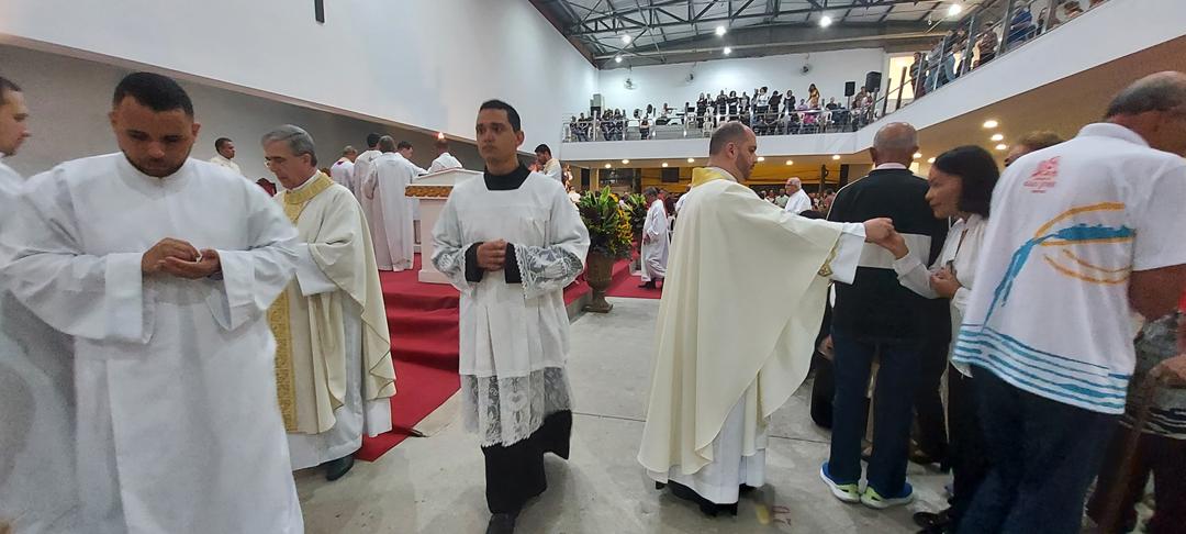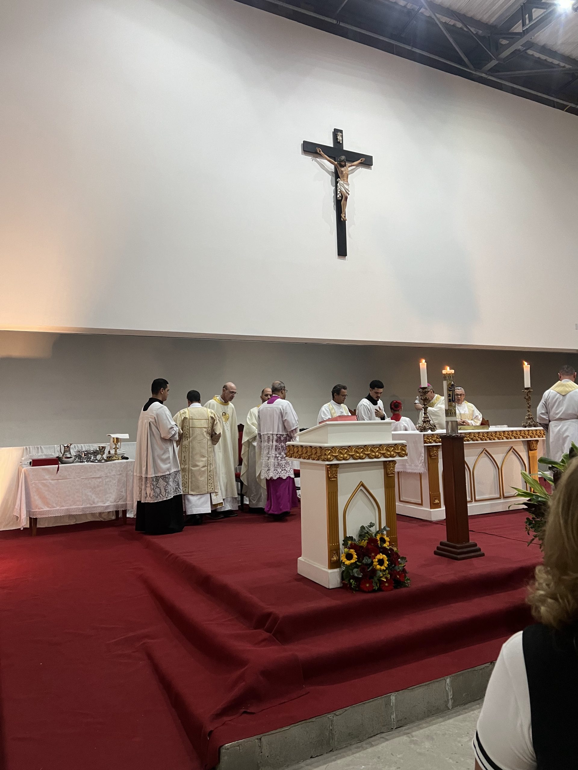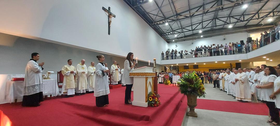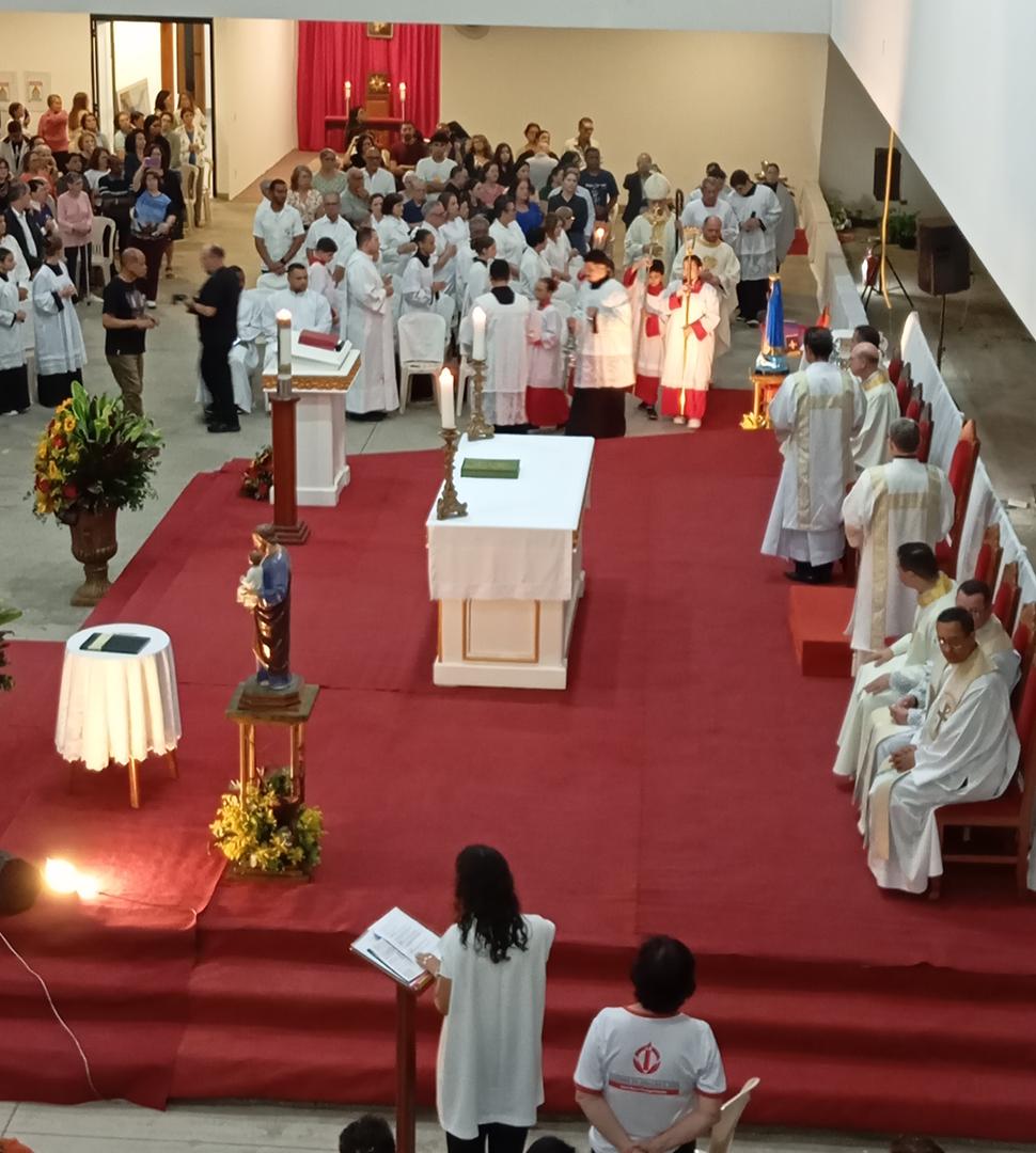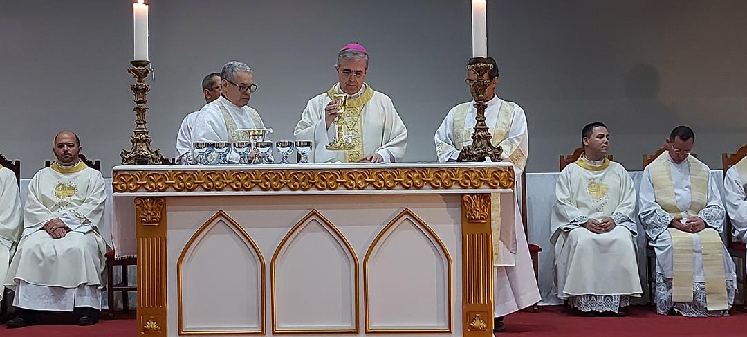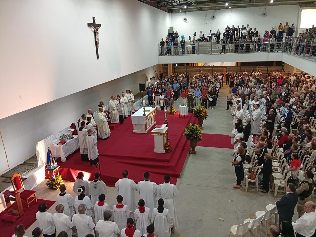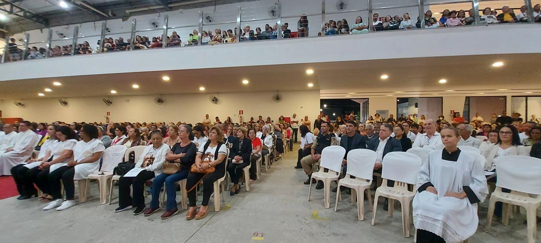 A celebração eucarística contou com a presença de autoridades civis e de uma grande porção do Povo de Deus. Foi concelebrada por diversos padres da Diocese, contando também com a presença de alguns diáconos permanentes e dos seminaristas estagiários de nossa Diocese: André, Marlon e Robson.