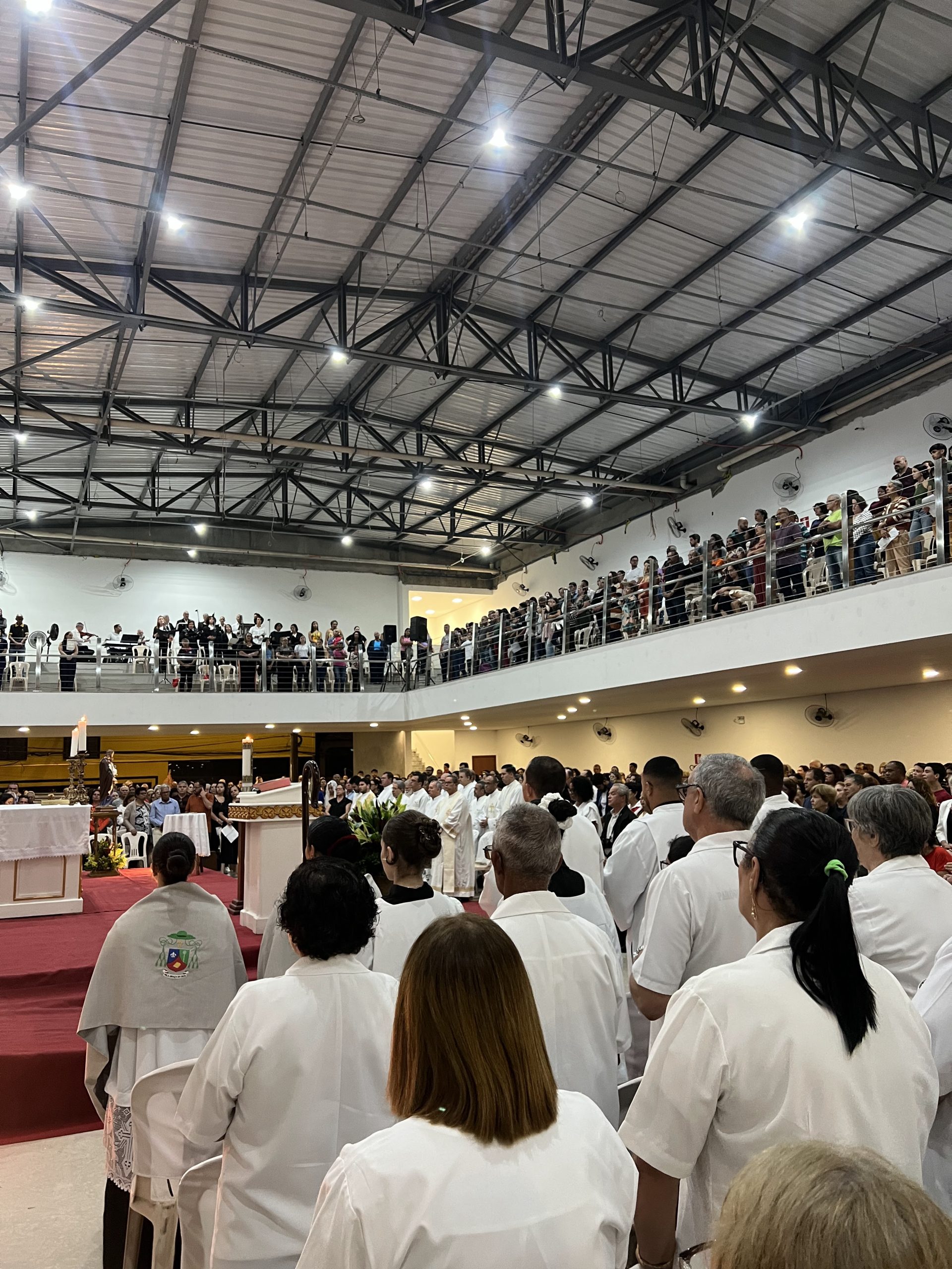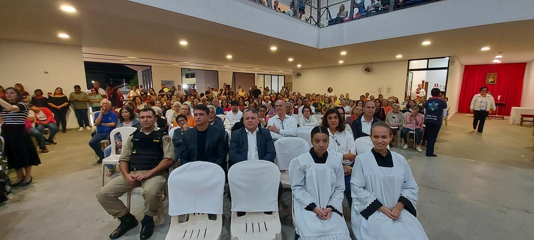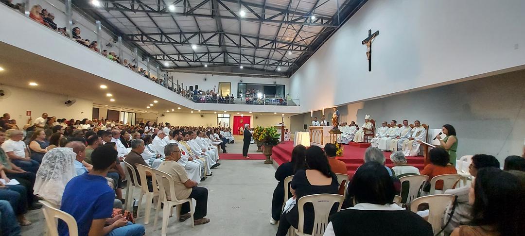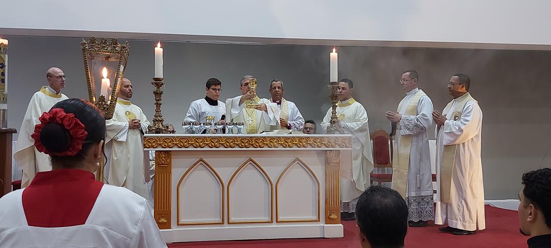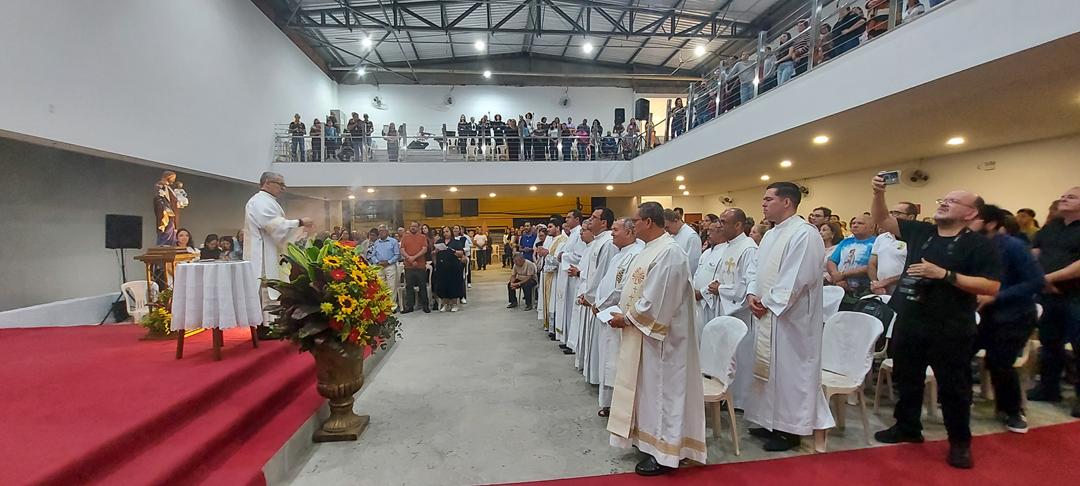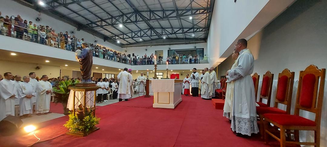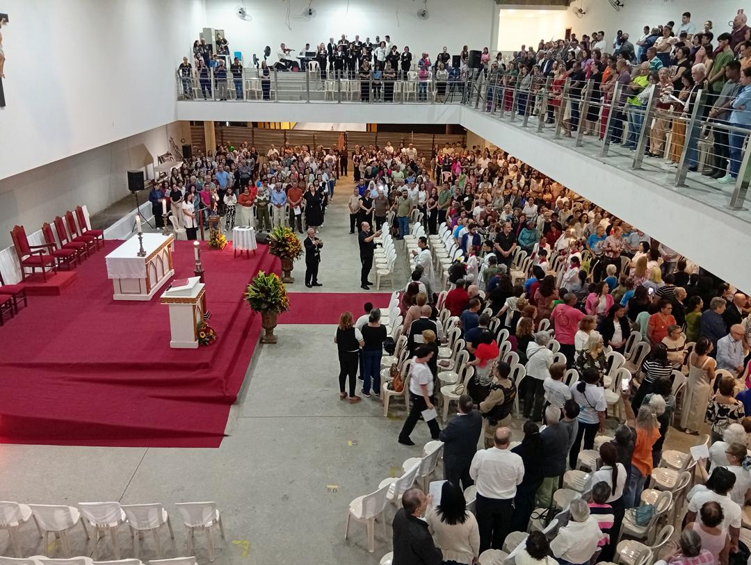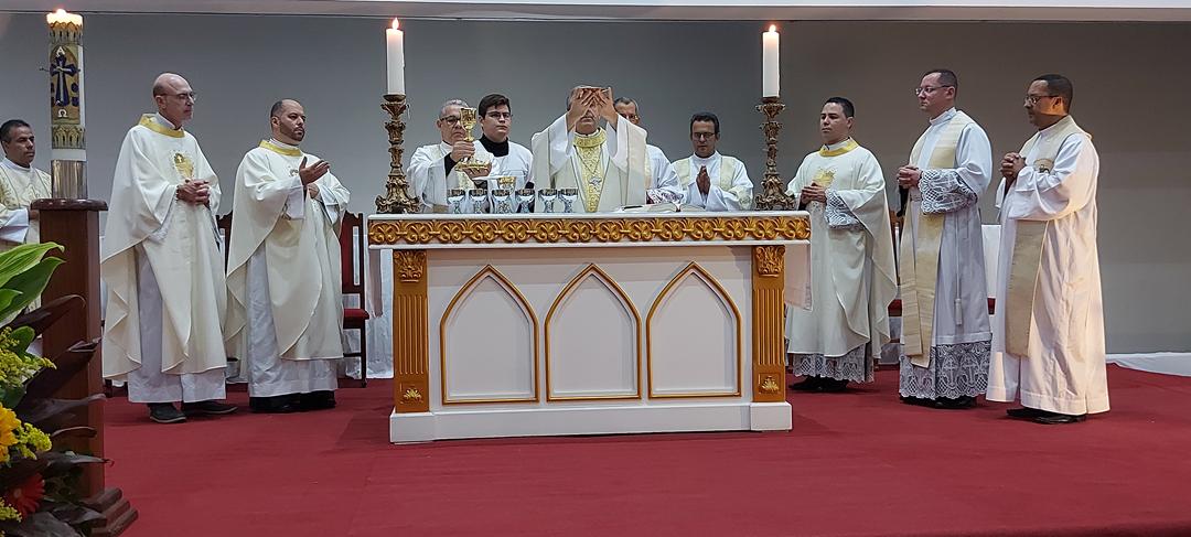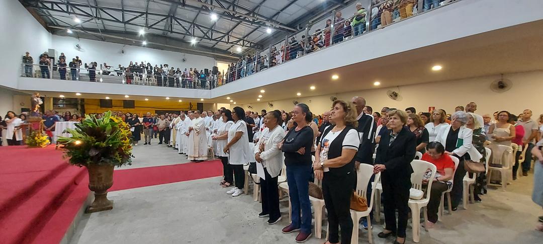 A celebração eucarística contou com a presença de autoridades civis e de uma grande porção do Povo de Deus. Foi concelebrada por diversos padres da Diocese, contando também com a presença de alguns diáconos permanentes e dos seminaristas estagiários de nossa Diocese: André, Marlon e Robson.