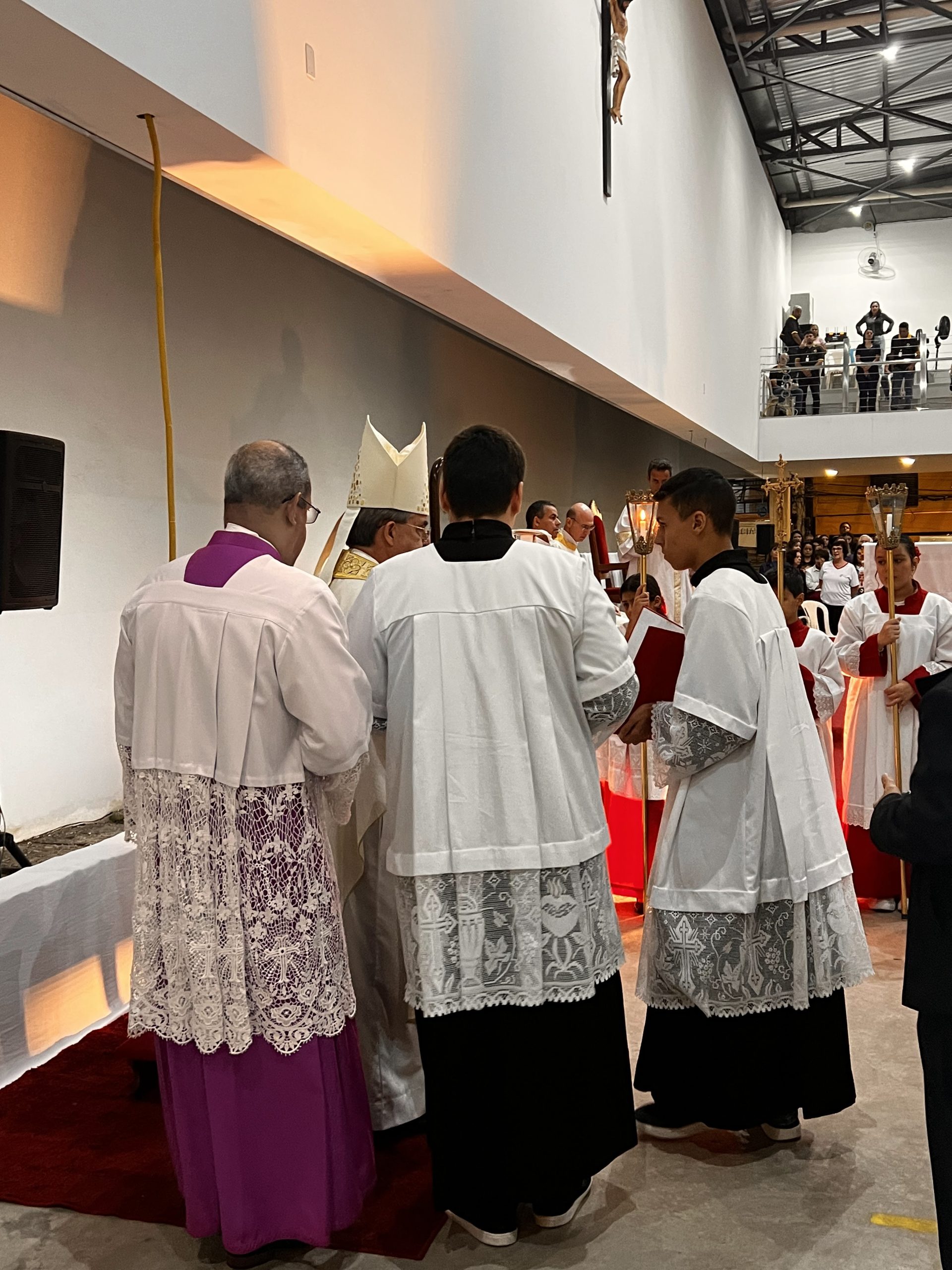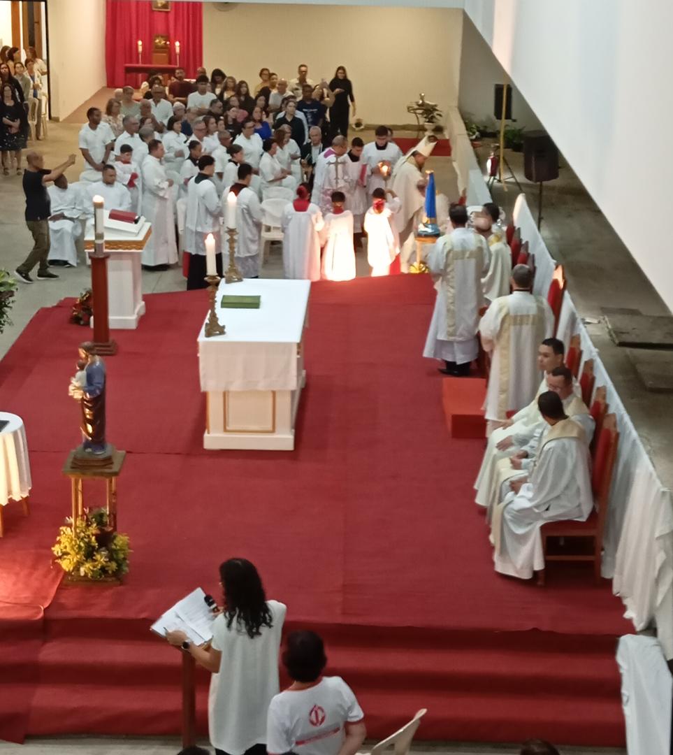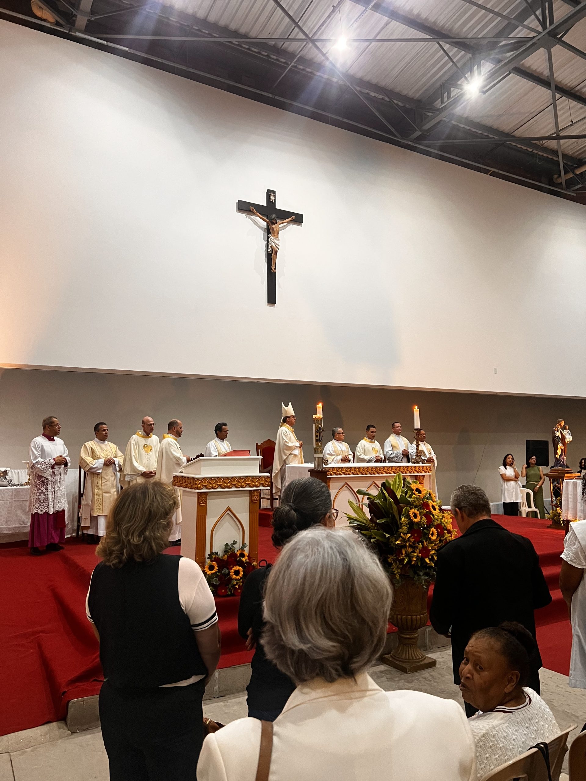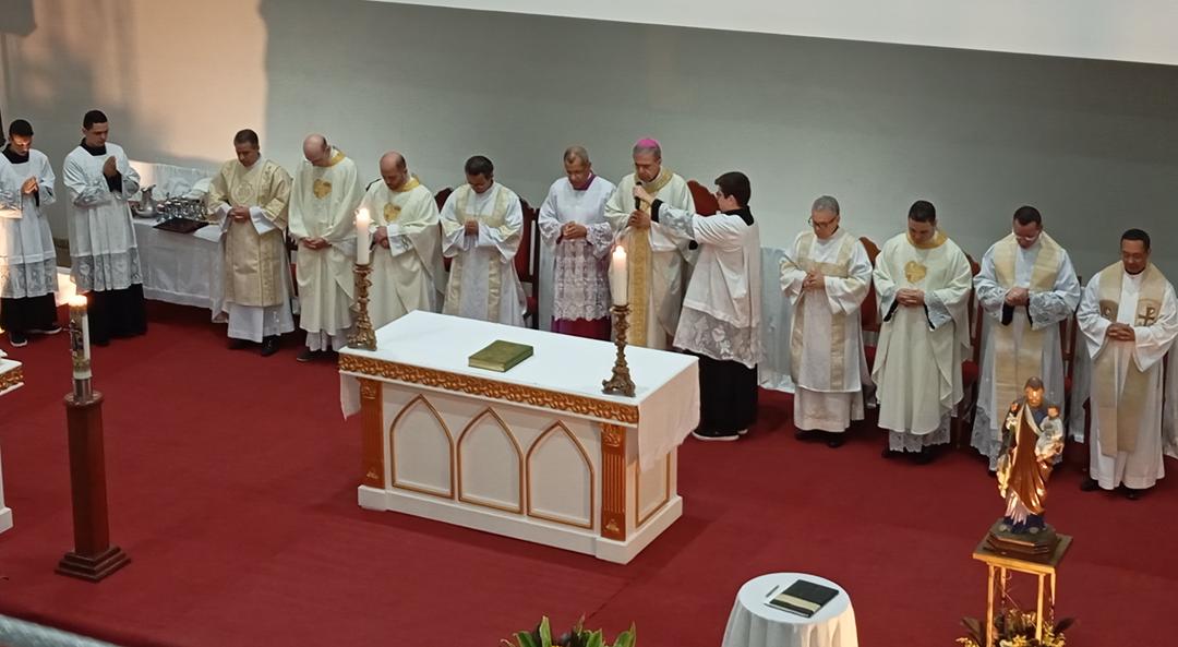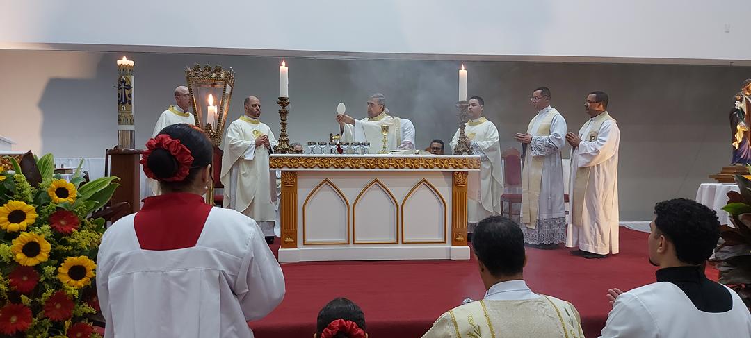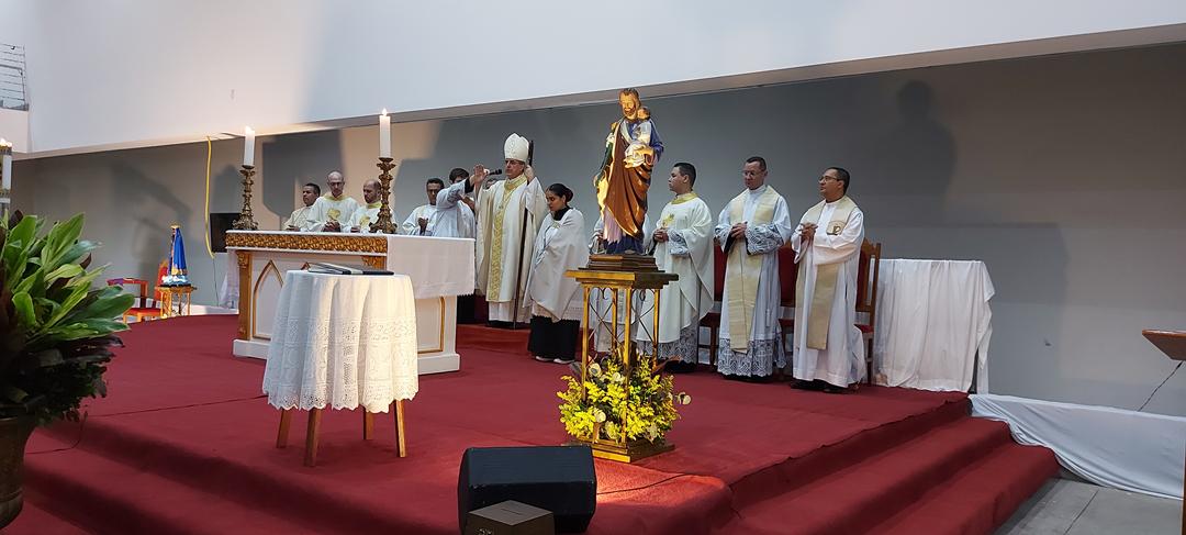 A celebração eucarística contou com a presença de autoridades civis e de uma grande porção do Povo de Deus. Foi concelebrada por diversos padres da Diocese, contando também com a presença de alguns diáconos permanentes e dos seminaristas estagiários de nossa Diocese: André, Marlon e Robson.
