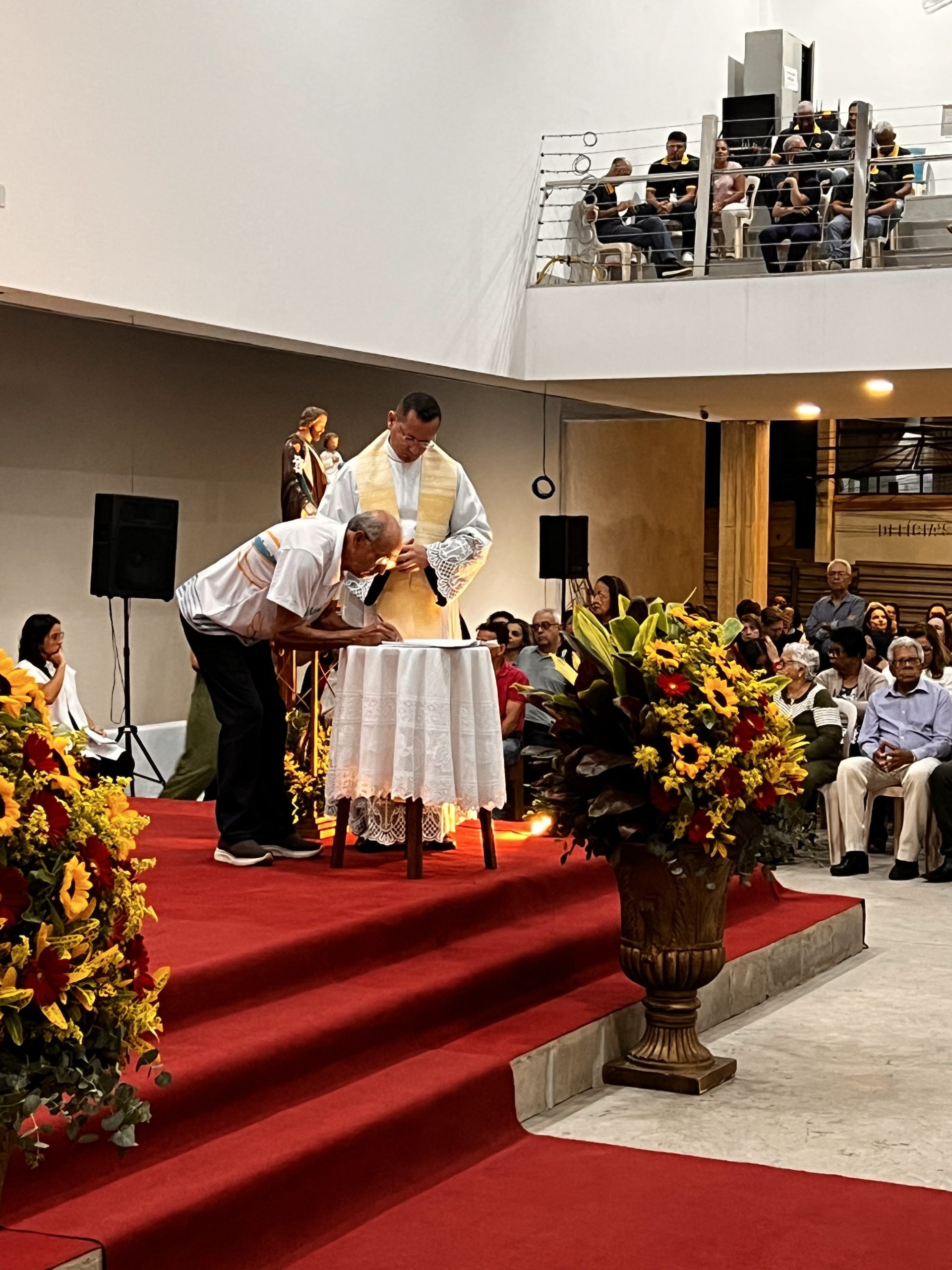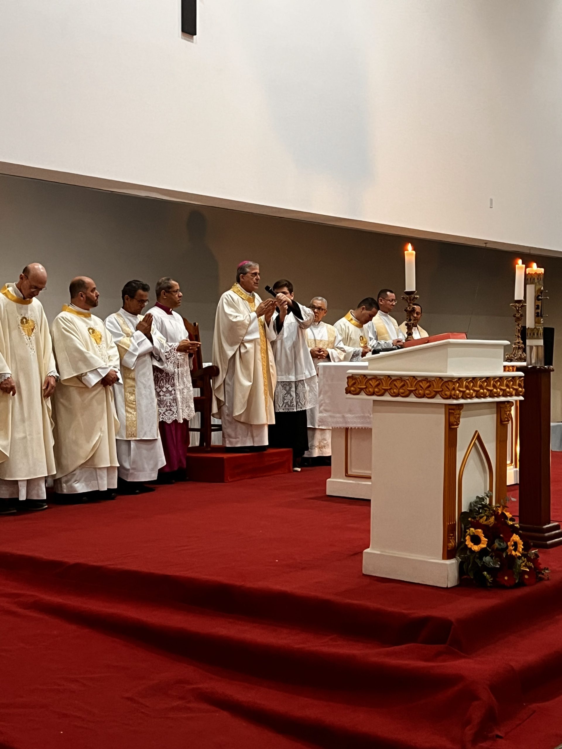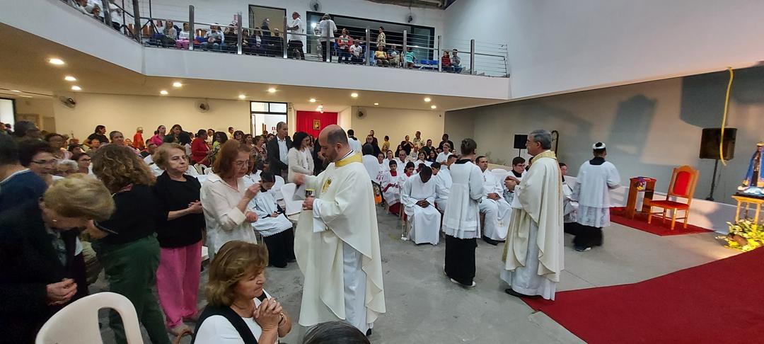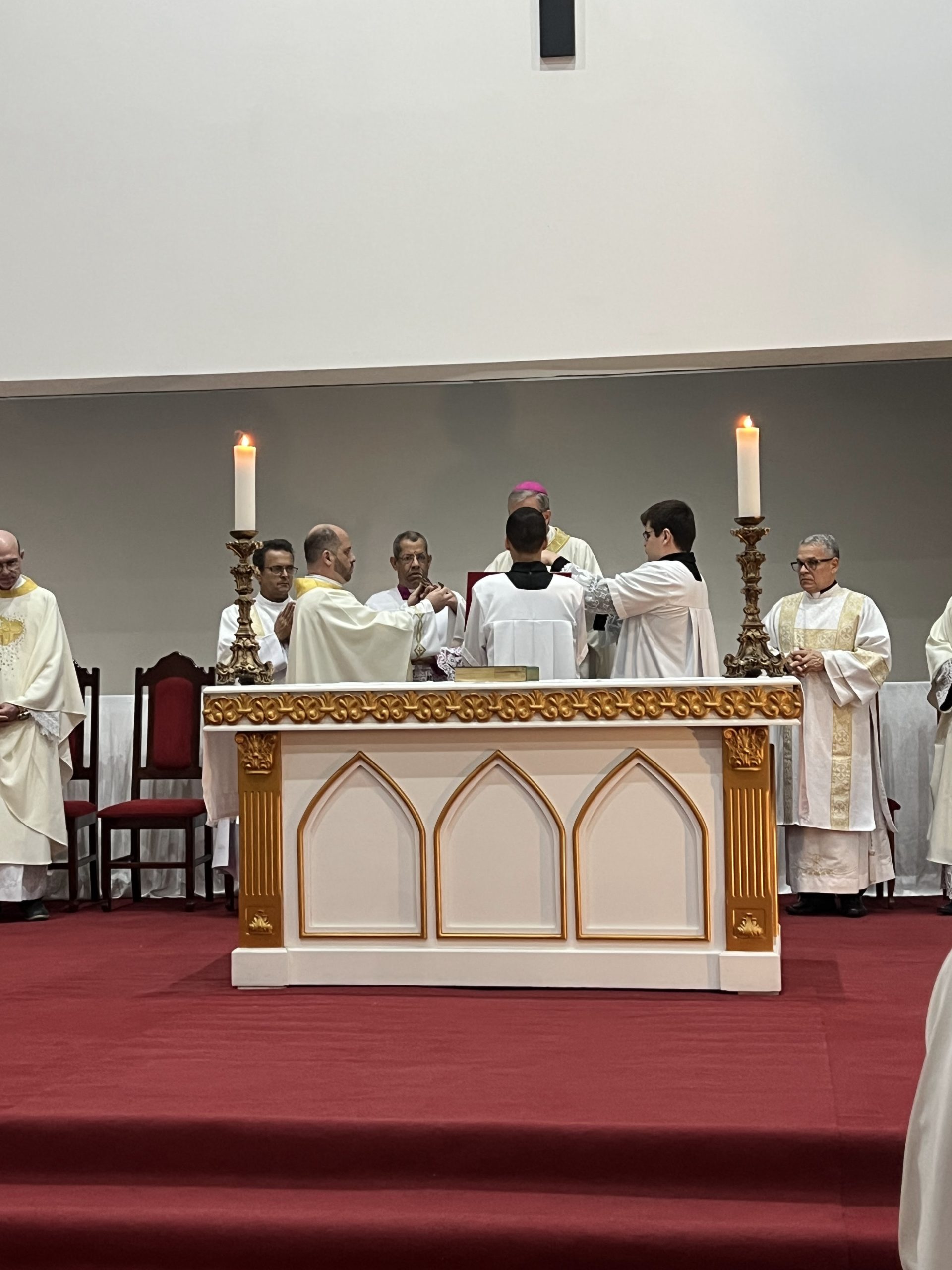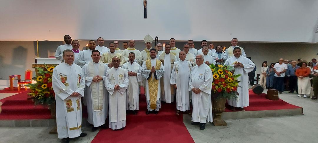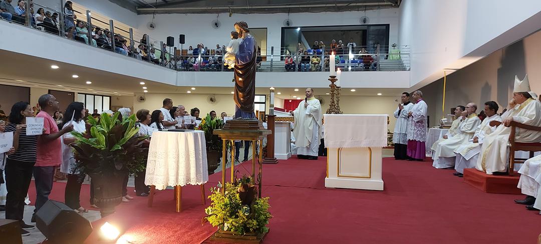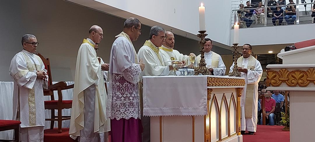 A celebração eucarística contou com a presença de autoridades civis e de uma grande porção do Povo de Deus. Foi concelebrada por diversos padres da Diocese, contando também com a presença de alguns diáconos permanentes e dos seminaristas estagiários de nossa Diocese: André, Marlon e Robson.