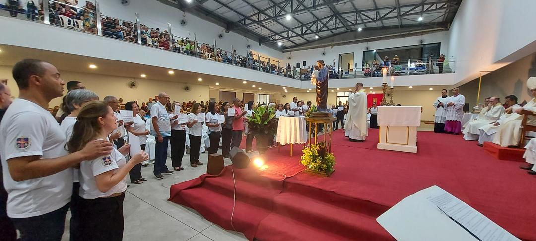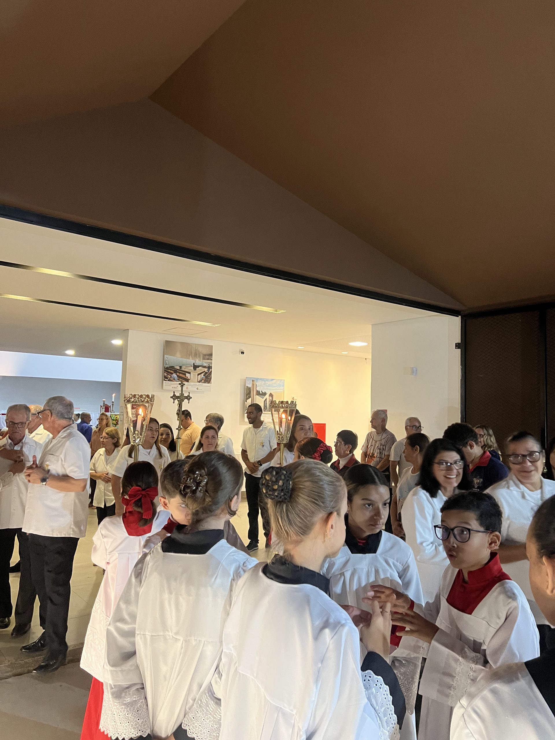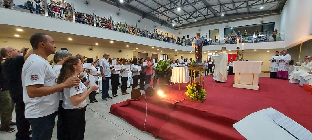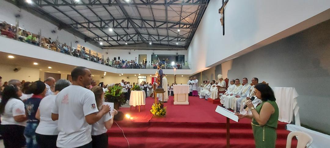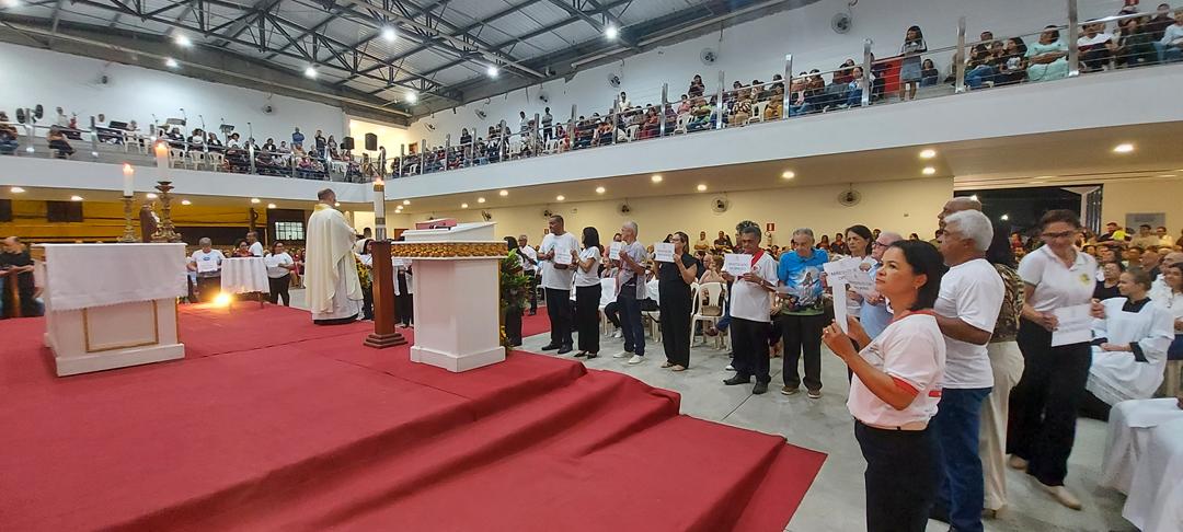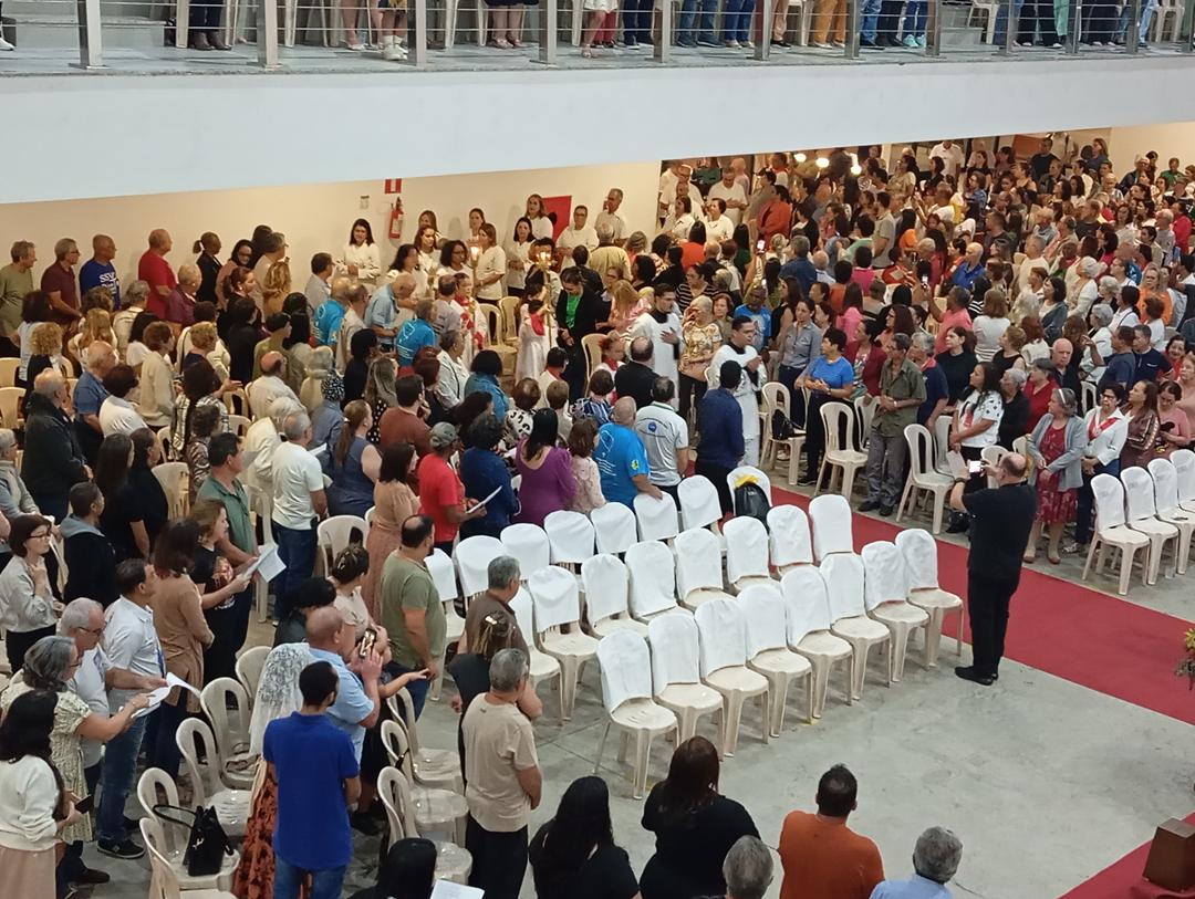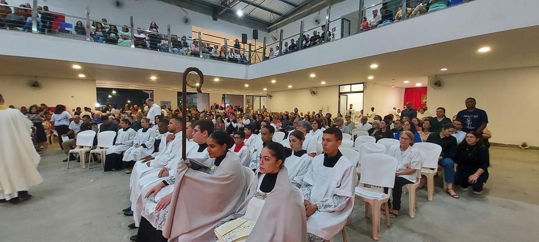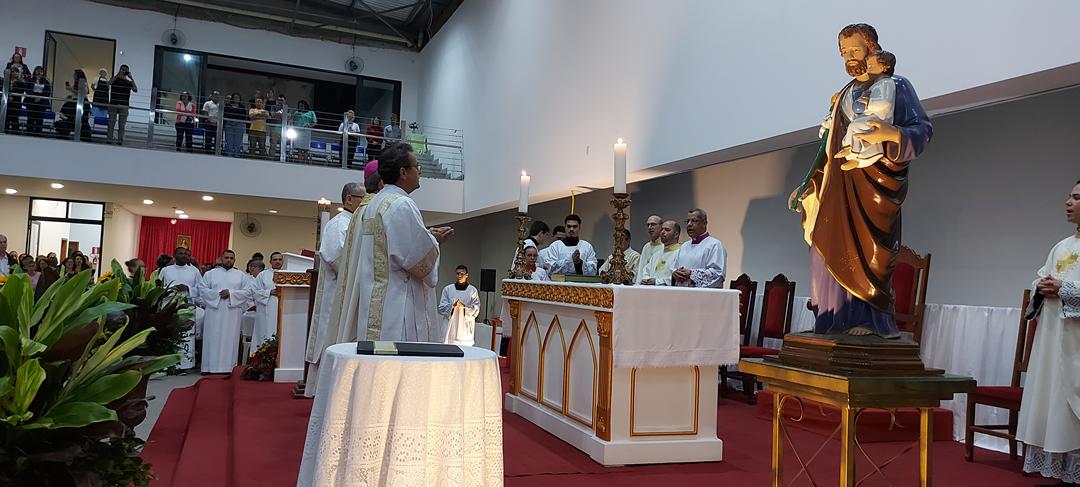 A celebração eucarística contou com a presença de autoridades civis e de uma grande porção do Povo de Deus. Foi concelebrada por diversos padres da Diocese, contando também com a presença de alguns diáconos permanentes e dos seminaristas estagiários de nossa Diocese: André, Marlon e Robson.