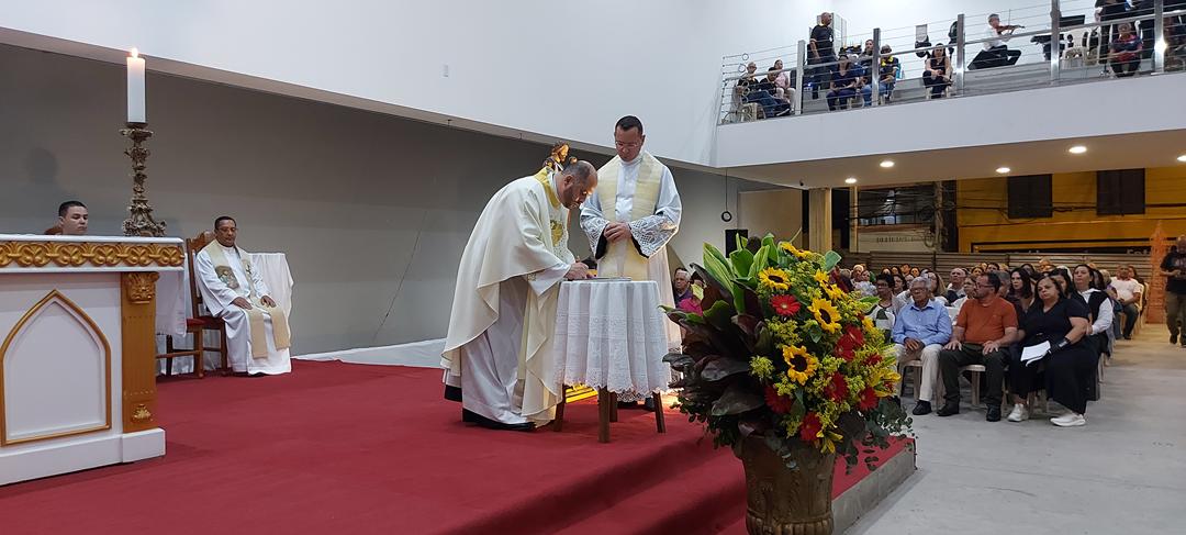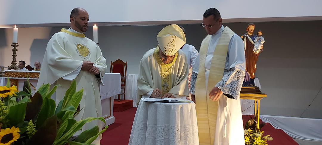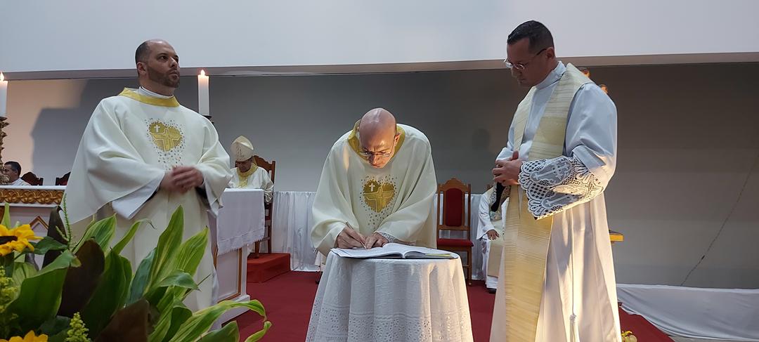 Após a homilia, o novo pároco renovou as promessas sacerdotais diante do bispo diocesano e recebeu alguns instrumentos para bem desempenhar sua missão: a chave do sacrário, o batistério, o confessionário e a Sédia (cadeira da presidência). O novo pároco foi então apresentado à comunidade reunida, que, com alegria, o acolheu como seu pastor.