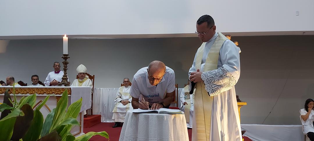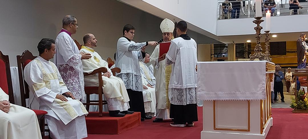 Após a saudação inicial, realizada por Dom Marco Aurélio, e a entrega das chaves da Igreja, o Chanceler do Bispado, Pe. Ueliton Neves da Silva, fez a leitura da provisão de nomeação. Em seguida, o Pe. Fernando Andrade, diante do altar, proferiu a profissão de fé e prestou o juramento de fidelidade. Antes da aclamação do Evangelho, recebeu das mãos do Bispo o Evangeliário e proclamou o Evangelho, recordando que uma das funções do pároco é o anúncio da Palavra.
