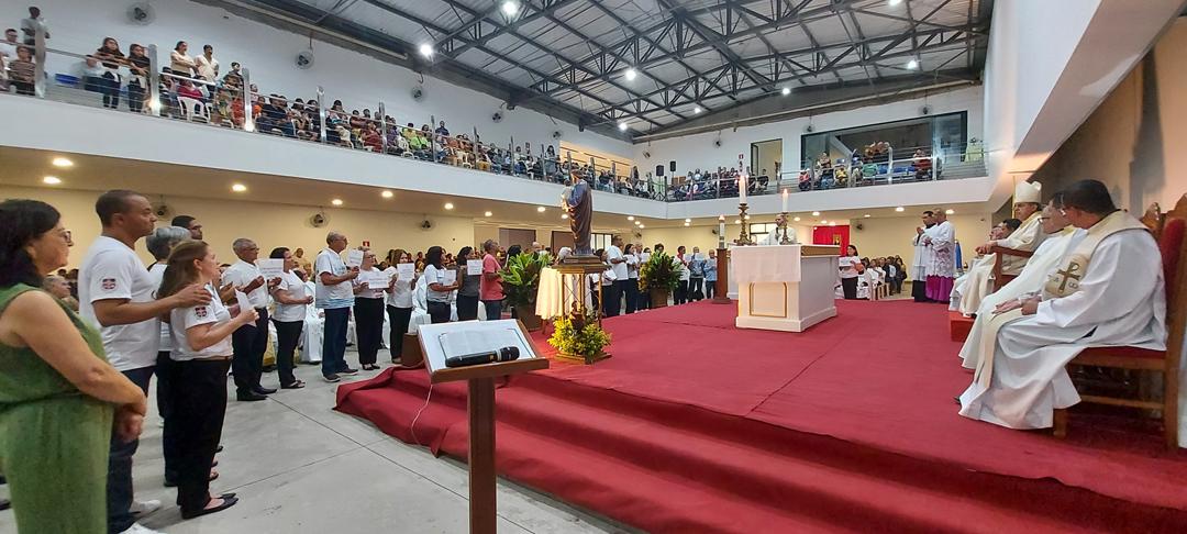 Em sua homilia, Dom Marco Aurélio lembrou que o pároco é o pastor do rebanho: ora caminha à frente, como quem indica o caminho; ora caminha no meio, buscando vivenciar a fraternidade. Destacou, ainda, a figura de Paulo como grande anunciador do Evangelho na comunidade de Éfeso.