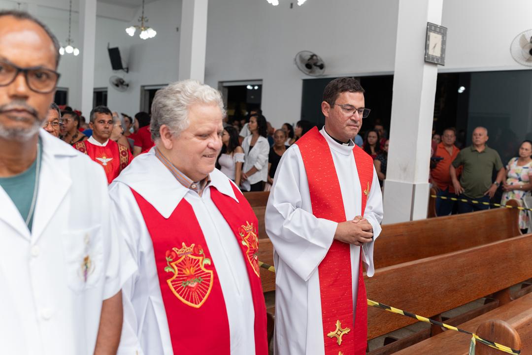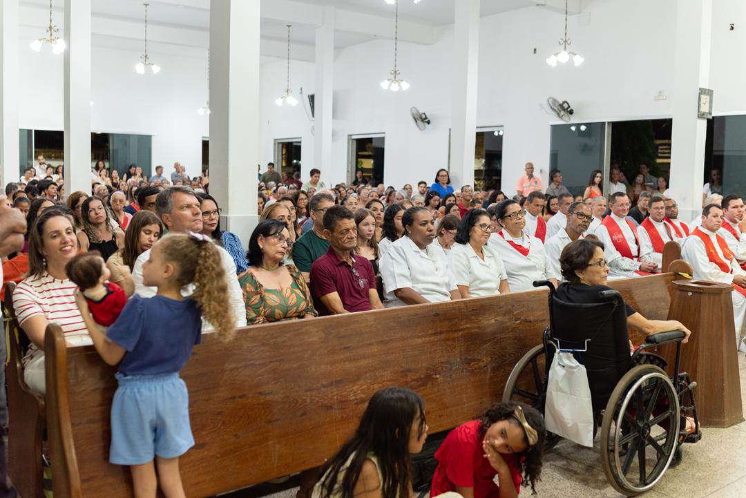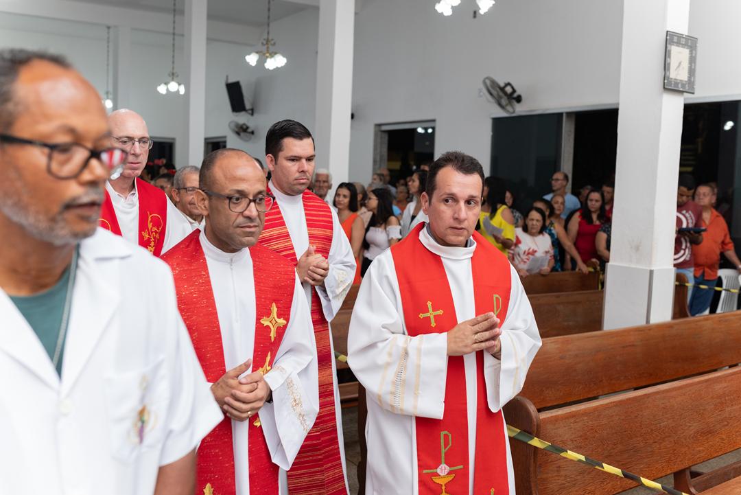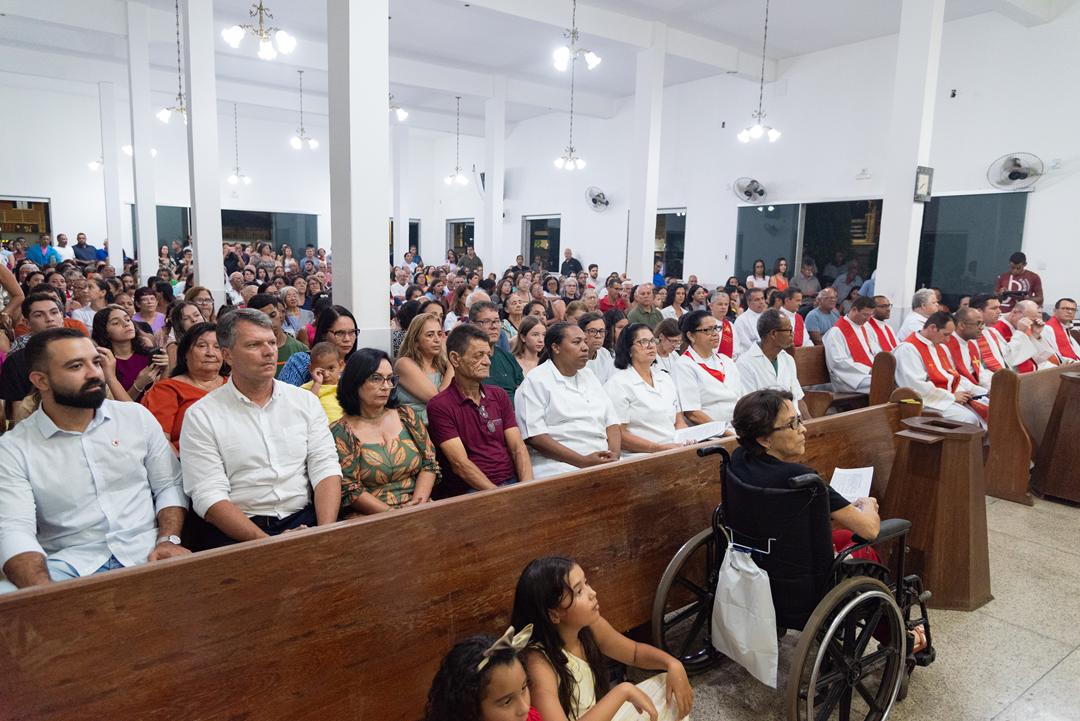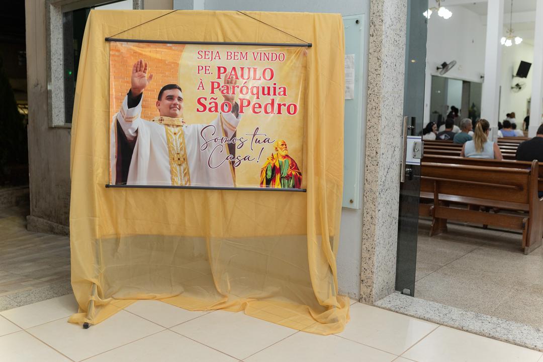 A missa com o o rito de posse canônica foi concelebrada por Dom Odilon Guimarães Moreira, bispo emérito, por diversos padres da Diocese, com a assistência de alguns diáconos permanentes. A Celebração Eucarística contou, ainda, com a presença de familiares e amigos do padre e uma grande participação do Povo de Deus da Paróquia São Pedro e de representantes da Paróquia Nossa Senhora da Piedade, em Itabira, na qual o Pe. Paulo serviu no ofício de vigário paroquial.