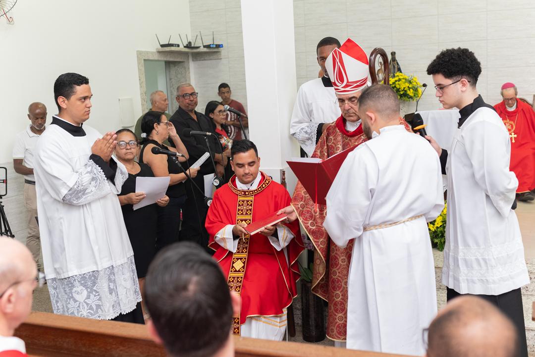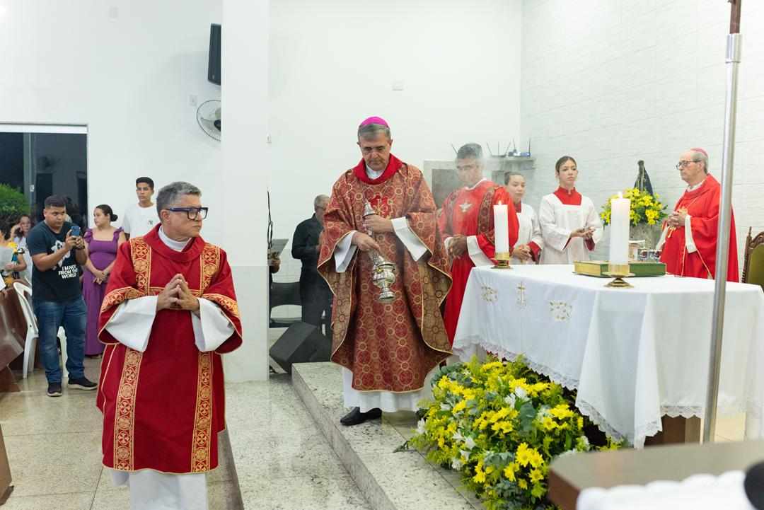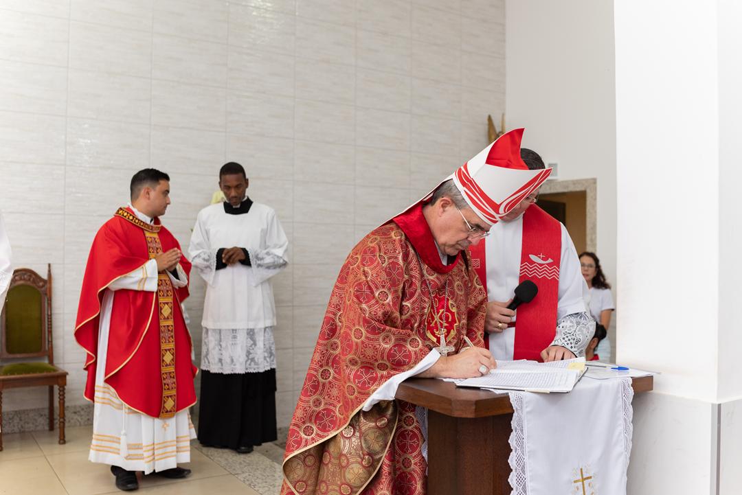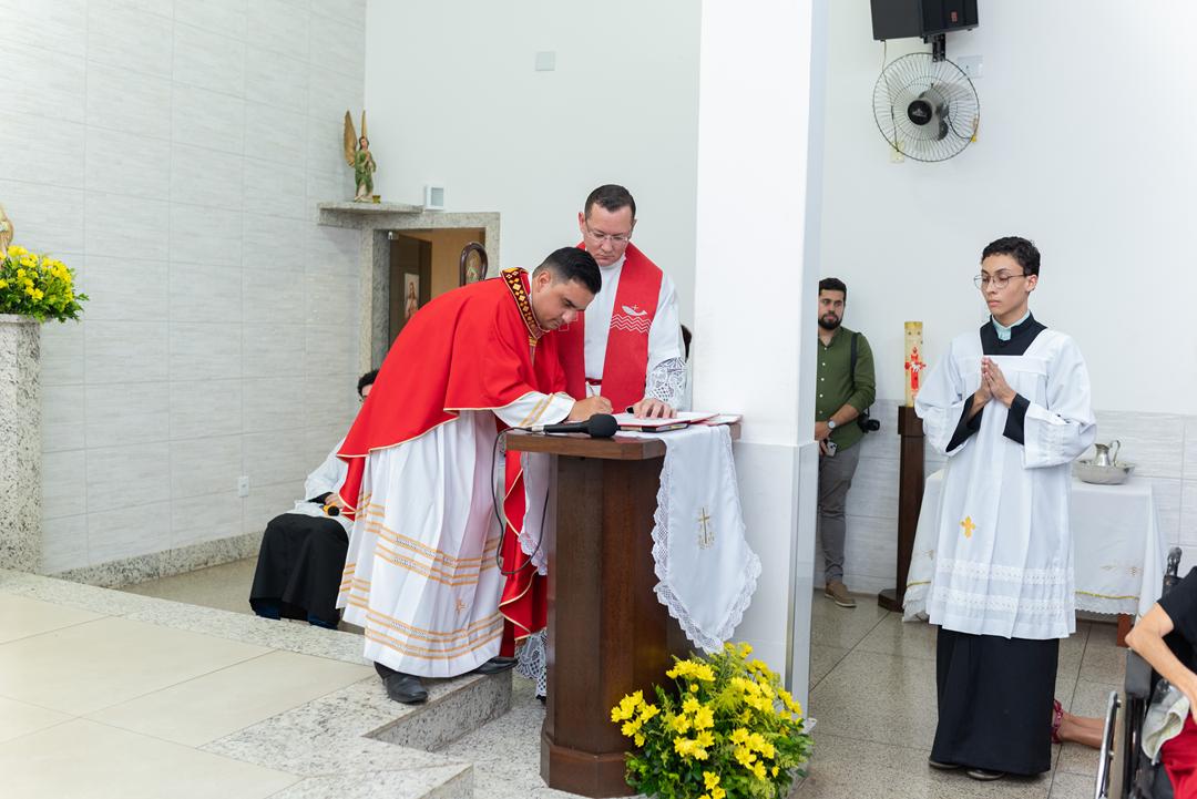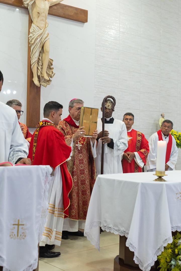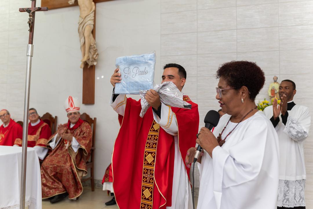 Após a saudação inicial, realizada por Dom Marco Aurélio, e entrega das chaves da Igreja, o Chanceler do bispado, Pe. Ueliton Neves da Silva, fez a leitura da provisão de nomeação. Em seguida, o Pe. Paulo, diante do Altar, proferiu a profissão de fé e prestou o juramento de fidelidade. Antes da aclamação do Evangelho, o novo pároco recebeu das mãos do Bispo o Evangeliário e proclamou o Evangelho, recordando que uma das funções do pároco é o anúncio da Palavra.