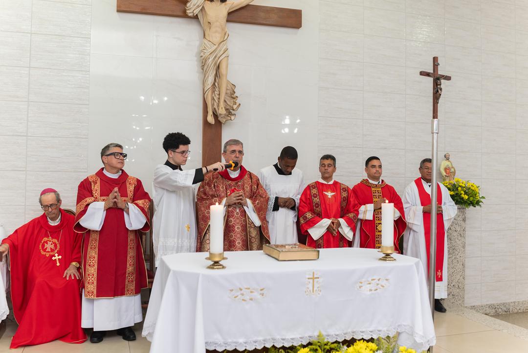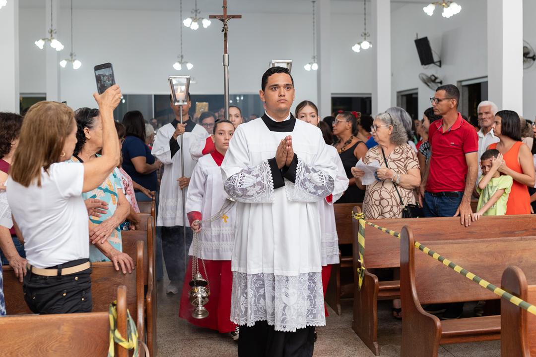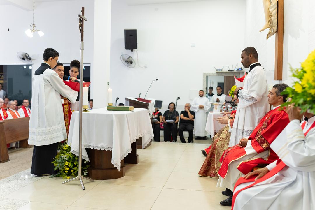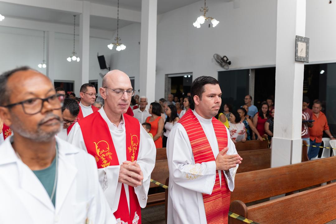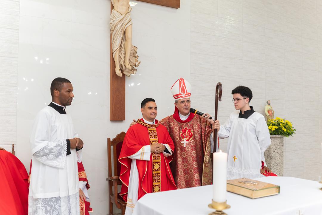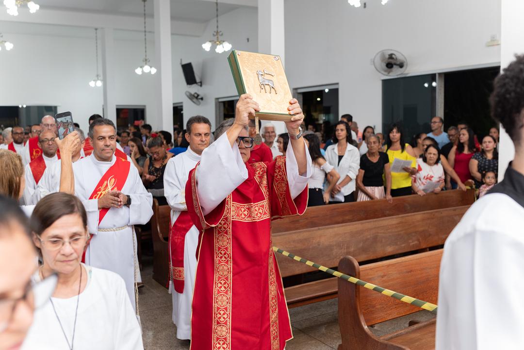 Após a saudação inicial, realizada por Dom Marco Aurélio, e entrega das chaves da Igreja, o Chanceler do bispado, Pe. Ueliton Neves da Silva, fez a leitura da provisão de nomeação. Em seguida, o Pe. Paulo, diante do Altar, proferiu a profissão de fé e prestou o juramento de fidelidade. Antes da aclamação do Evangelho, o novo pároco recebeu das mãos do Bispo o Evangeliário e proclamou o Evangelho, recordando que uma das funções do pároco é o anúncio da Palavra.