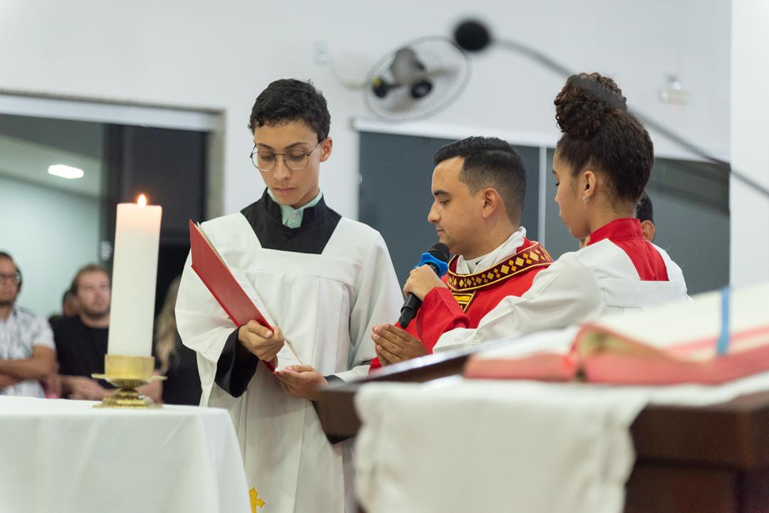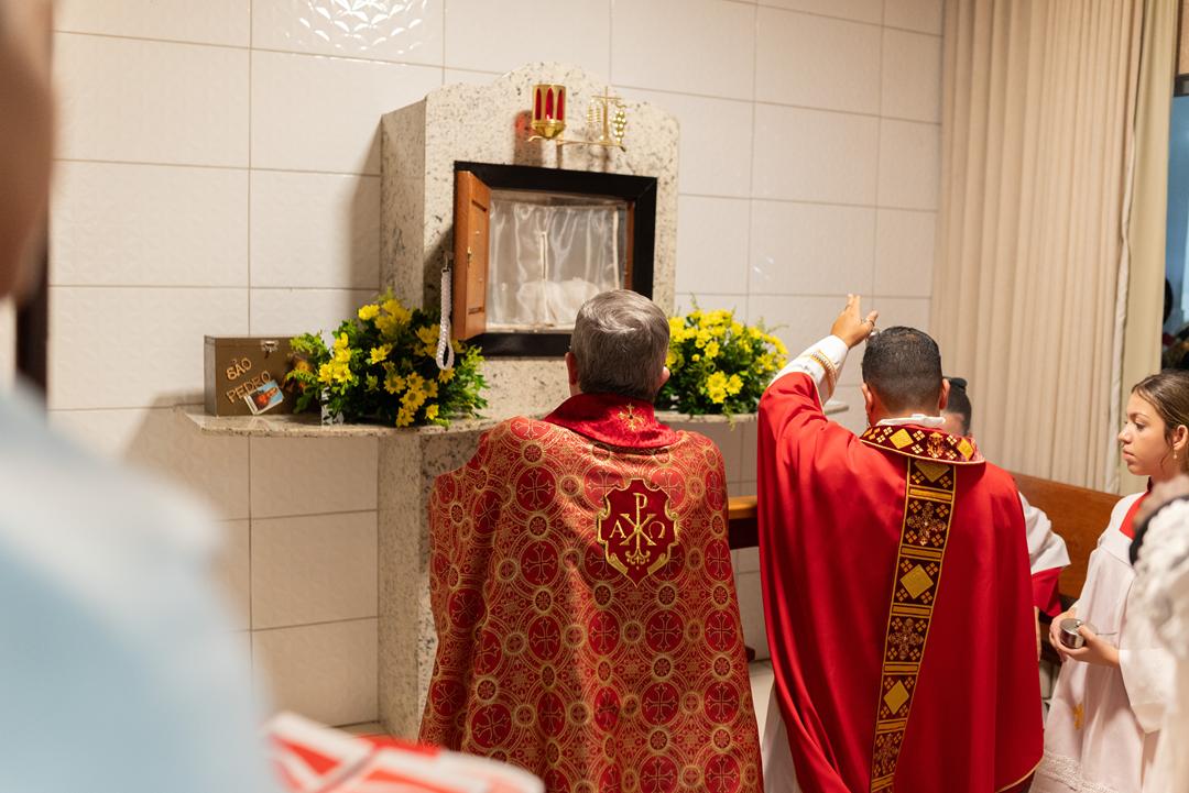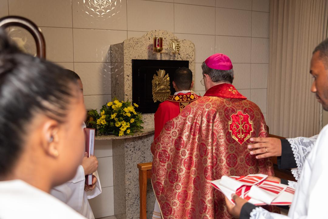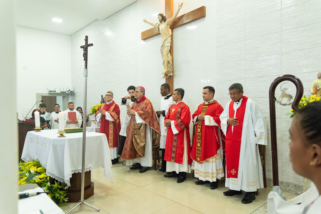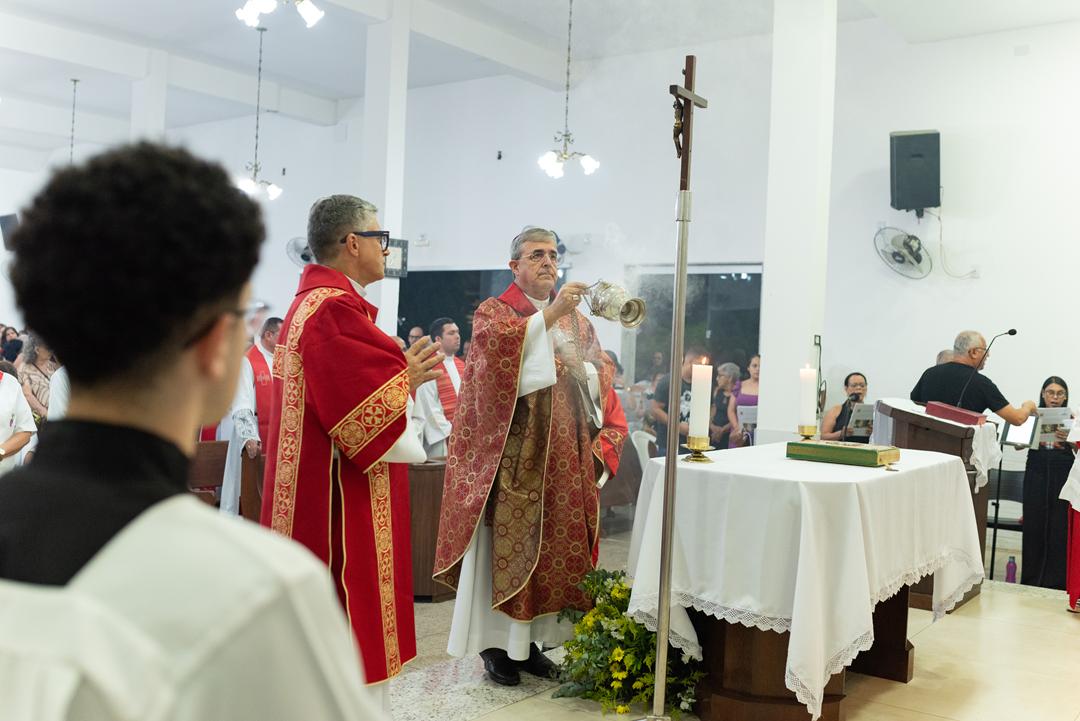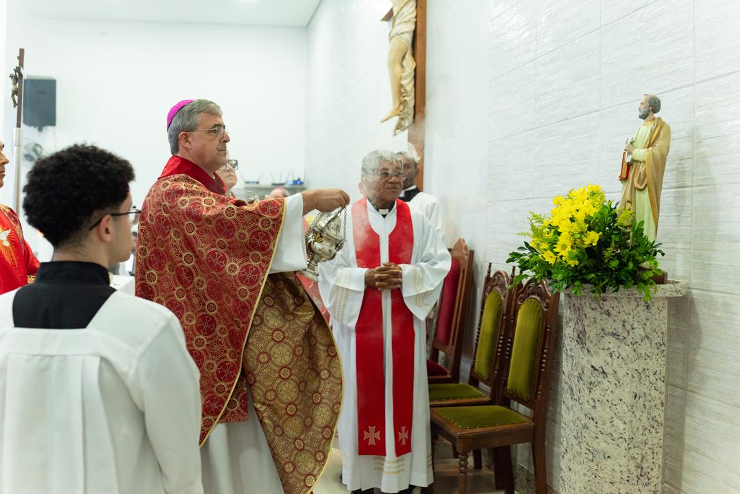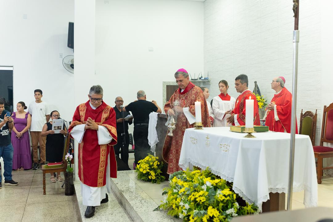 Após a saudação inicial, realizada por Dom Marco Aurélio, e entrega das chaves da Igreja, o Chanceler do bispado, Pe. Ueliton Neves da Silva, fez a leitura da provisão de nomeação. Em seguida, o Pe. Paulo, diante do Altar, proferiu a profissão de fé e prestou o juramento de fidelidade. Antes da aclamação do Evangelho, o novo pároco recebeu das mãos do Bispo o Evangeliário e proclamou o Evangelho, recordando que uma das funções do pároco é o anúncio da Palavra.