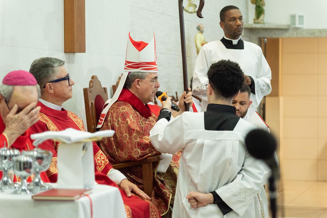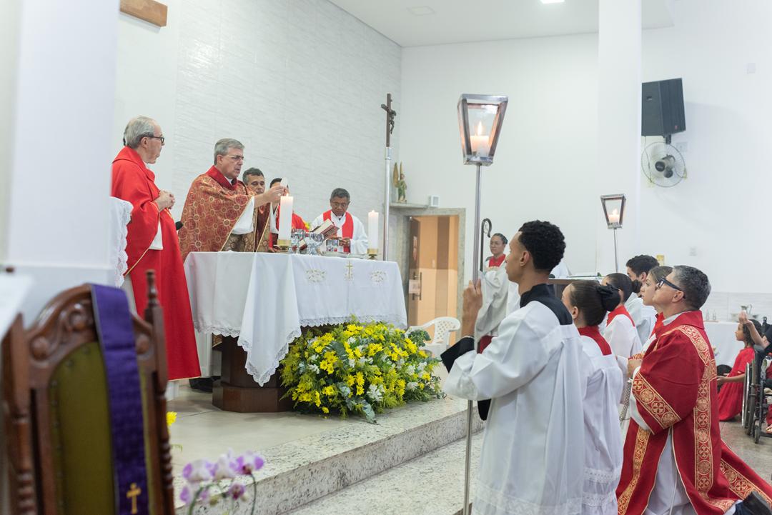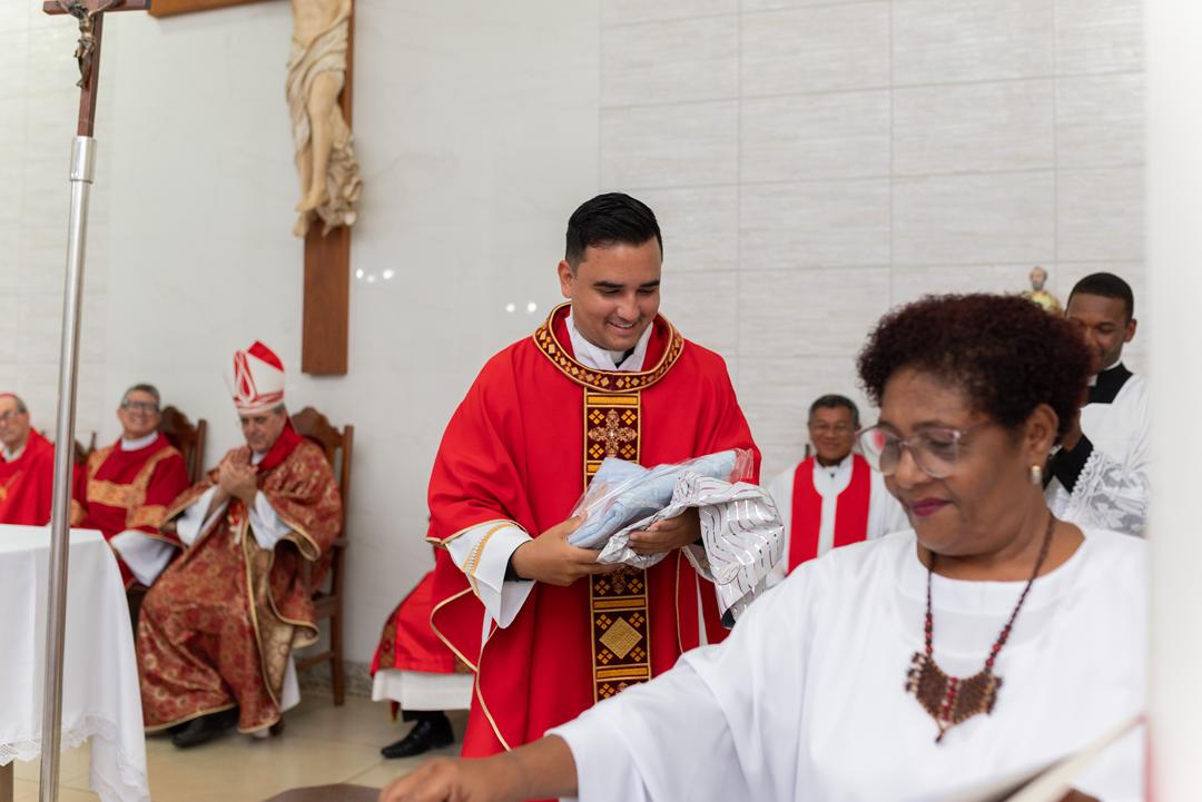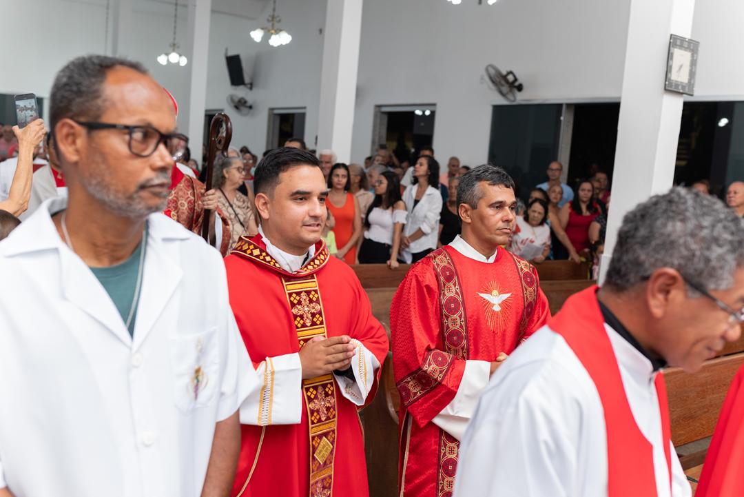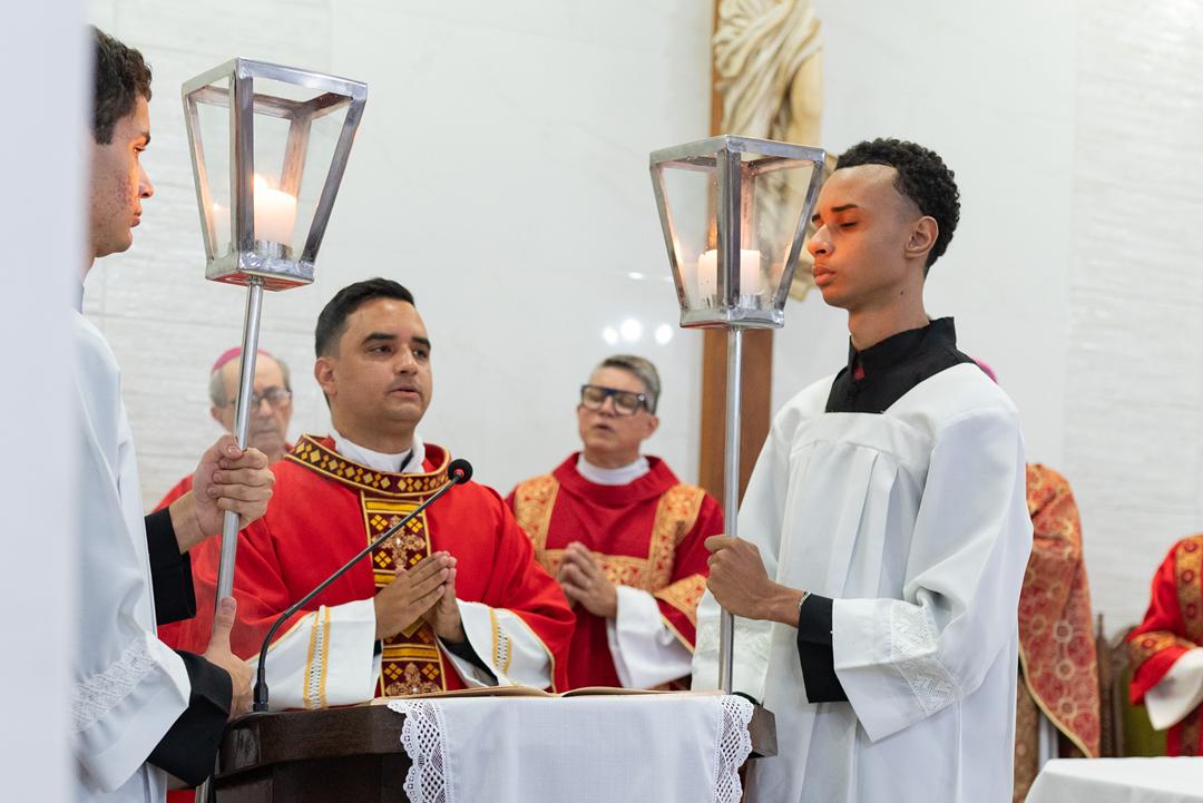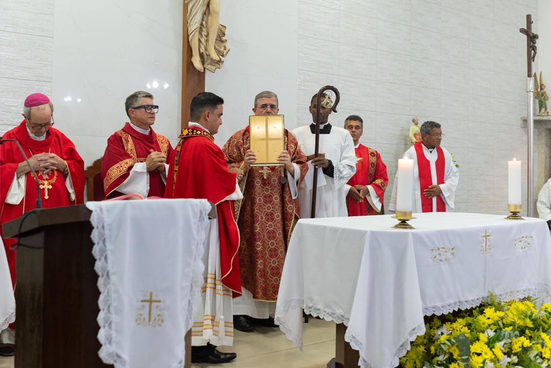 Após a saudação inicial, realizada por Dom Marco Aurélio, e entrega das chaves da Igreja, o Chanceler do bispado, Pe. Ueliton Neves da Silva, fez a leitura da provisão de nomeação. Em seguida, o Pe. Paulo, diante do Altar, proferiu a profissão de fé e prestou o juramento de fidelidade. Antes da aclamação do Evangelho, o novo pároco recebeu das mãos do Bispo o Evangeliário e proclamou o Evangelho, recordando que uma das funções do pároco é o anúncio da Palavra.