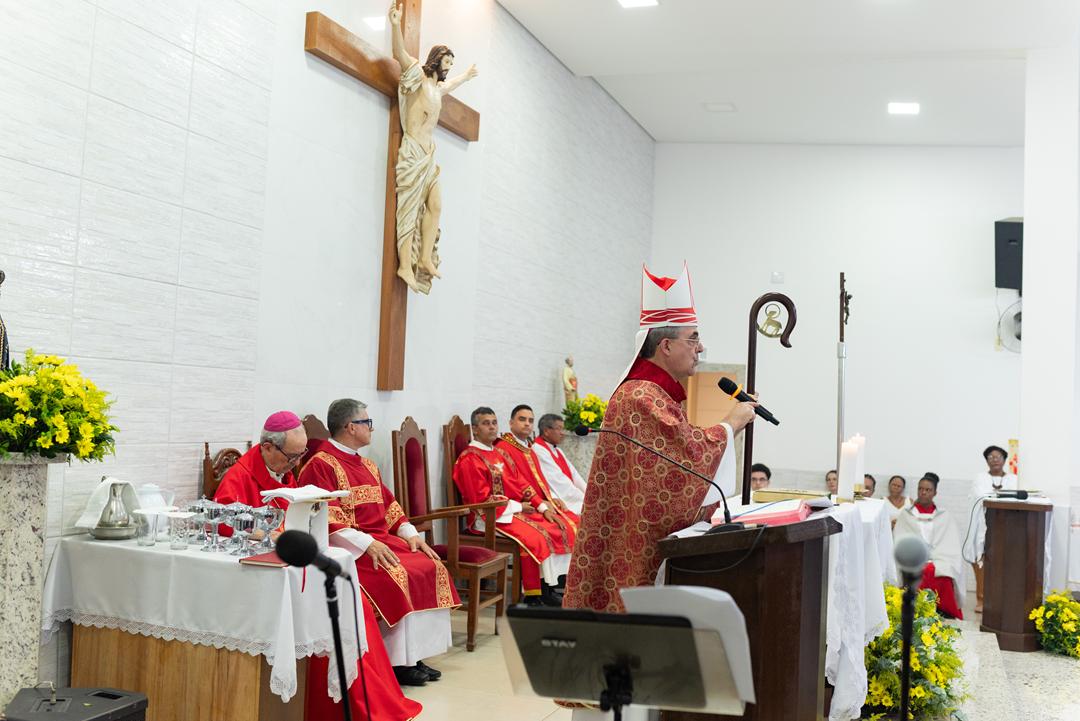 Em sua homilia, Dom Marco Aurélio, refletindo sobre o documento conclusivo do Sínodo sobre a Sinodalidade, recordou que, sendo a missão do Pároco a de alimentar quem está na comunidade com a Palavra, com a Eucaristia, com a Oração, com a Caridade, é preciso também ir ao encontro de quem está longe, pois a Igreja deve ser sempre a casa da Acolhida, da Caridade. A Igreja é a casa de todos, chamados a vivenciarem comunitariamente a sua fé e fazer a experiência de estar com o Cristo, que caminha sempre conosco.