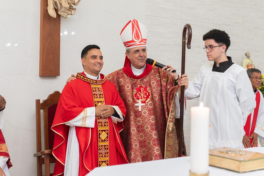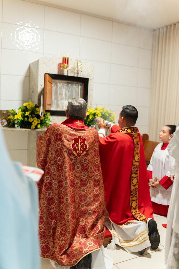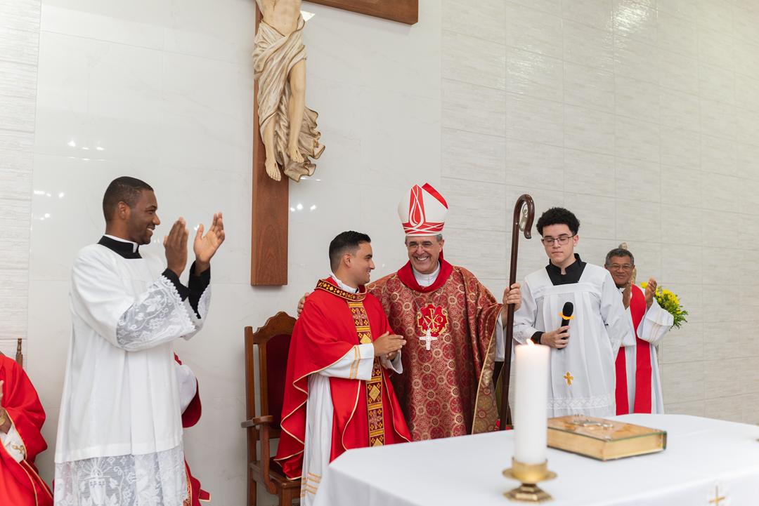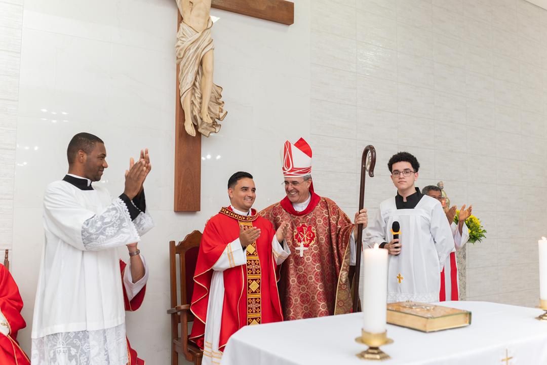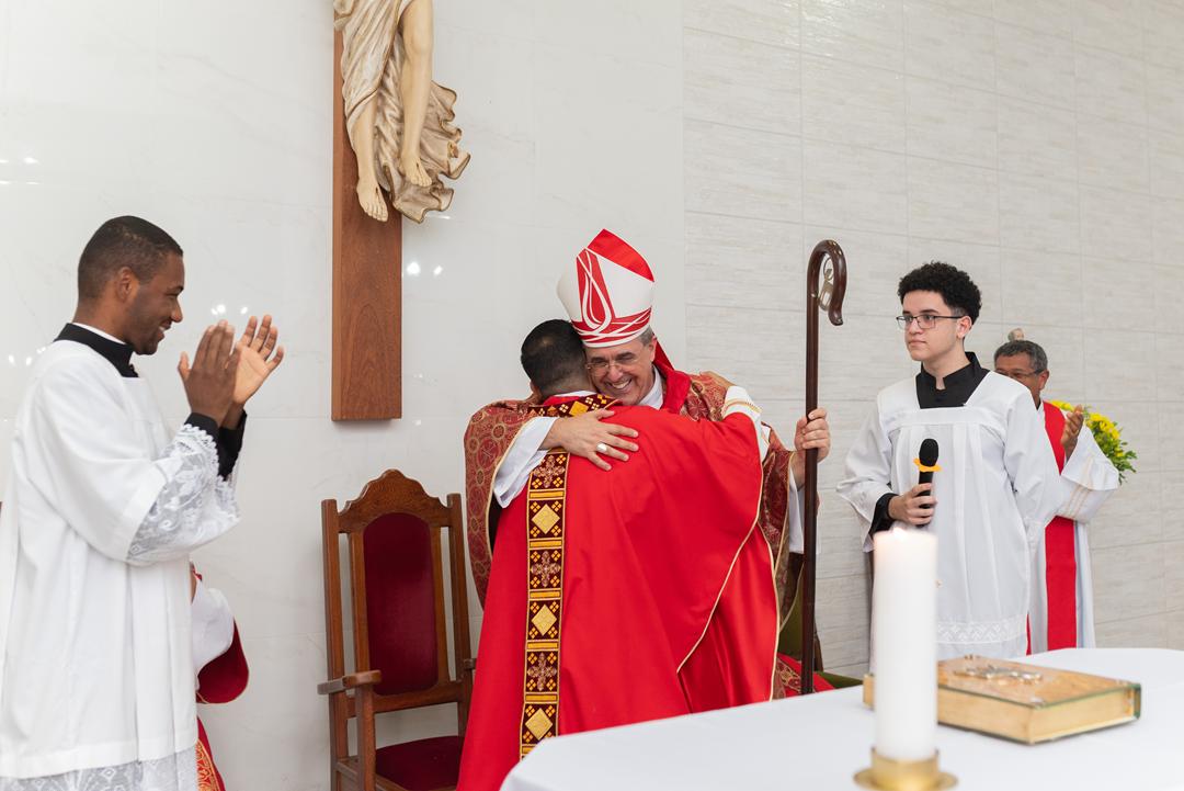 Após a homilia, o novo pároco renovou as promessas sacerdotais diante do bispo diocesano e recebeu alguns instrumentos para bem desempenhar sua missão. Ao receber a chave do sacrário e abri-lo, colocou-se diante do Santíssimo em um breve momento de adoração; o batistério, local onde os novos cristãos renascem para a fé; o confessionário, lugar da misericórdia, o qual o presbítero administra o Sacramento da Penitência e a Sédia (cadeira da presidência). Em seguida, Dom Marco Aurélio apresentou à comunidade reunida o novo pároco da Paróquia São Pedro.
