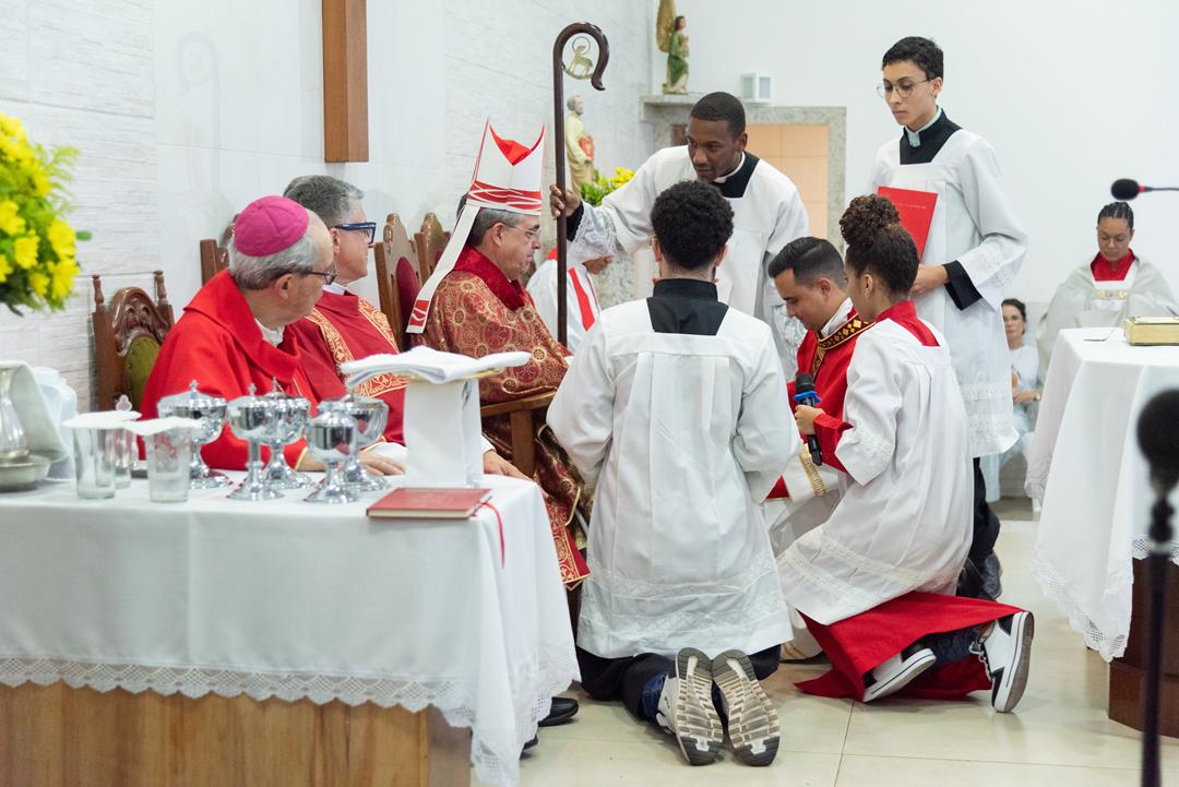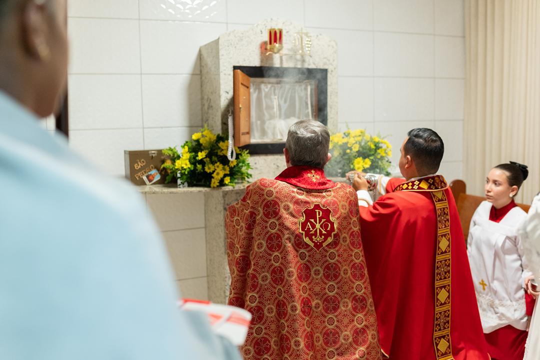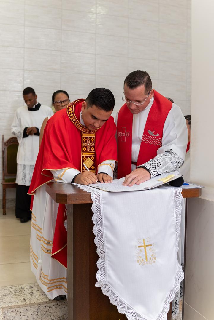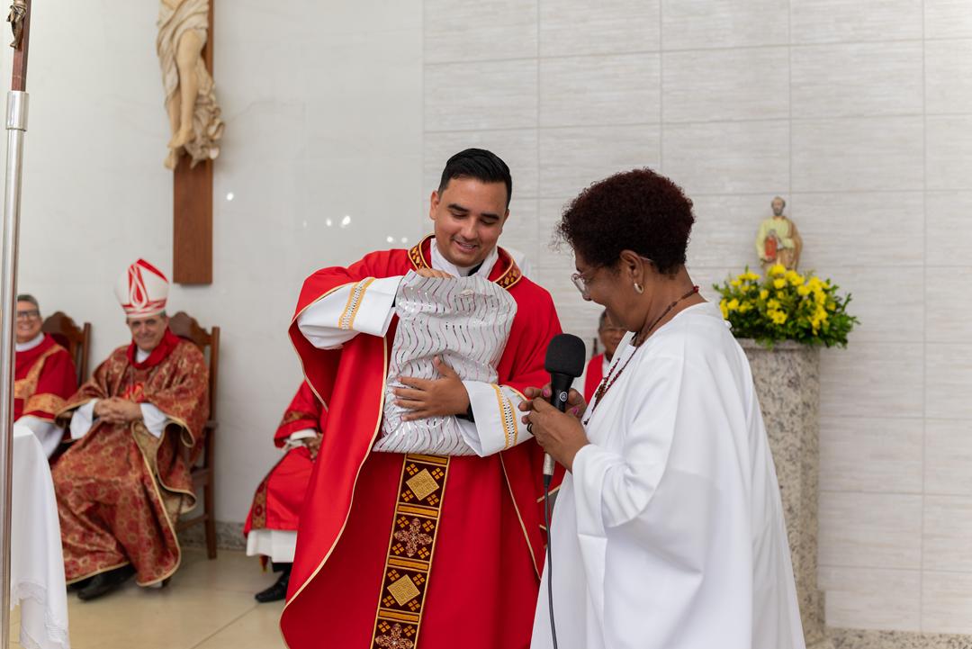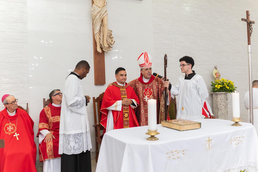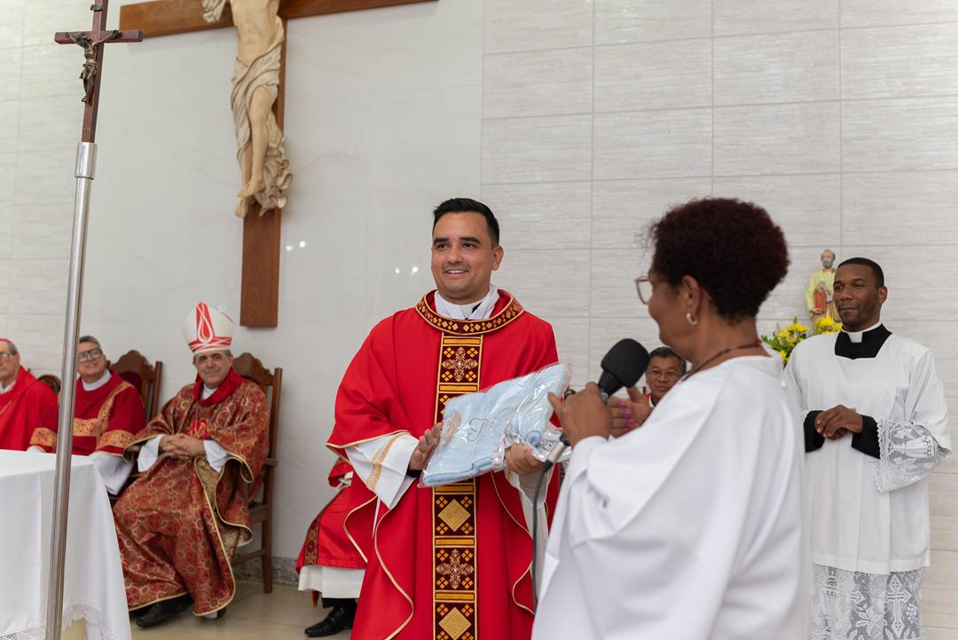 Após a homilia, o novo pároco renovou as promessas sacerdotais diante do bispo diocesano e recebeu alguns instrumentos para bem desempenhar sua missão. Ao receber a chave do sacrário e abri-lo, colocou-se diante do Santíssimo em um breve momento de adoração; o batistério, local onde os novos cristãos renascem para a fé; o confessionário, lugar da misericórdia, o qual o presbítero administra o Sacramento da Penitência e a Sédia (cadeira da presidência). Em seguida, Dom Marco Aurélio apresentou à comunidade reunida o novo pároco da Paróquia São Pedro.