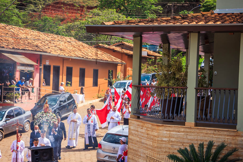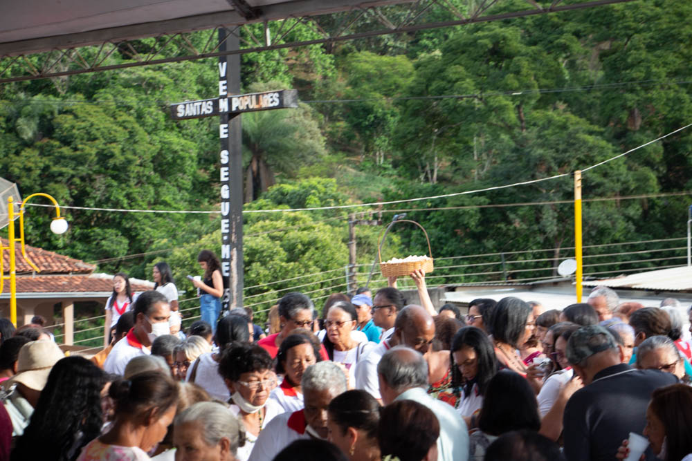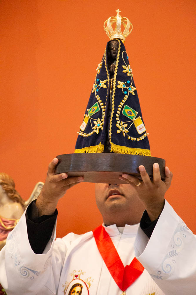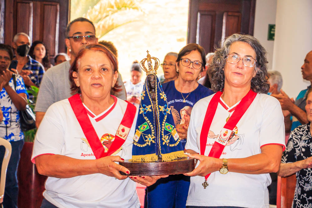 Ao final da missa, Pe. Adriano Mendes de Pinho agradeceu a presença de todos e o Pe. Ueliton agradeceu ao Pe. Adriano e a toda comunidade paroquial pela acolhida e pela linda festa. Pe. Renato Menezes Cruz juntamente com alguns fieis da Paróquia Sagrado Coração de Jesus, em Itabira, entregou ao Pe. Adriano Mendes de Pinho e à comunidade local a imagem peregrina de Nossa Senhora da Conceição Aparecida. Esta imagem irão peregrinar todas as paróquias da região pastoral 1 até maio de 2024. Após peregrinar nas comunidades da Paróquia Nossa Senhora do Carmo, a imagem será levada e entre ao Pe. Sérgio Henrique Gonçalves e aos fieis da Paróquia Nossa Senhora das Oliveiras, em Itambé do Mato Dentro, no dia 10 de dezembro, dando continuidade a peregrinação.