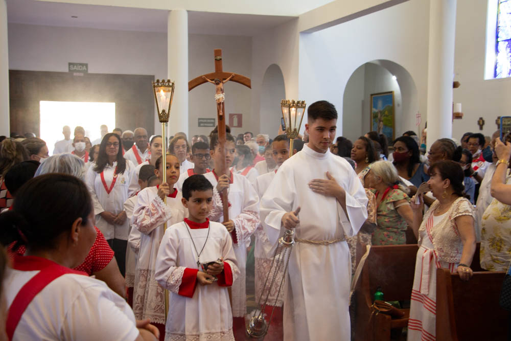 Com a presença de muitos fieis representando as 14 paróquias da Região Pastoral 1, padres, diáconos (permanente e transitório), seminaristas, religiosas e candidatos ao diaconado permanente, a missa foi celebrada às 15h e foi presidida pelo Pe. Ueliton Neves, coordenador de pastoral da região 1.