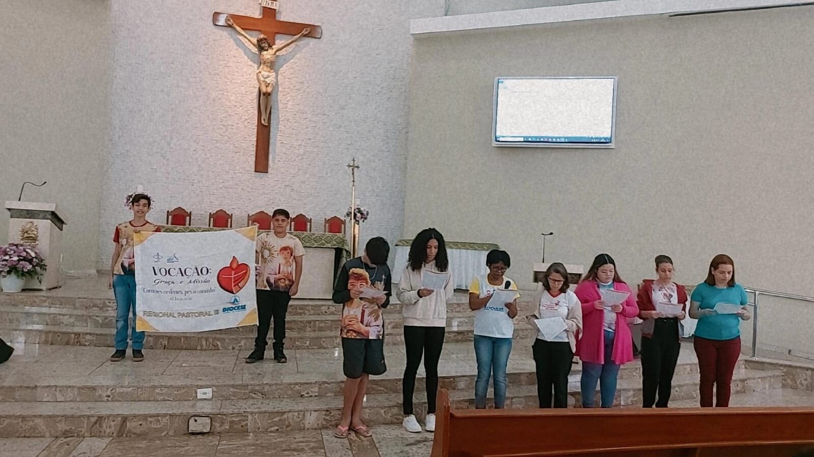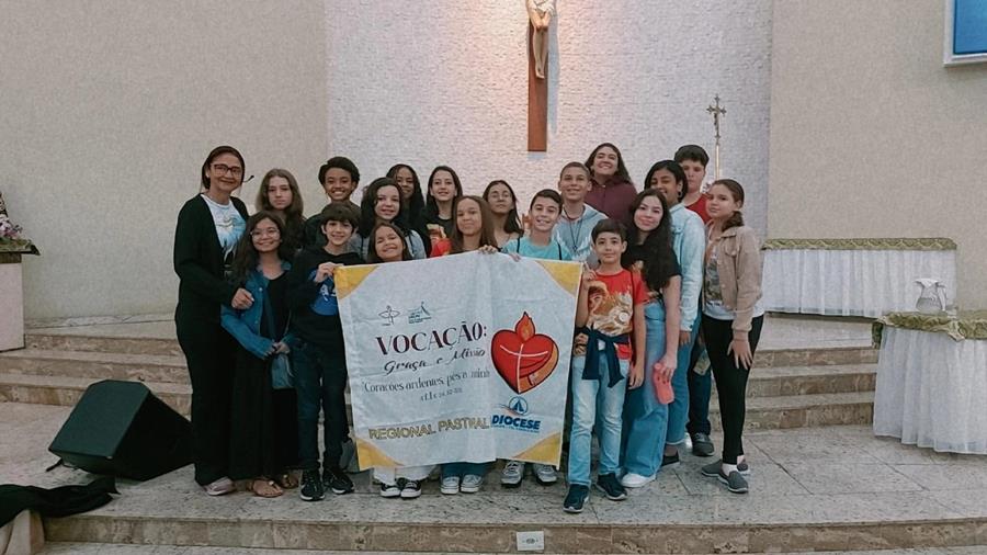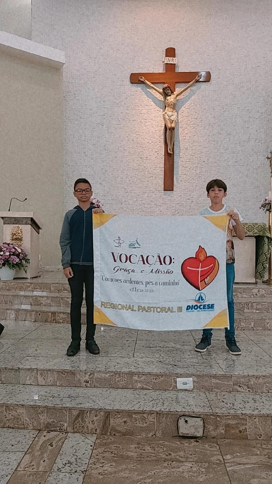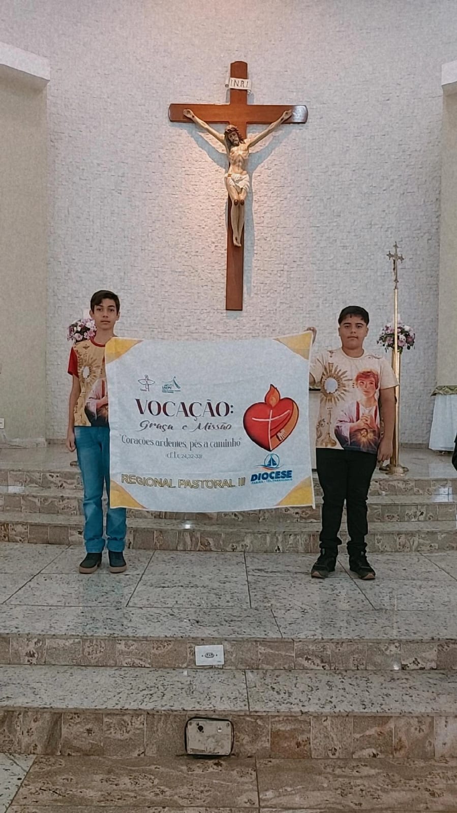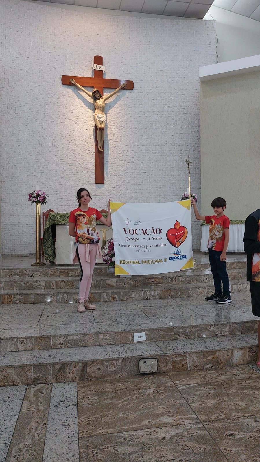 No último dia 27 de agosto, de 14h às 17h, no Santuário São Judas Tadeu, comunidade da Paróquia Cristo Libertador, em Ipatinga, aconteceu o encontro de formação para coroinhas e acólitos da região pastoral 3 da Diocese de Itabira-Coronel Fabriciano. A assessoria foi do diácono permanente Elias Pereira da Silva, cujo o tema e lema foram os do terceiro ano vocacional na Igreja do Brasil: “Vocação: Graça e Missão” e “Corações ardentes, pés a caminho” . (Lc 24, 32-33). O encontro, que reuniu cerca de 250 participantes, contou com presença do assessor diocesano das juventudes, Pe. Marco José de Almeida, da coordenadora diocesana das juventudes, Érika, do Vanir da pastoral vocacional/serviço de animação vocacional (PV/SAV) e da Edna, secretária da região pastoral 3.