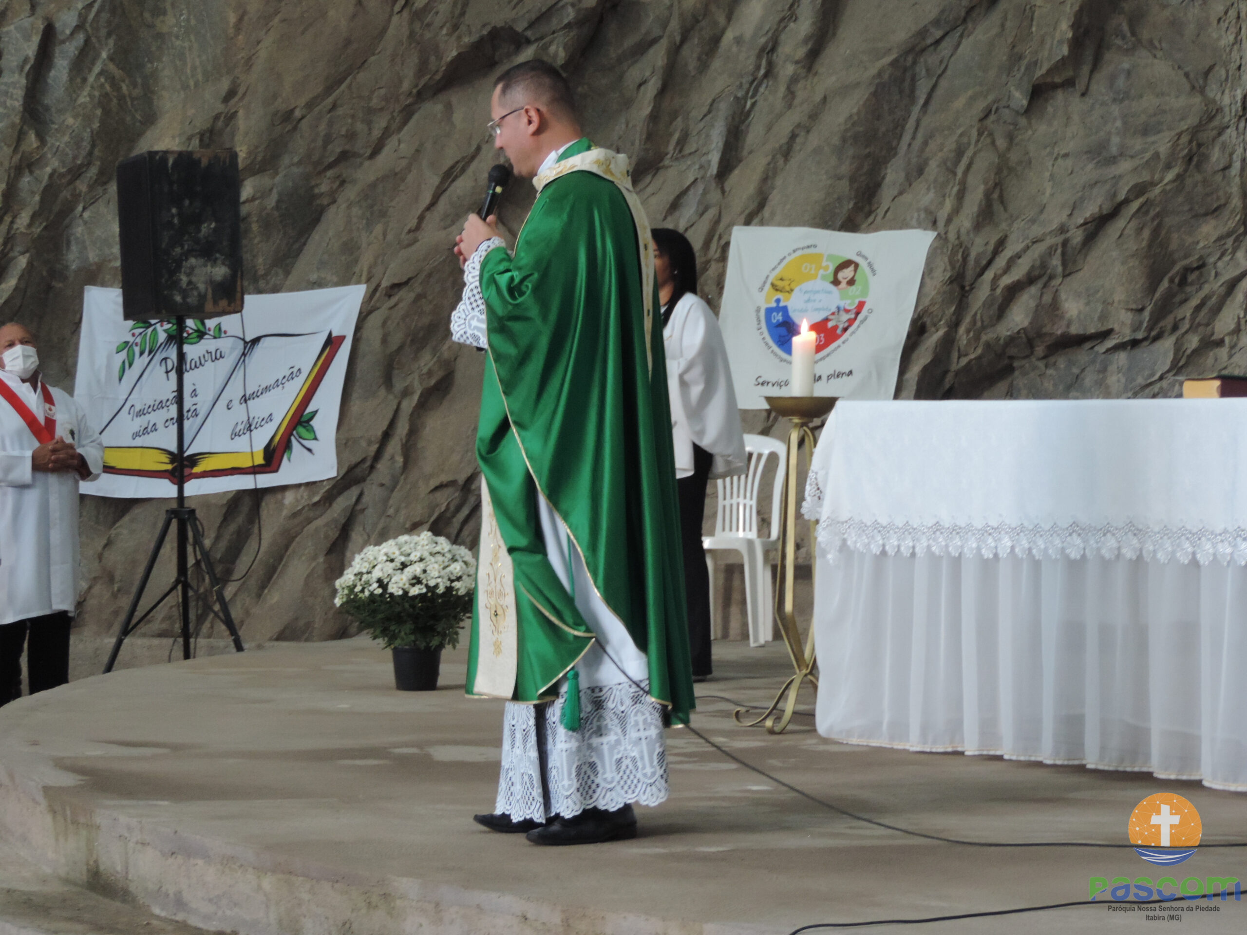 Enfim, chegamos no momento ápice da nossa tarde, a Santa Missa, sendo celebrada pelo Pe. Ueliton Neves, coordenador do nosso Regional I e concelebrada pelo Pe. José Marcelino, pároco da Paróquia Nossa Senhora da Piedade. o evento também contou com a presença de Padre Paulo Marconi da Paróquia Nossa Senhora da Saúde.