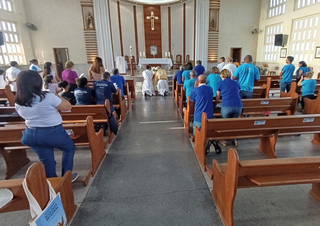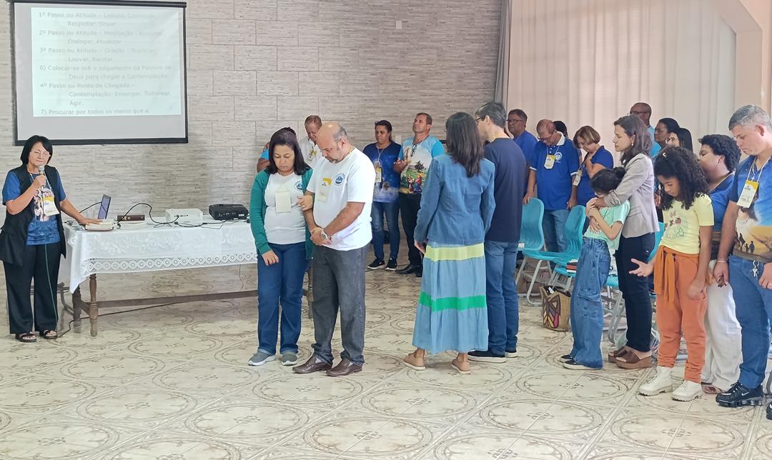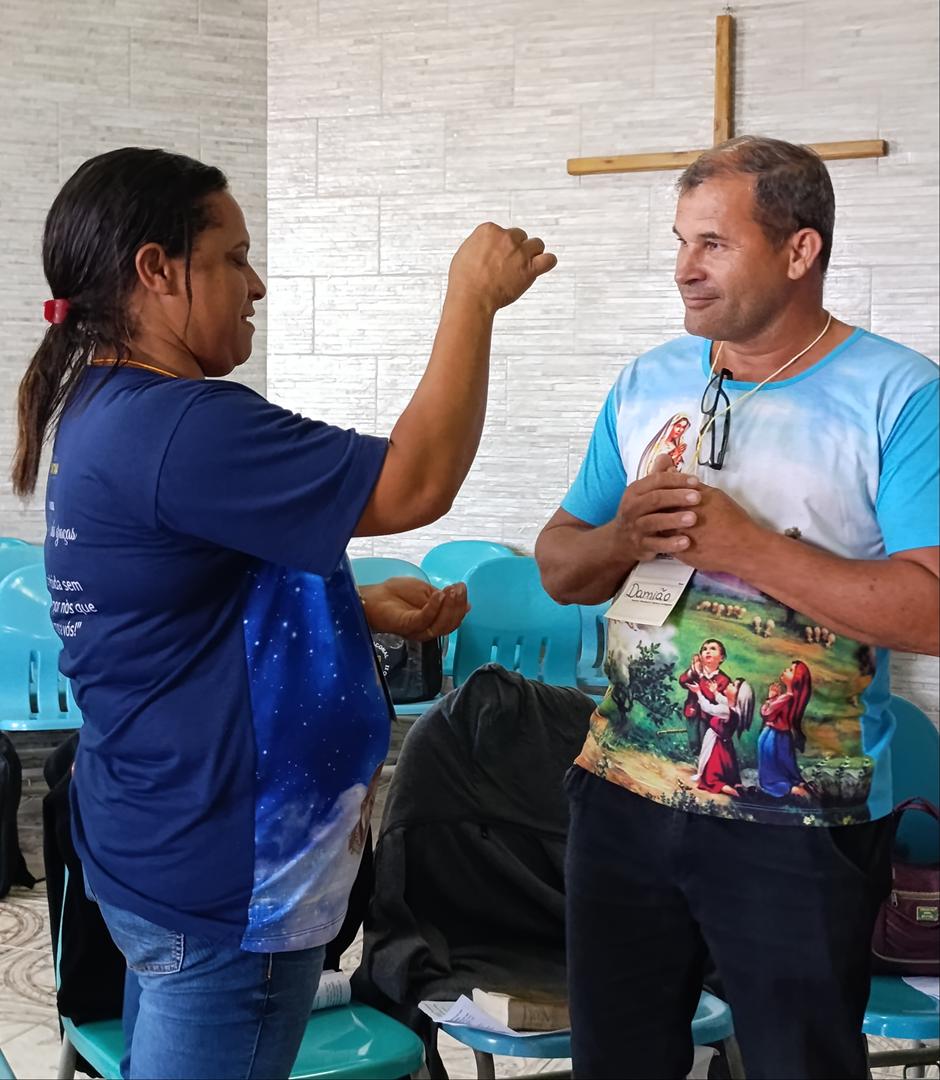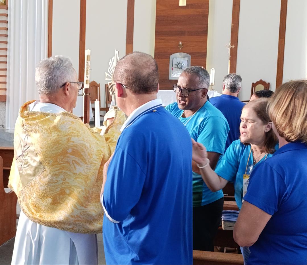 Após o almoço, o Diácono Luís Carlos Paiva, assessor da Pastoral no Regional lll, fez uma palestra sobre “Corações Partidos, Interpelados e Confusos” e como fazer para abrirmos e acolher a Palavra de Deus, a palavra que dá vida e esperança. E concluindo o Diácono Rogério falou sobre a importância de, após ter um coração interpelado e estar aberto à Palavra, precisamos assumir a missão que Jesus nos confiou. Assim, como os discípulos de Emaús, também somos convidados a refletir sobre a nossa caminhada, a observar que Jesus não nos abandona em momento algum, e principalmente nos momentos mais difíceis, Ele sempre está ao nosso lado e por isso devemos ser Peregrinos de Esperança e levar a esperança a todas as pessoas e famílias. Encerramos o encontro com o Momento de Adoração ao Santíssimo e a Celebração da Palavra.