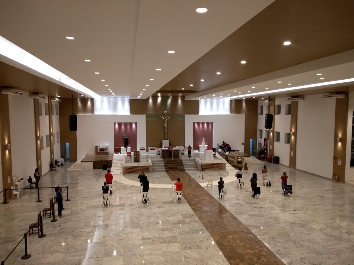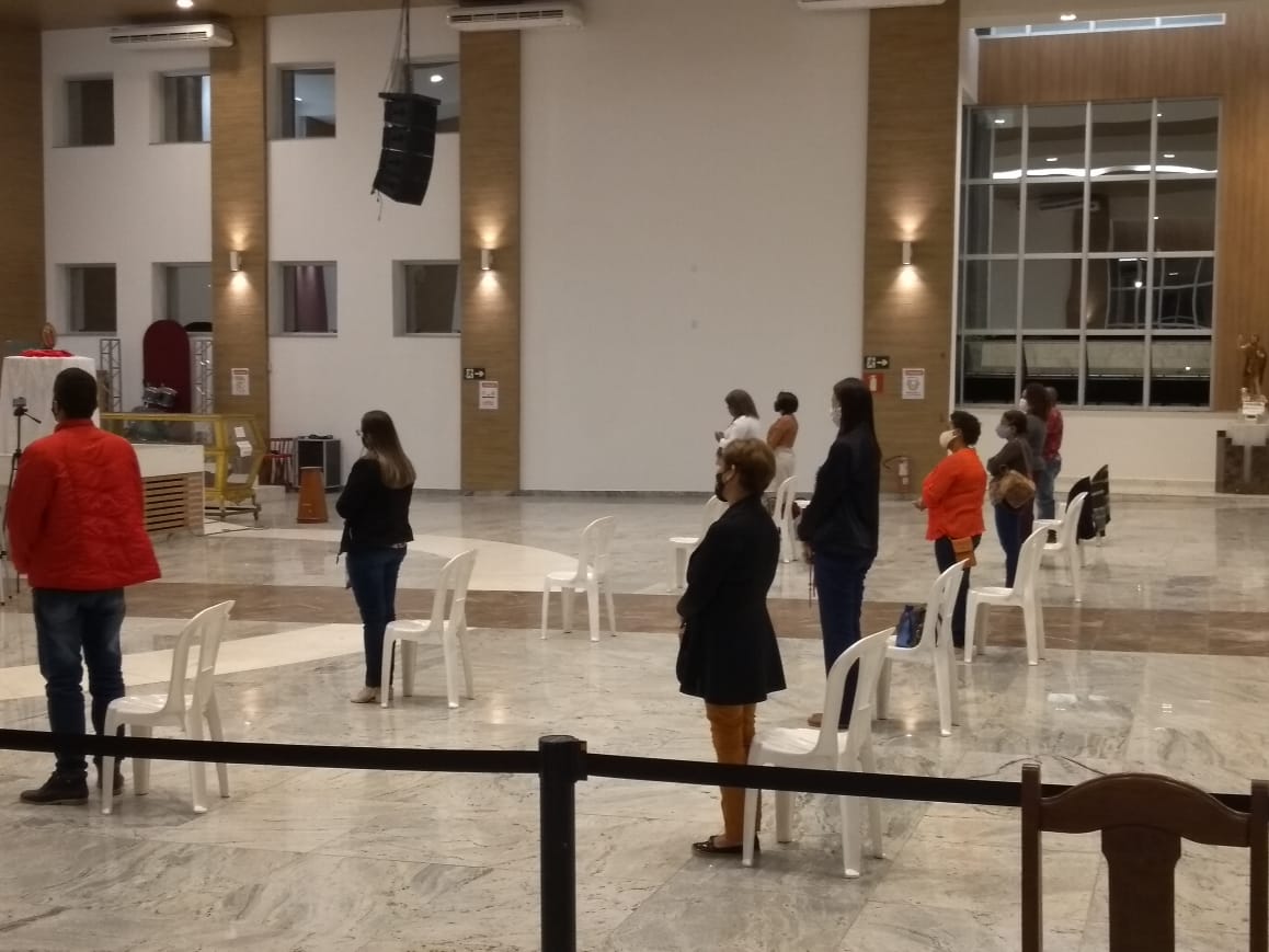 Os fiéis foram acolhidos pelos brigadistas e por uma enfermeira, que munida de um termômetro infravermelho aferiu a temperatura de todos. Mantiveram-se com máscara e acataram o pedido de distanciamento, que em nosso Santuário é superior ao exigido.