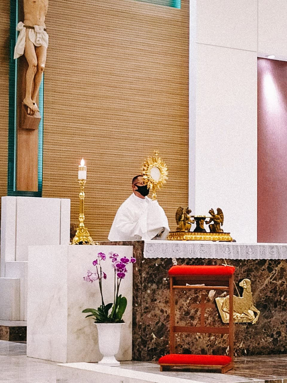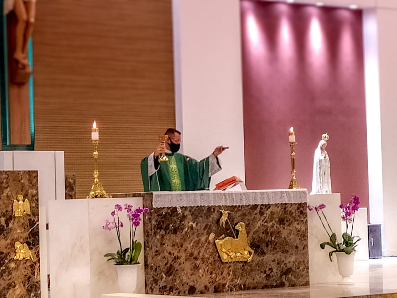 A retomada das Missas presenciais na Paróquia Nossa Senhora da Penha, começou no dia 20 de julho. Presidida pelo pároco Pe. Ueliton Neves, a celebração eucarística foi realizada no Santuário São Geraldo para um público reduzido, somente 10 pessoas, as quais fizeram um agendamento prévio na Secretaria e chegaram com antecedência.