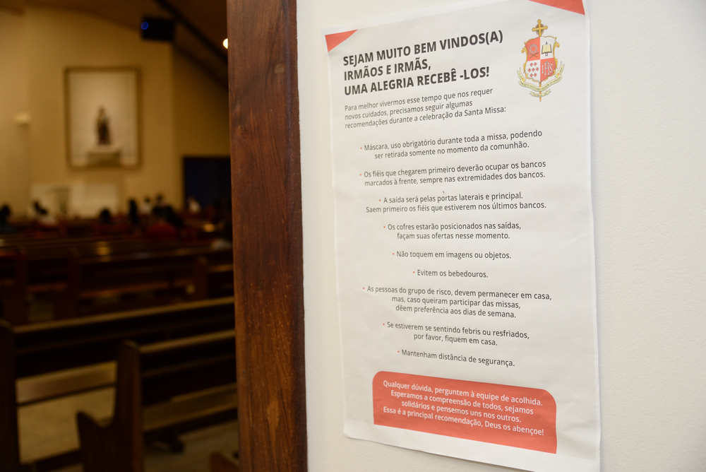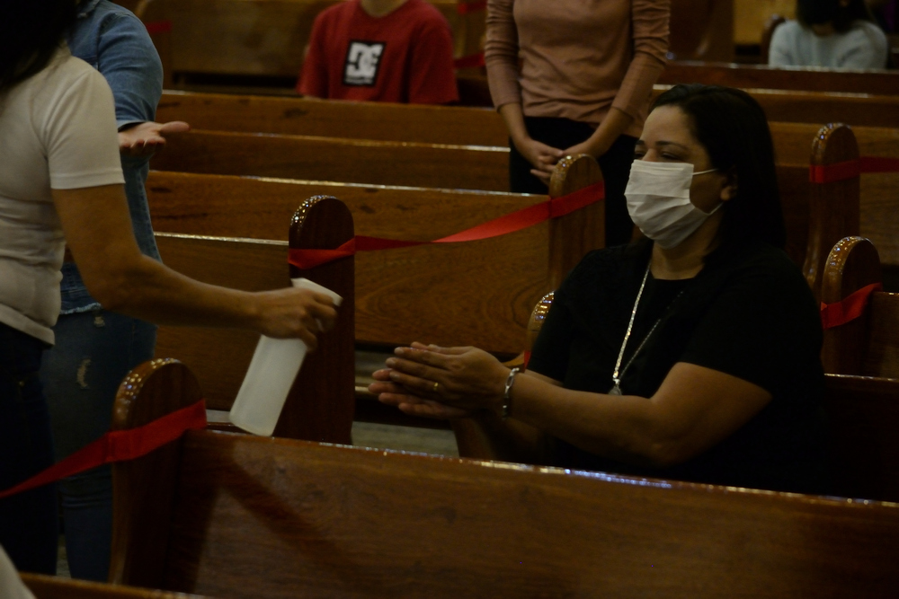 Neste fim, o Santuário Senhor do Bonfim foi devidamente preparado para receber os fiéis, tanto quanto à sua higienização, organização dos bancos, à disponibilidade de álcool em gel na porta de entrada, quanto na formação dos membros da equipe de acolhida que, por sua vez, tem feito um belo trabalho de orientação aos participantes da Santa Missa.