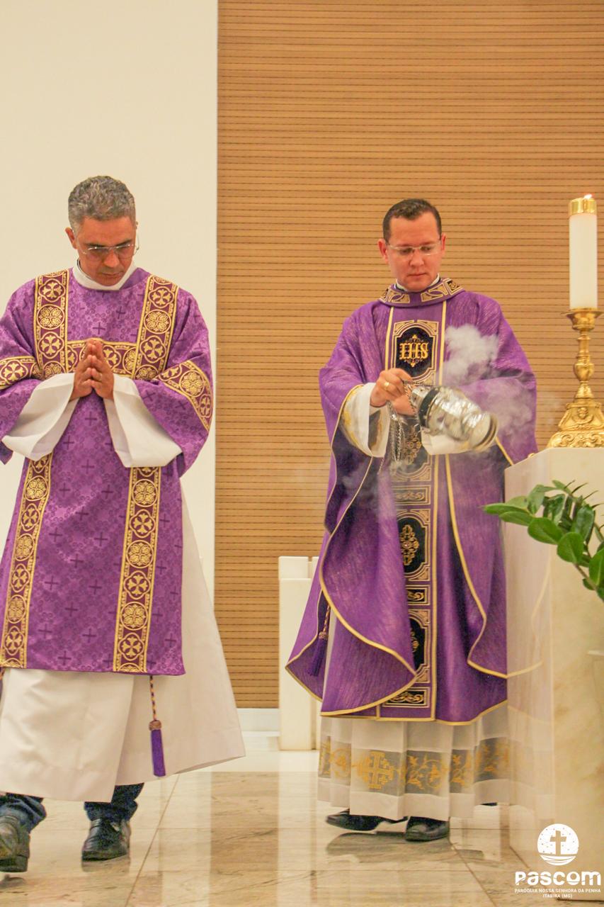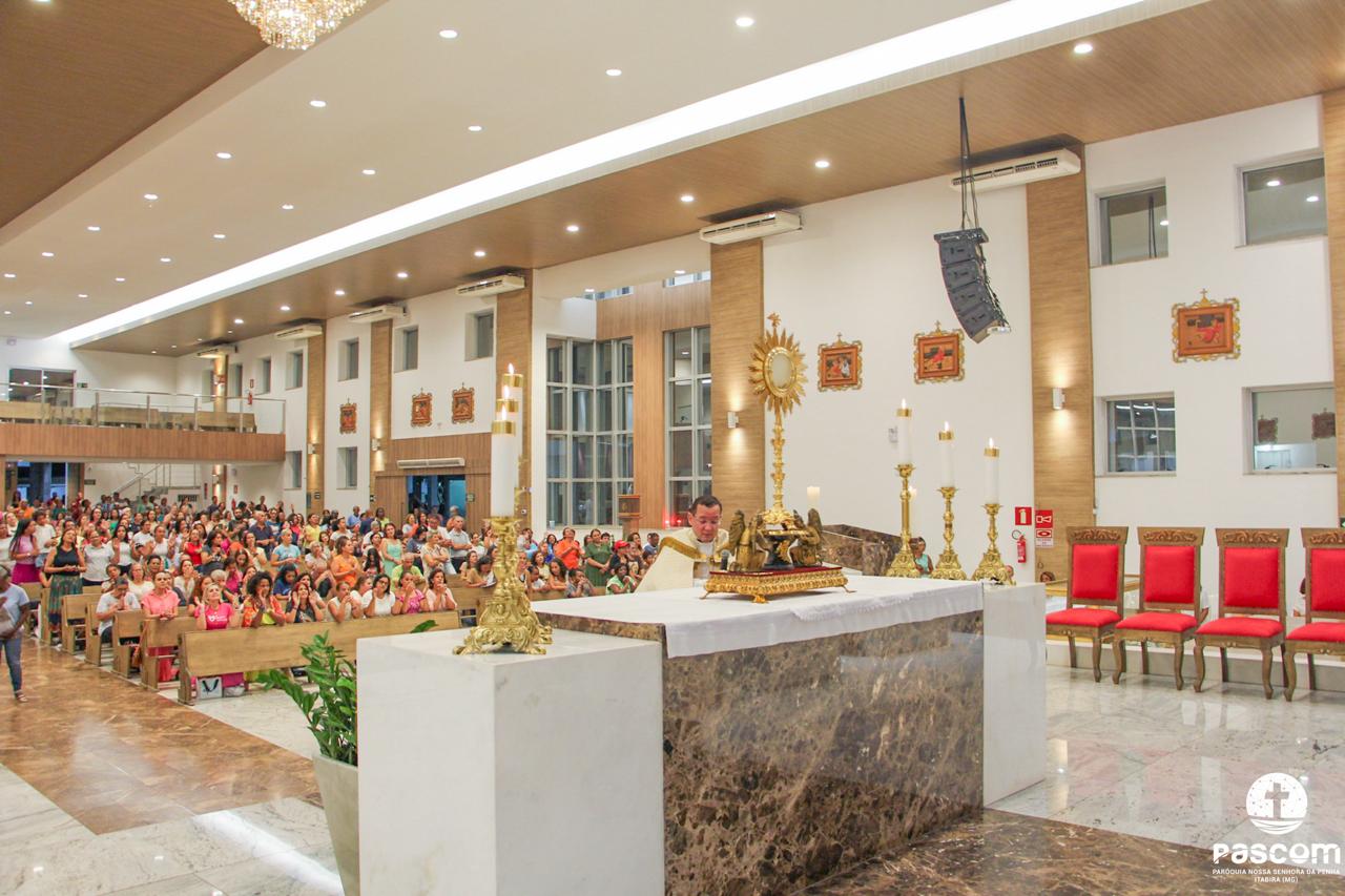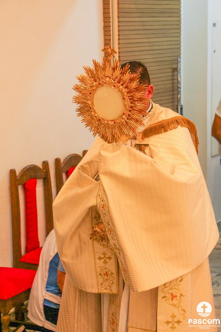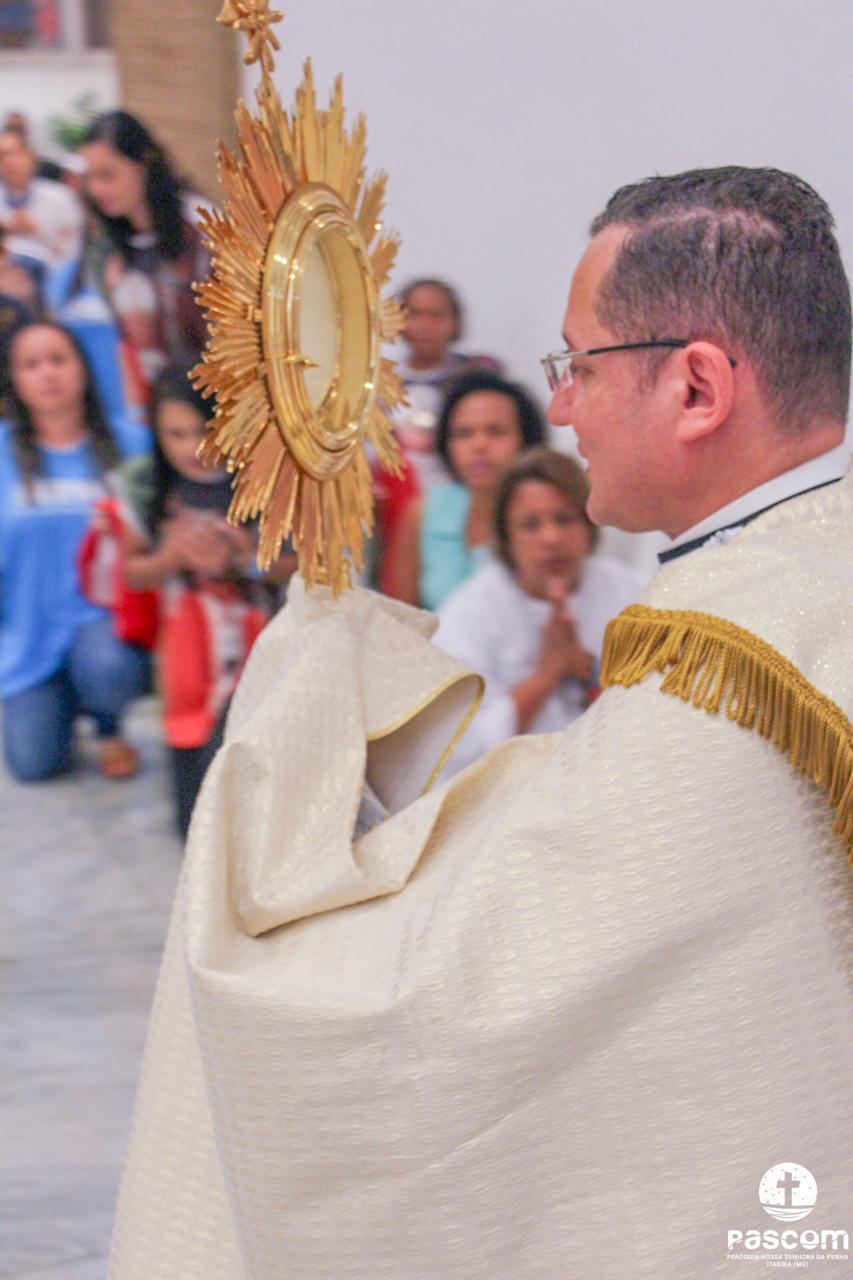 Após os momentos de pregação, louvor e oração, às 18 horas iniciou-se a Santa Missa presidida pelo Reverendíssimo Pe. Ueliton Neves, pároco da paróquia, que foi auxiliado pelo Diácono Alisson Júnio Gomes e pelo Seminarista Wellington Rosa. Após a Santa Missa houve adoração e Benção do Santíssimo Sacramento.