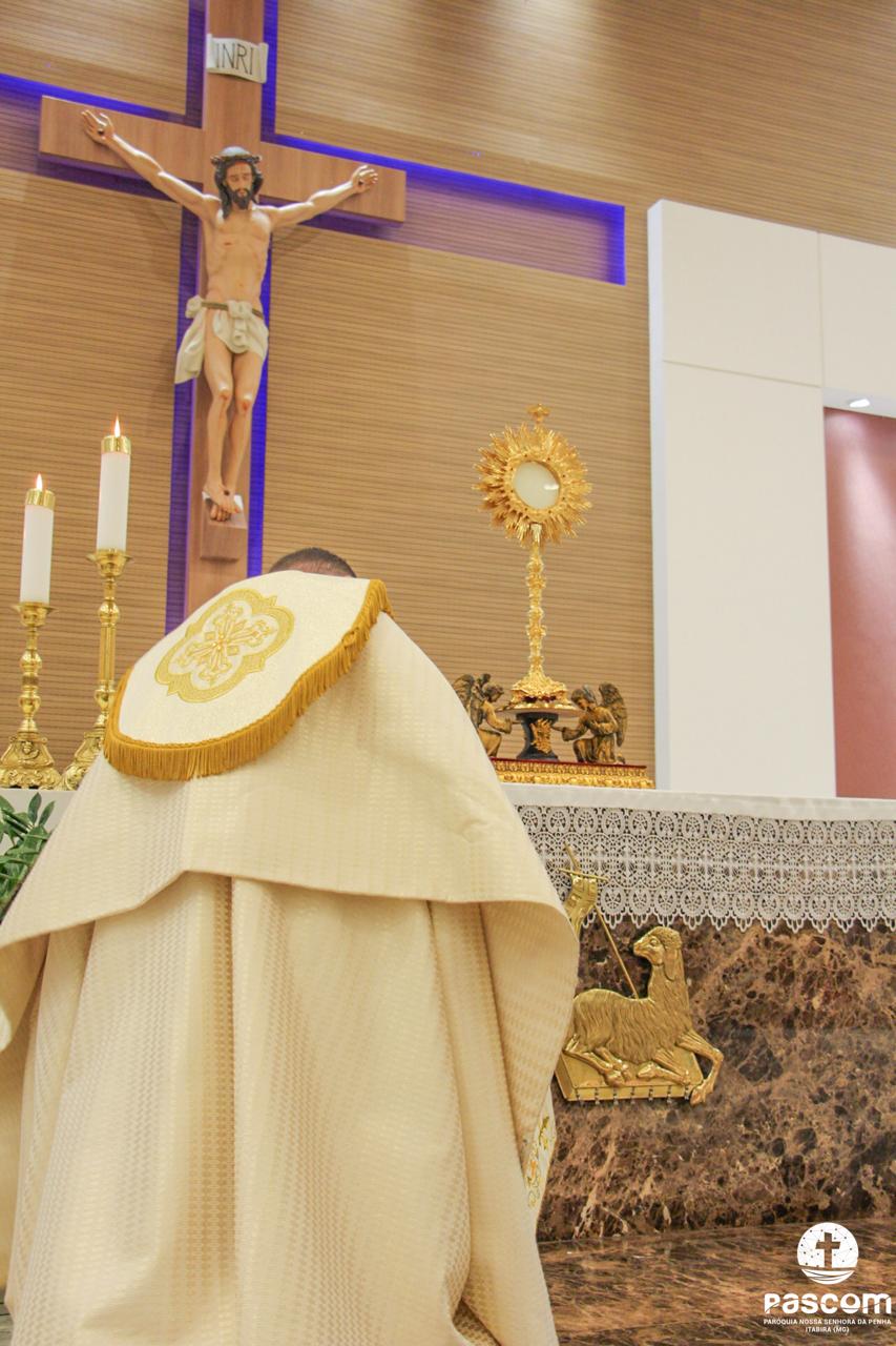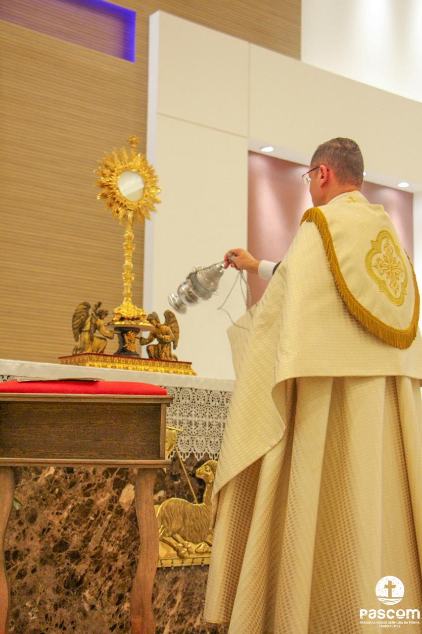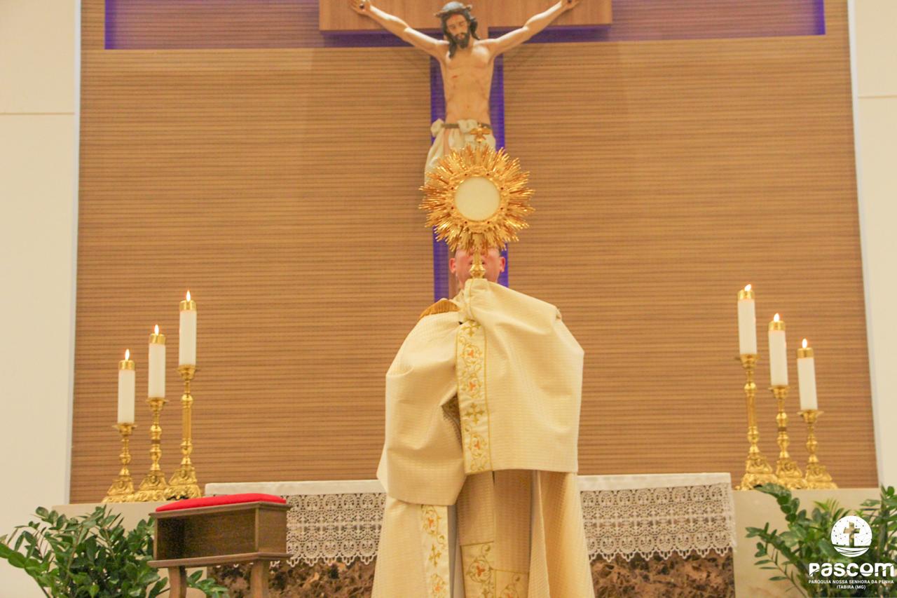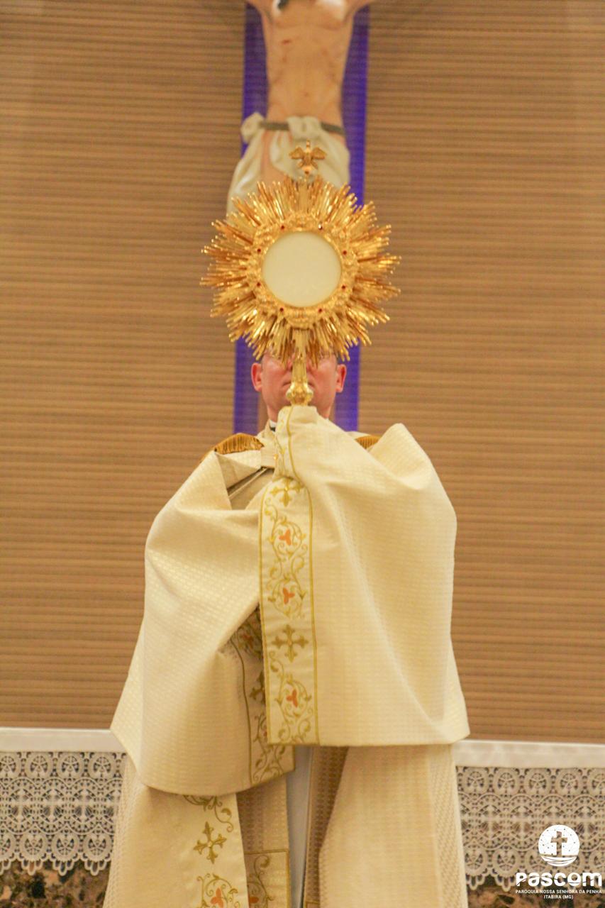 Após os momentos de pregação, louvor e oração, às 18 horas iniciou-se a Santa Missa presidida pelo Reverendíssimo Pe. Ueliton Neves, pároco da paróquia, que foi auxiliado pelo Diácono Alisson Júnio Gomes e pelo Seminarista Wellington Rosa. Após a Santa Missa houve adoração e Benção do Santíssimo Sacramento.