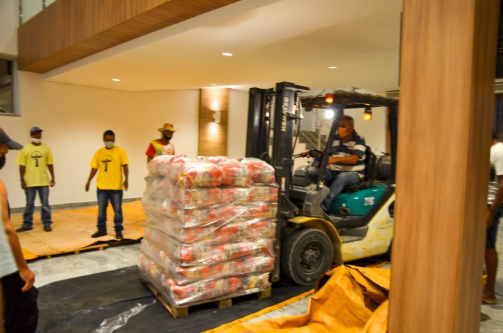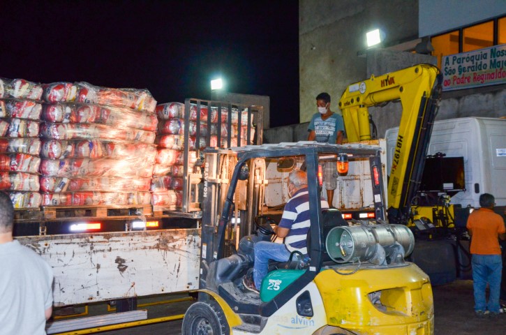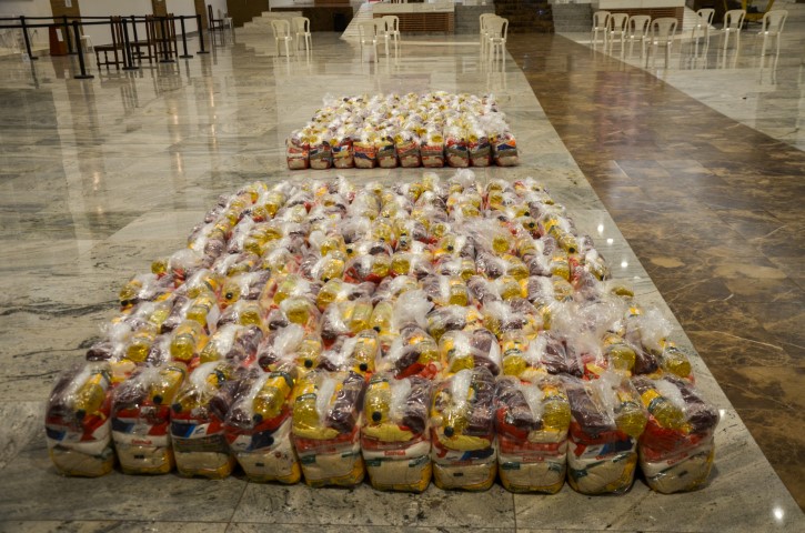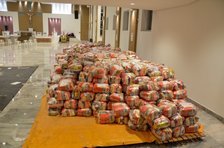 O Santuário São Geraldo Majela, pertencente à Paróquia Nossa Senhora da Penha, em Itabira, recebeu com alegria e emoção na noite de quinta-feira, dia 20 de agosto, 20 toneladas de alimentos, organizados em cestas básicas, provenientes da Live Solidária “Arraiá do Seu Vigário”, do Padre Reginaldo Manzotti. As 1.750 cestas básicas doadas serão destinadas as pessoas que se encontram em situação de vulnerabilidade social, afetadas pelo contexto de pandemia do novo Coronavírus.