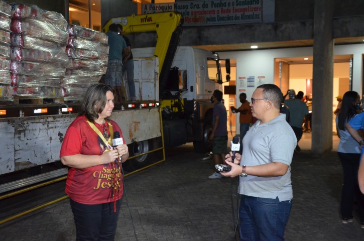 Quero agradecer imensamente ao Padre Reginaldo Manzotti e a todos da Associação Evangelizar é Preciso por esse lindo gesto de partilha e de generosidade para com as famílias mais vulneráveis de nossa região, sobretudo neste tempo de pandemia. Agradeço a todos os voluntários de nossa Paróquia e aos acolhidos da Fazenda da Esperança que nos auxiliaram na recepção dos alimentos no nosso Santuário. Agradeço ainda ao Marcus Vinícius, da Líder Loc que nos doou o transporte de todos os alimentos e ao Sérgio, da Casa Alvim pela doação da empilhadeira para descarregamento da carreta. Agradeço a imprensa local e a Pascom paroquial pela cobertura deste momento ímpar em nossa Paróquia.