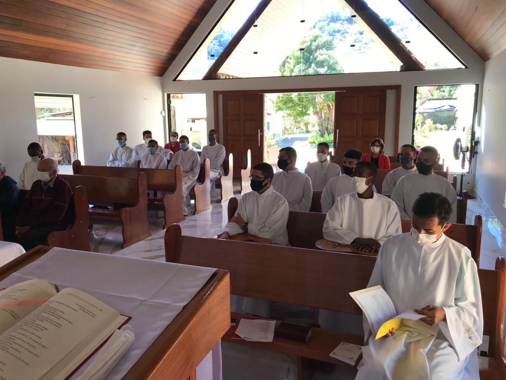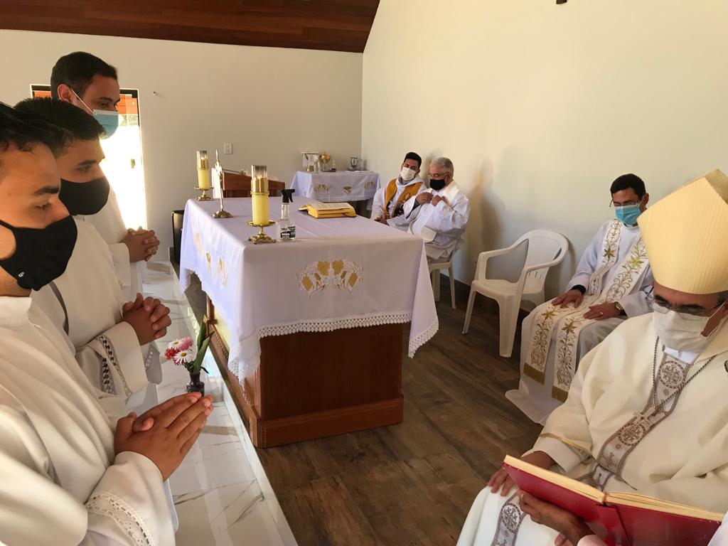 Após a acolhida na segunda-feira, a terça-feira foi marcada por um momento de reflexão com os membros da equipe de formação presentes. O eixo central norteador foi a questão da sinodalidade que foi trazida pelo bispo com o intuito de conduzir os seminaristas a se debruçarem sobre o assunto durante o mês de agosto. Em seguida, houve um diálogo sobre a pandemia, especialmente no que tange aos desafios pastorais dos seminaristas. Ainda nesse dia, foi celebrada a missa para admissão às Ordens Sacras de: Júlio César, Lucas Araújo e Paulo Leal.