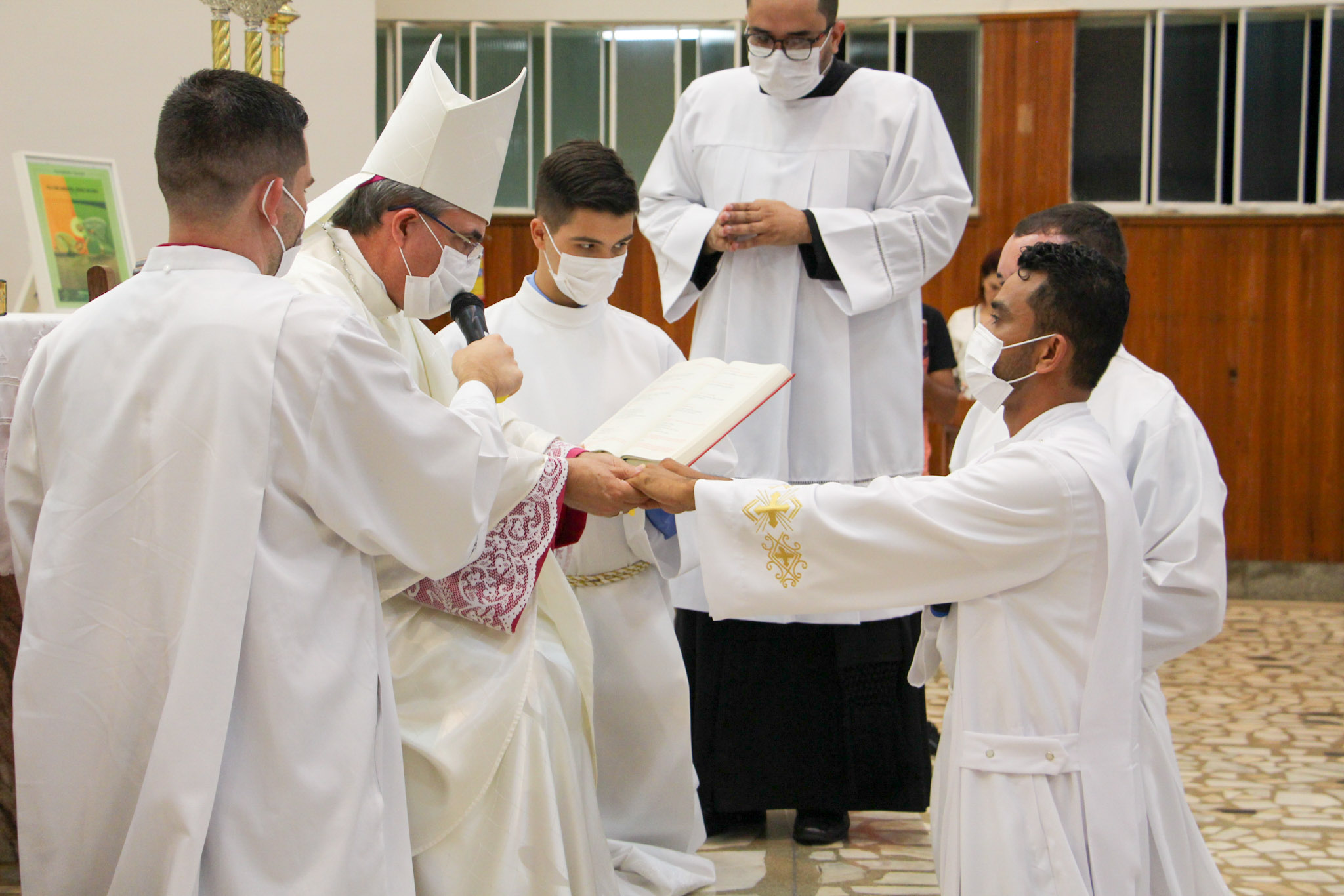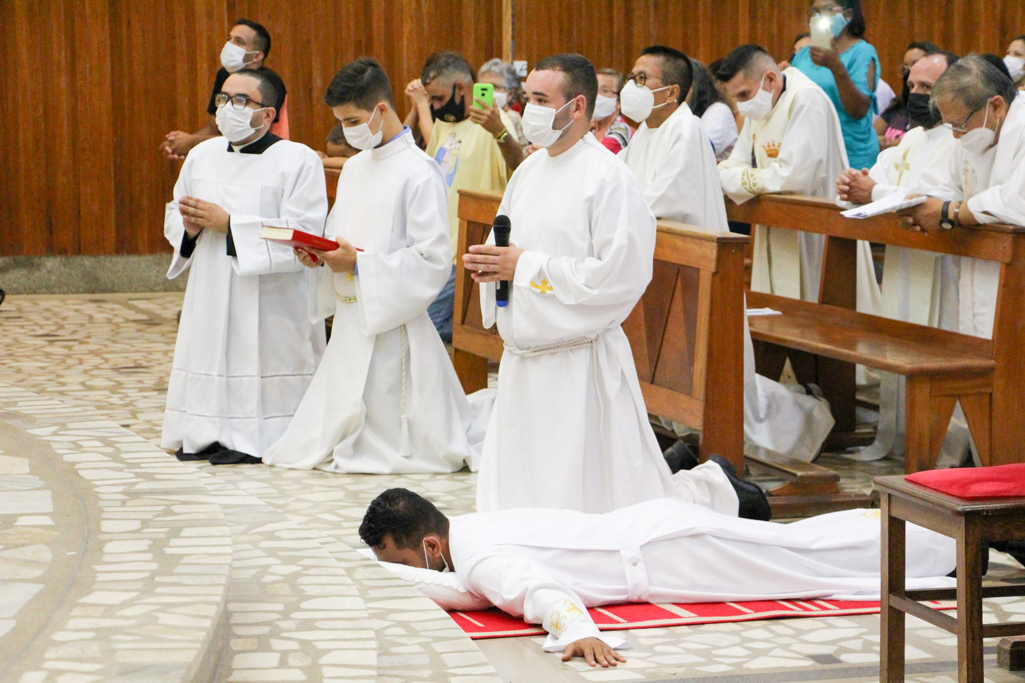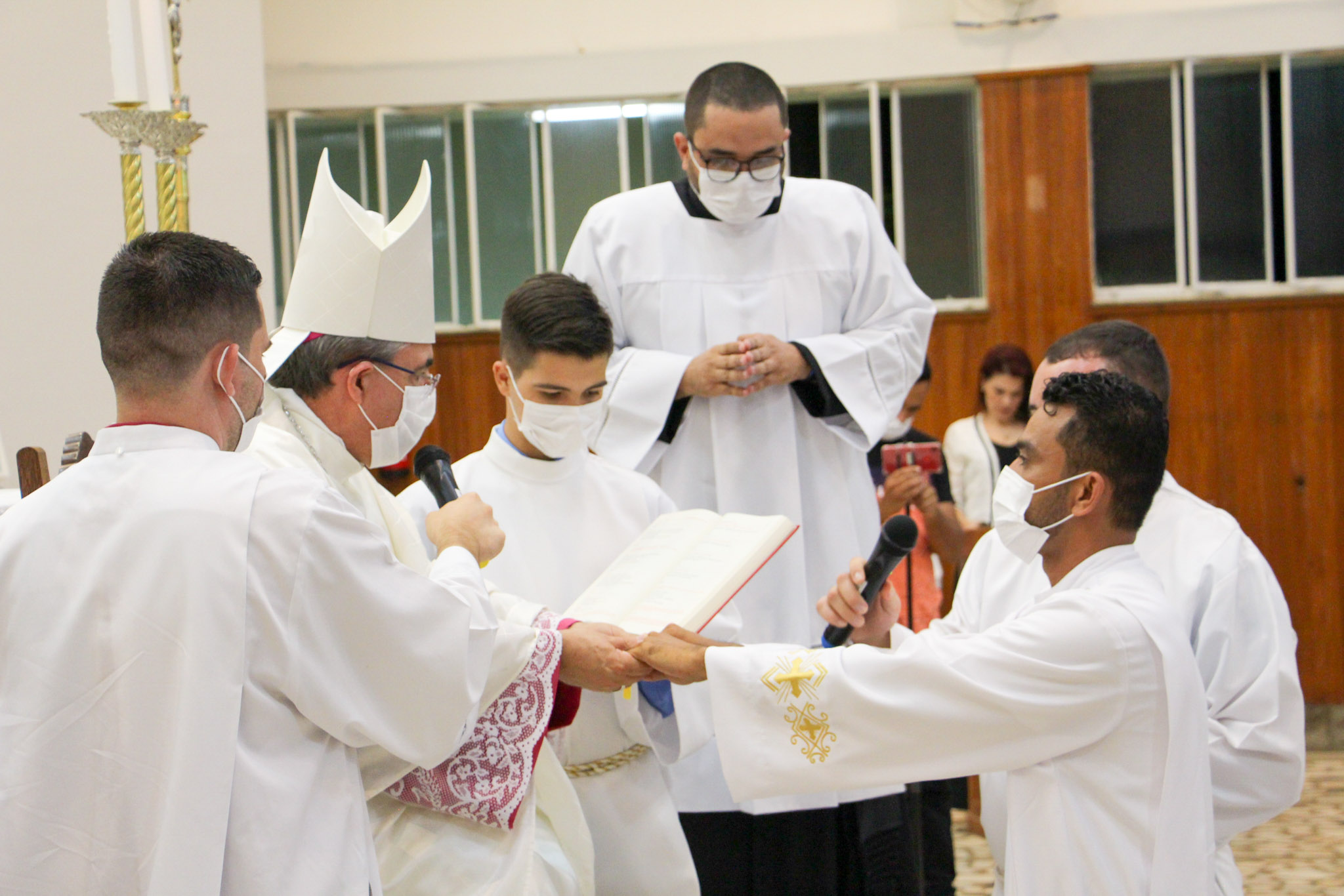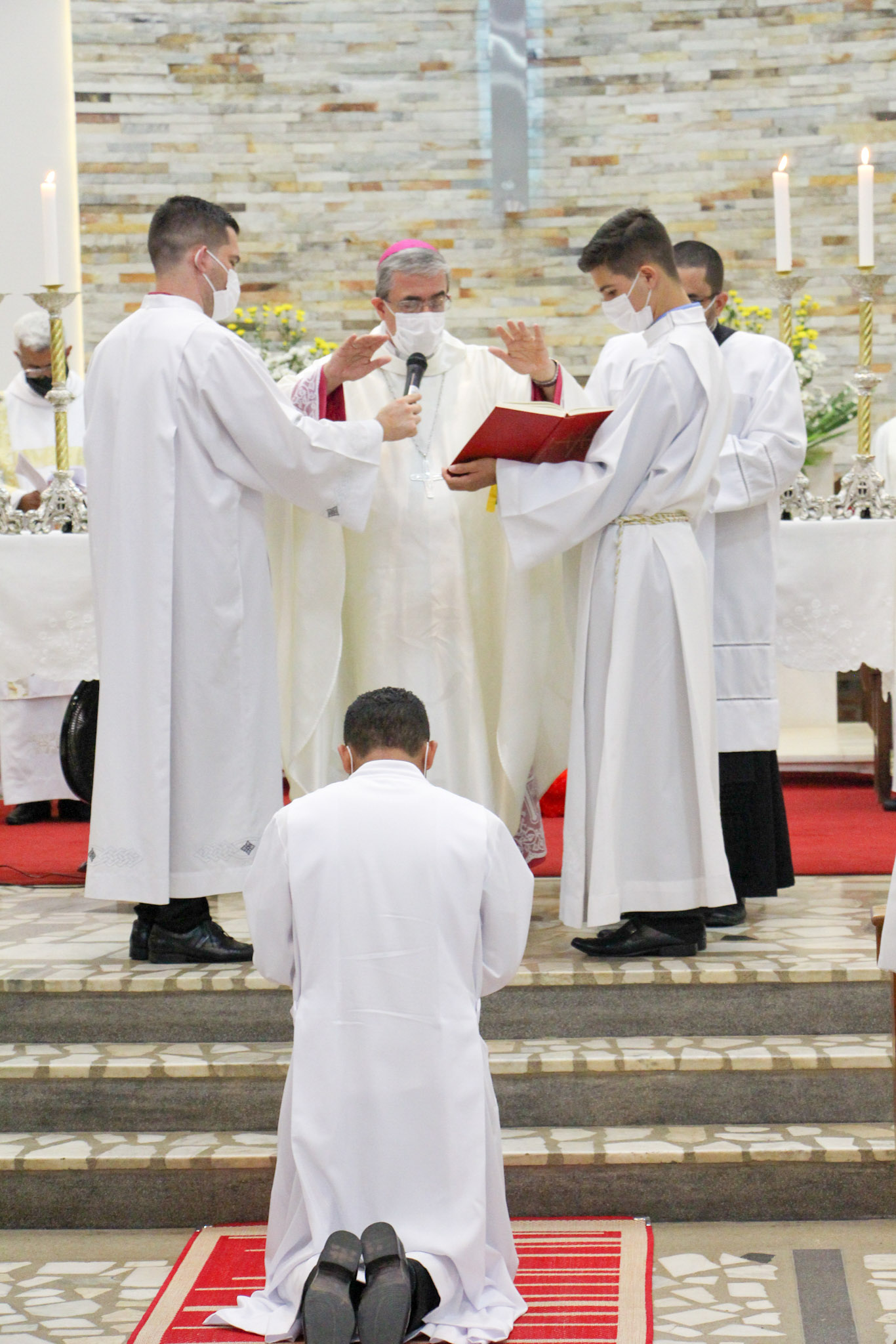 Em seguida, durante o Rito de Ordenação, Seminarista Seran, Norbertus foi apresentado à assembleia e manifestou seu compromisso no serviço à Igreja. O candidato prostrou-se ao chão enquanto todos entoaram a Ladainha de Todos os Santos. Após este momento, Seran, Norbertus foi revestido com a estola diaconal, recebeu o Livro dos Evangelhos das mãos de Dom Marco Aurélio e, também, o abraço da paz, por parte do Bispo e dos demais presbíteros e de seus padrinhos, como sinal de acolhida ao serviço de Diácono Transitório.