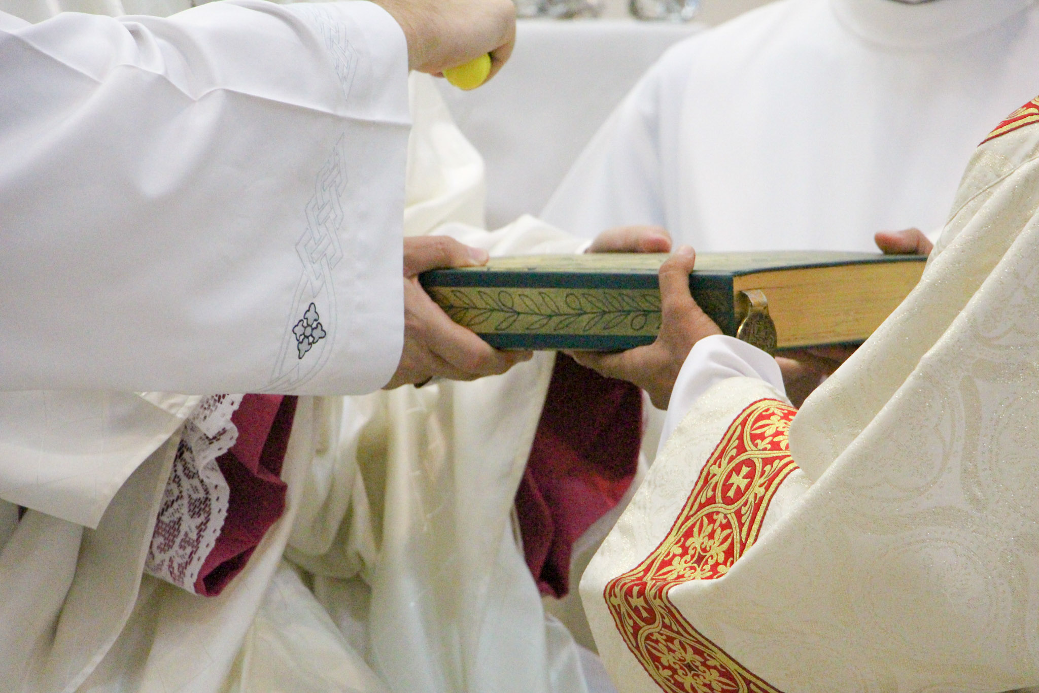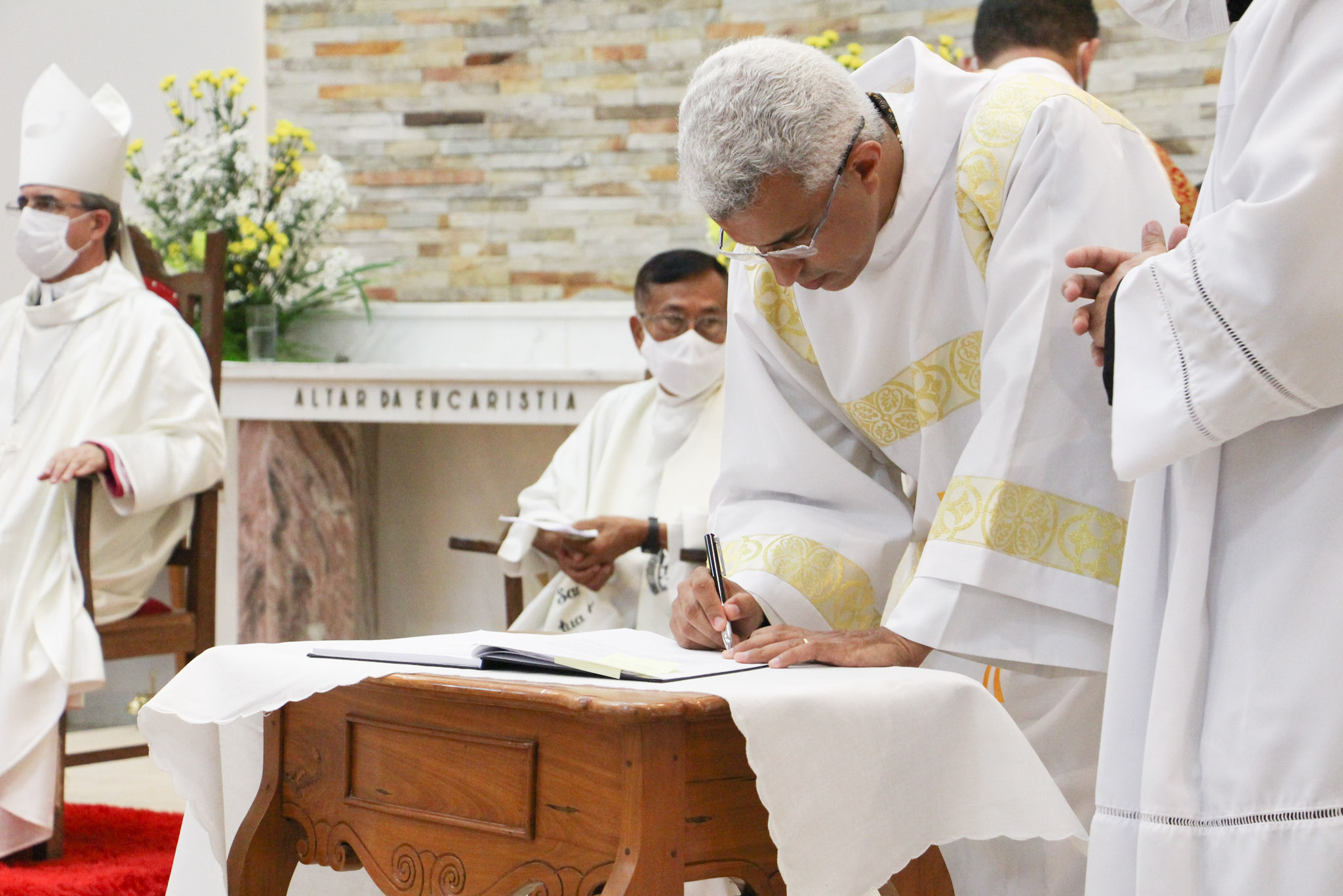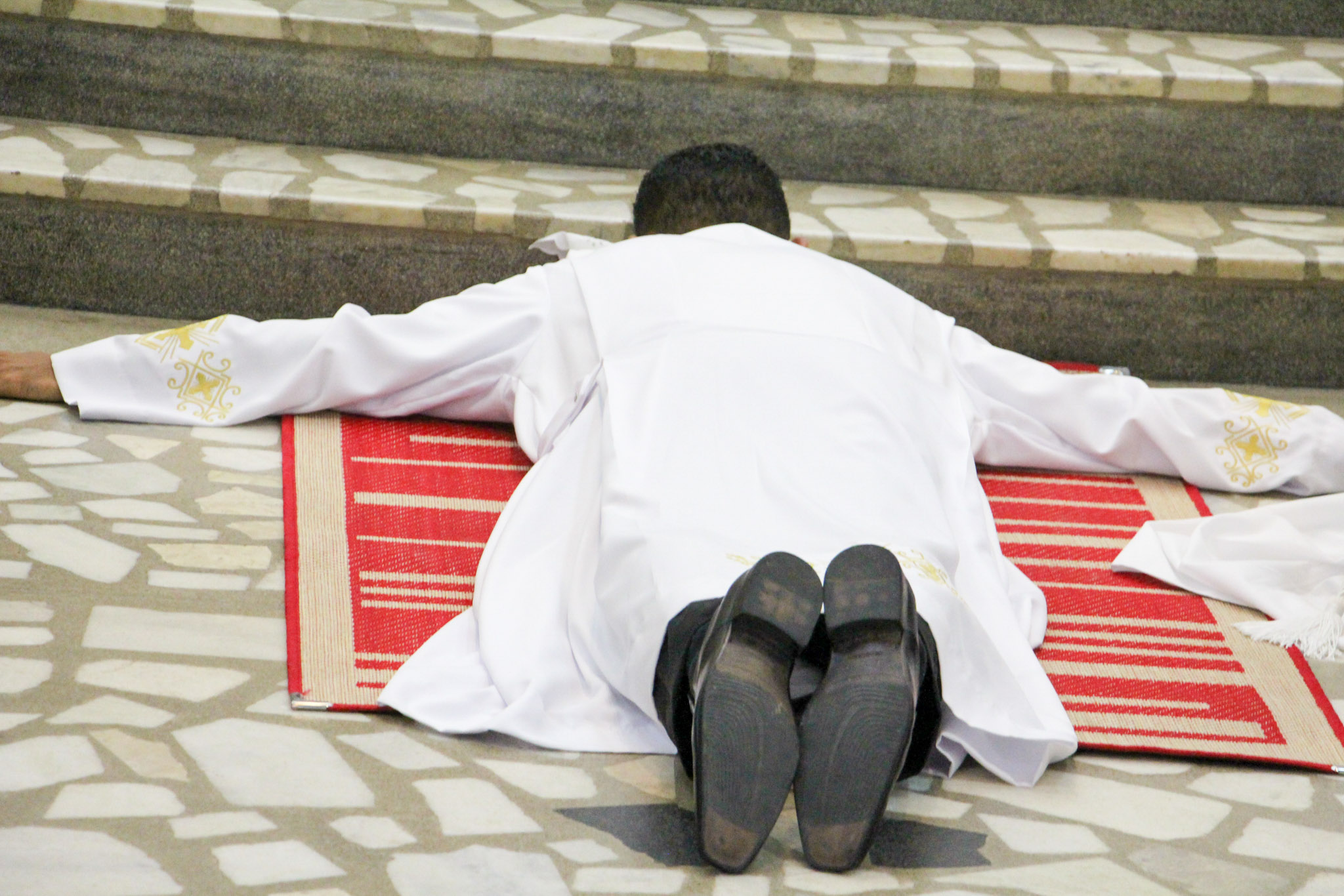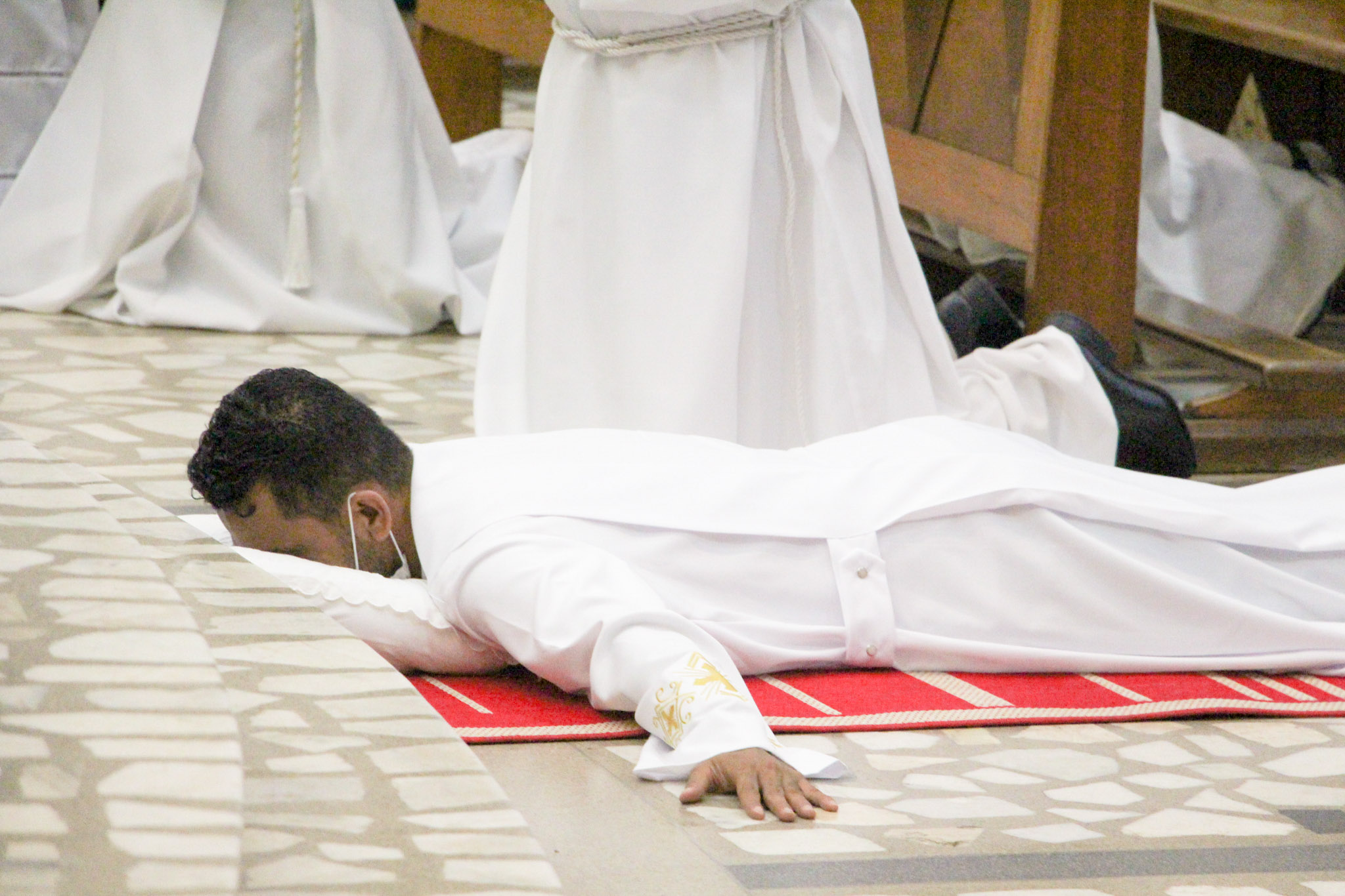 Em seguida, durante o Rito de Ordenação, Seminarista Seran, Norbertus foi apresentado à assembleia e manifestou seu compromisso no serviço à Igreja. O candidato prostrou-se ao chão enquanto todos entoaram a Ladainha de Todos os Santos. Após este momento, Seran, Norbertus foi revestido com a estola diaconal, recebeu o Livro dos Evangelhos das mãos de Dom Marco Aurélio e, também, o abraço da paz, por parte do Bispo e dos demais presbíteros e de seus padrinhos, como sinal de acolhida ao serviço de Diácono Transitório.