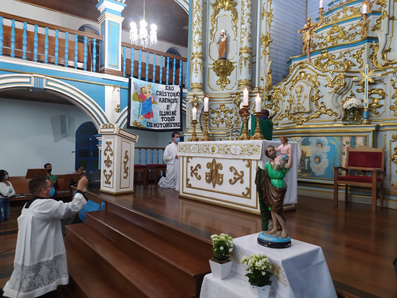 Com as devidas precauções, os motoristas se dirigiram à porta da Igreja Matriz, onde nosso pároco Padre Isaac, CICM proferiu a benção sobre eles, e seus veículos. À noite, contamos também com a Santa Missa em honra a São Cristóvão às 19h, presidida pelo Padre Amand, CICM.